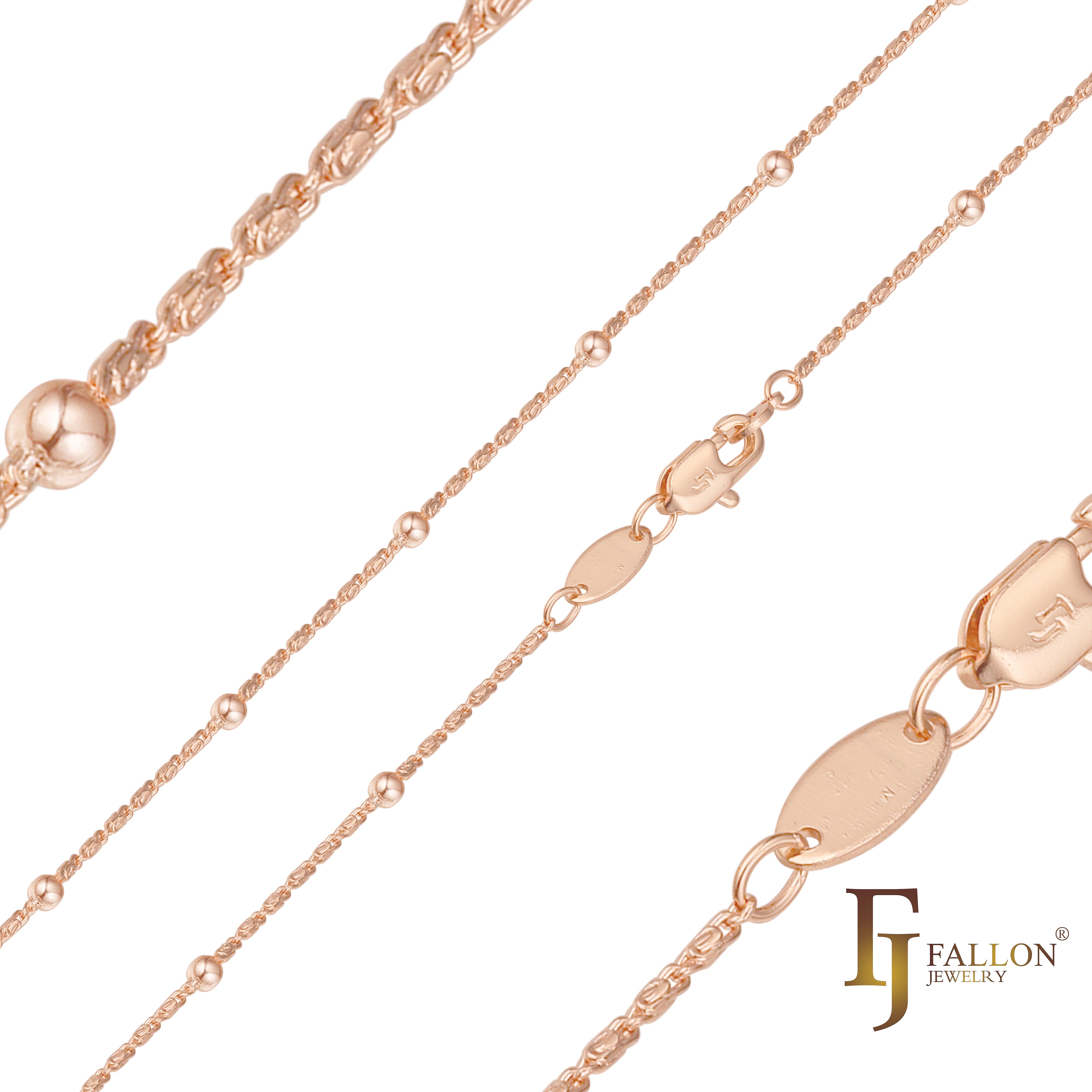 Beads round Curb cable link chains plated in 14K Gold, Rose Gold, two tone