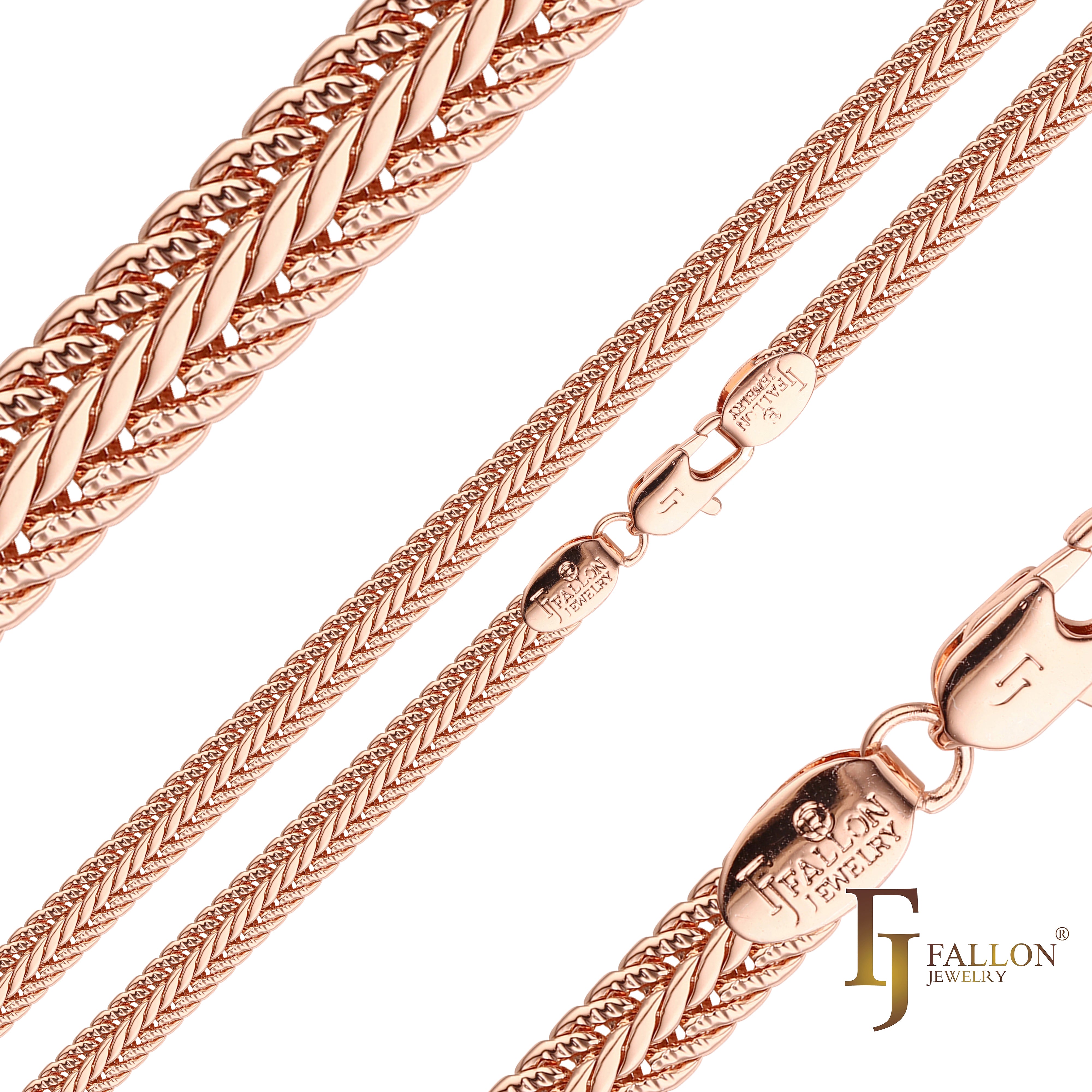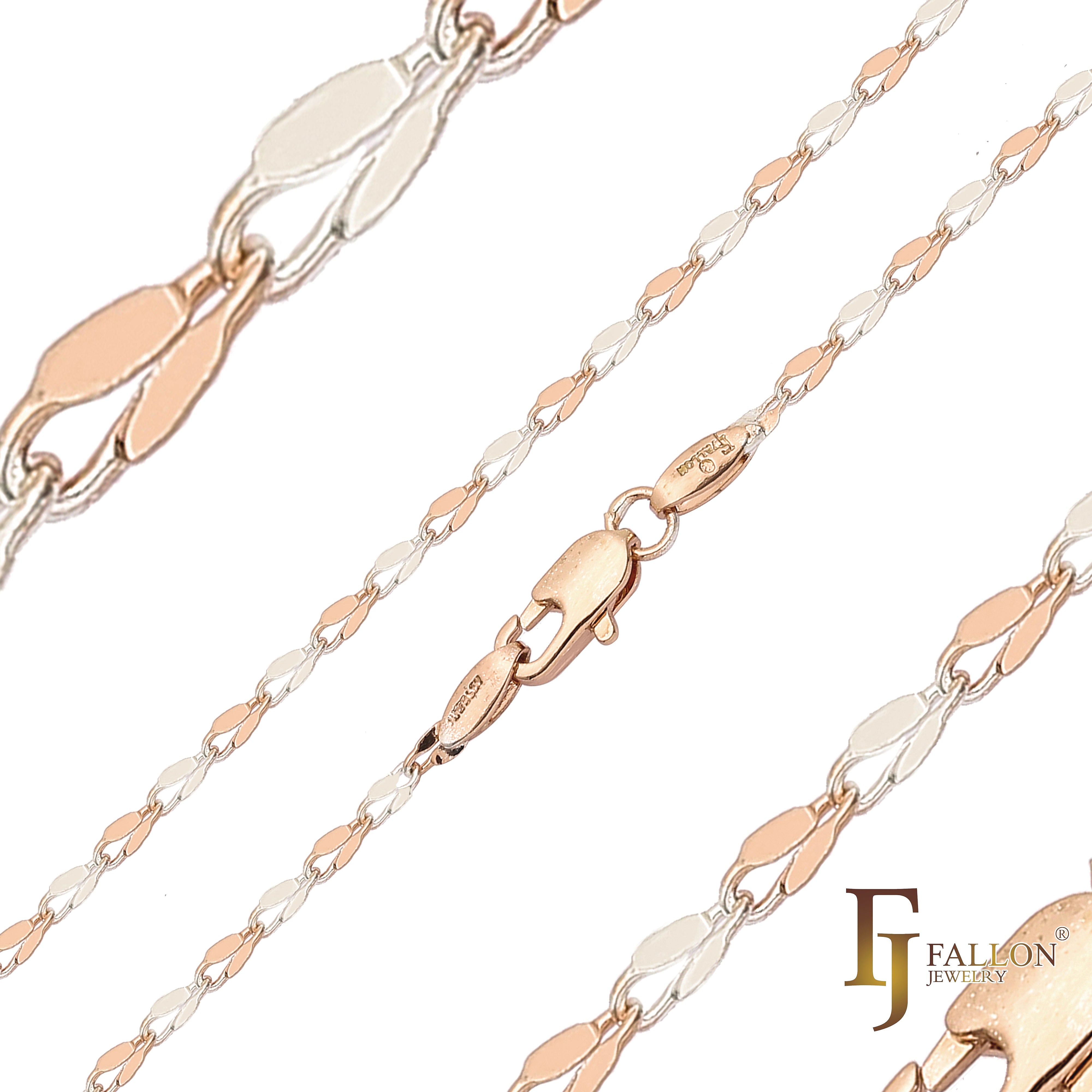 Classic Spiga wheat chains plated in White Gold, 14K Gold, Rose Gold, two tone