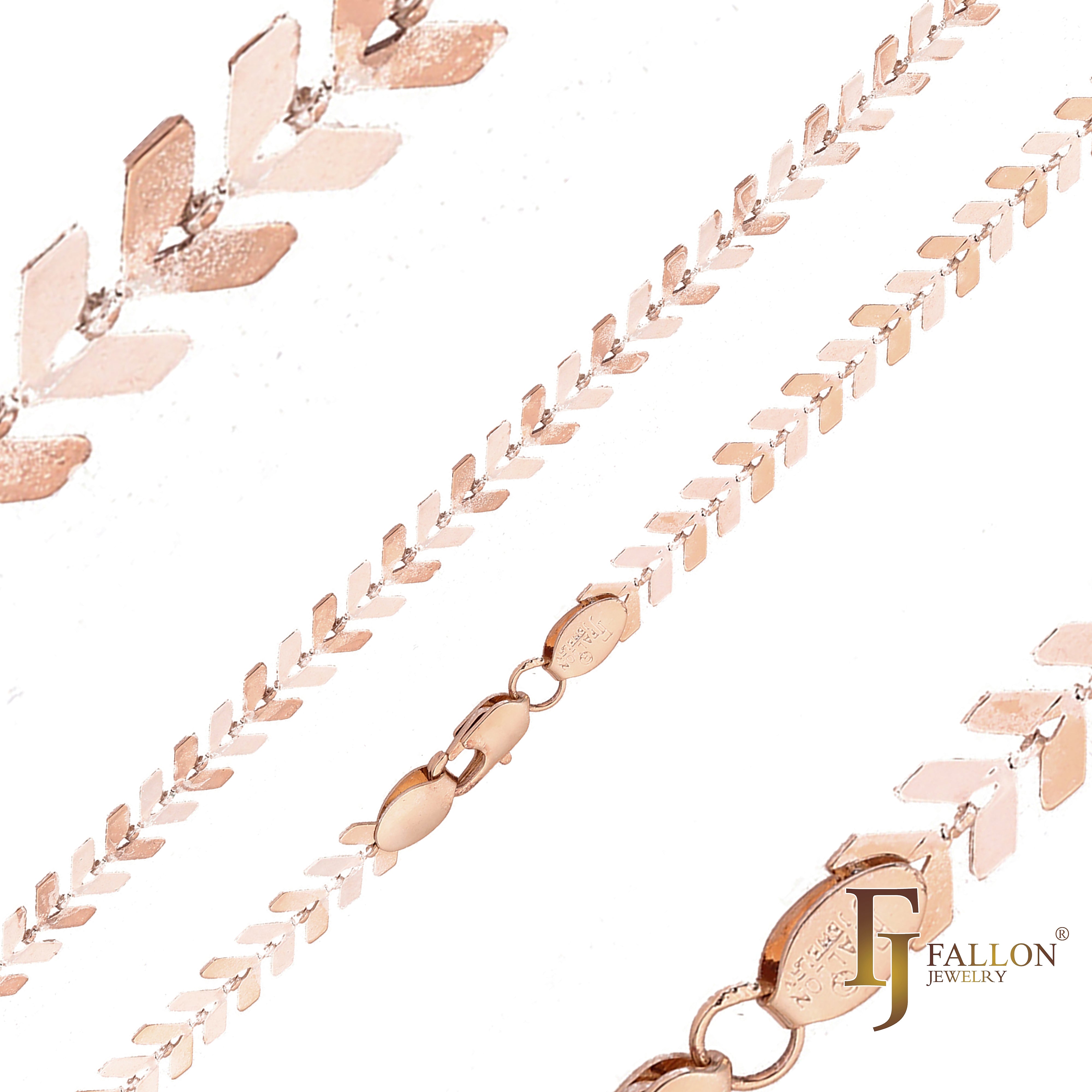 Chevron arrow link fish bone chains plated in 14K Gold, Rose Gold, two tone