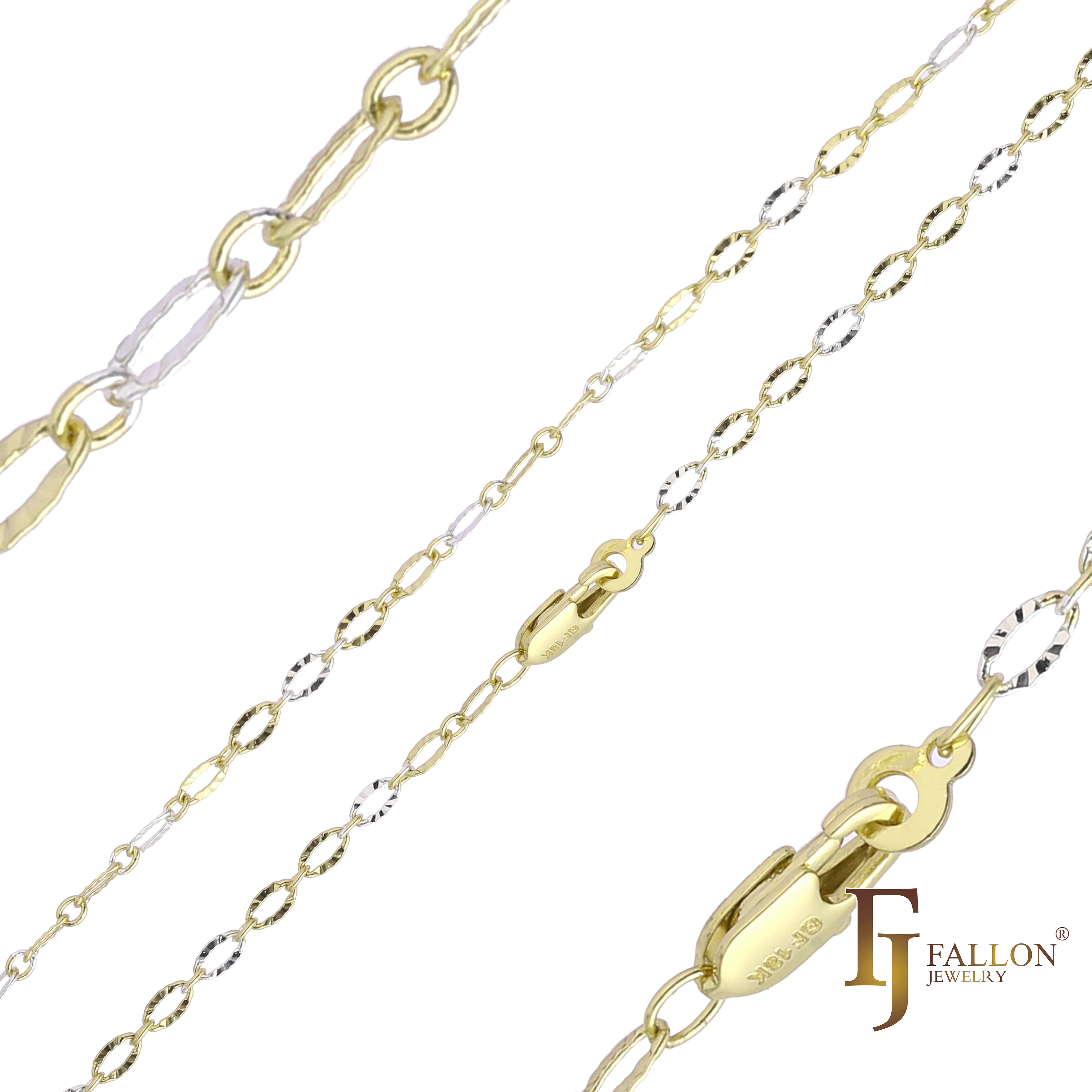 .Figaro link ripple hammered chains plated in 14K Gold, Rose Gold, two tone