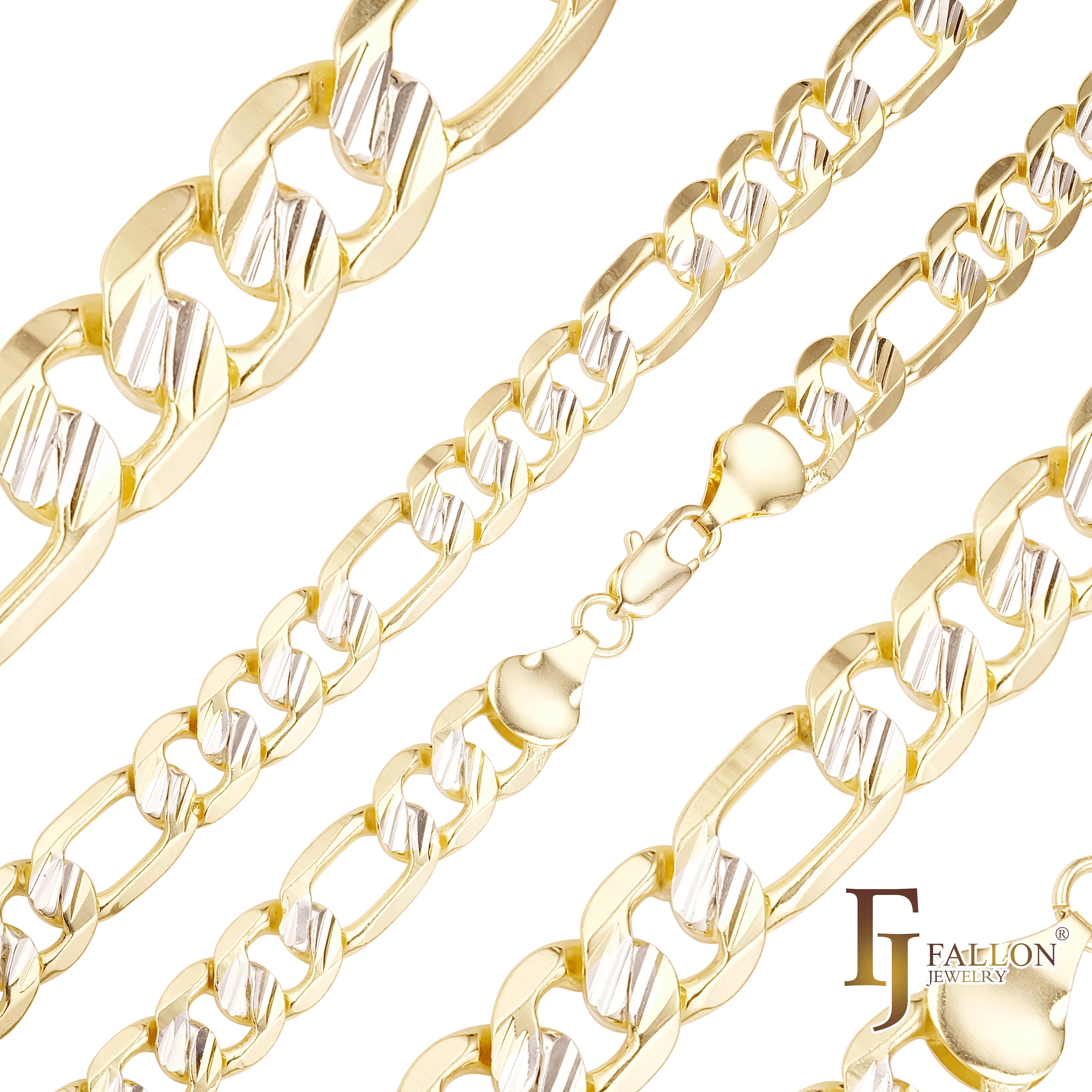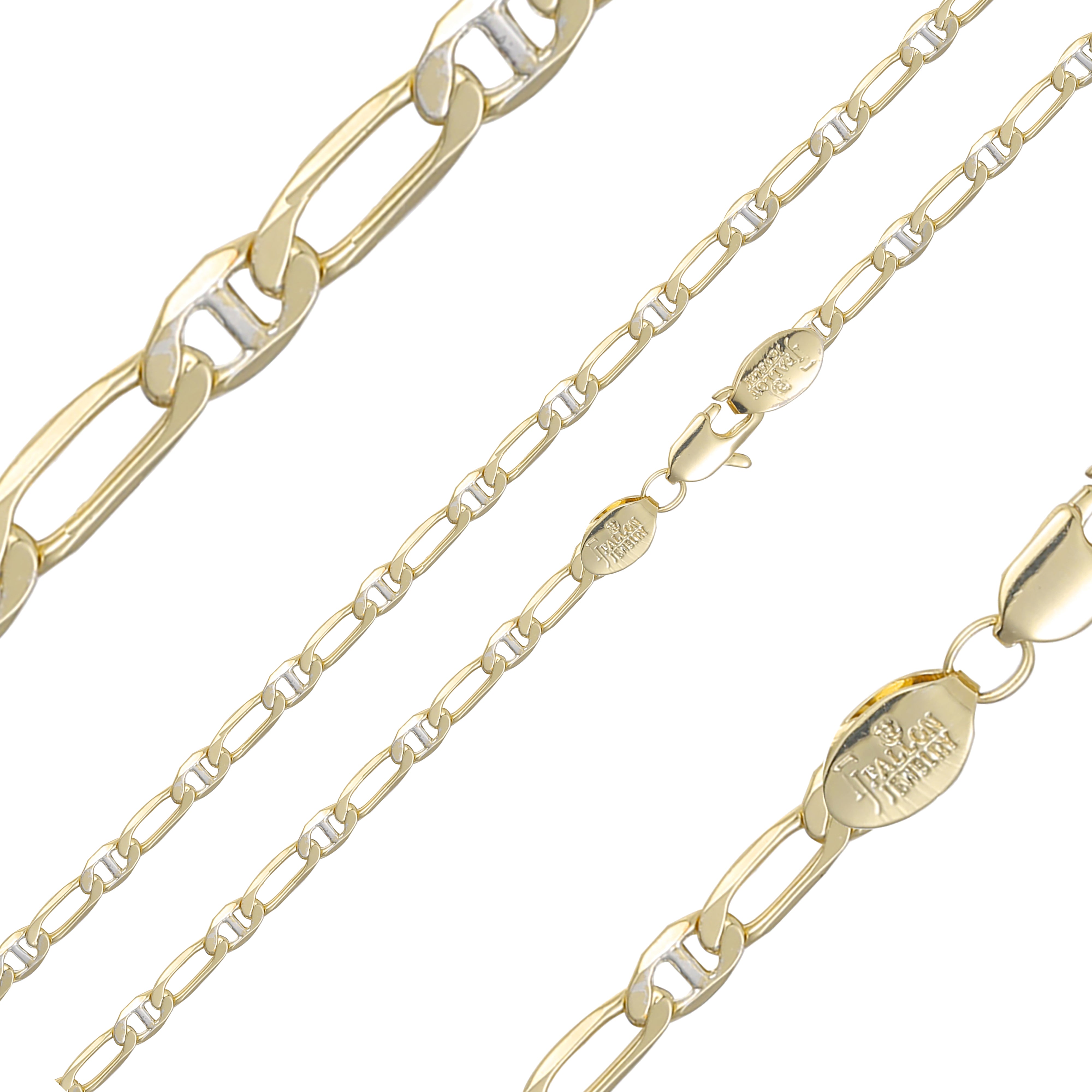 Figaro link slashes hammered chains plated 14K Gold two tone