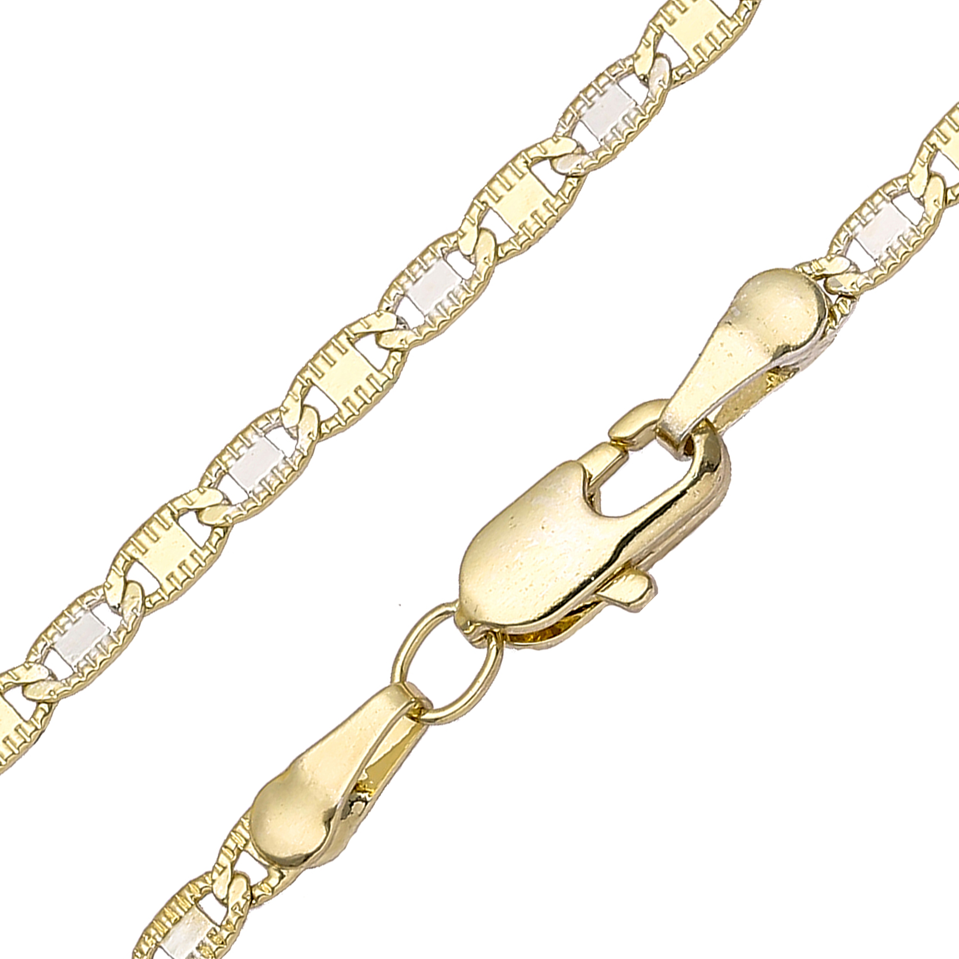Classic Mariner link Chains plated in 14K Gold, two tone, three tone