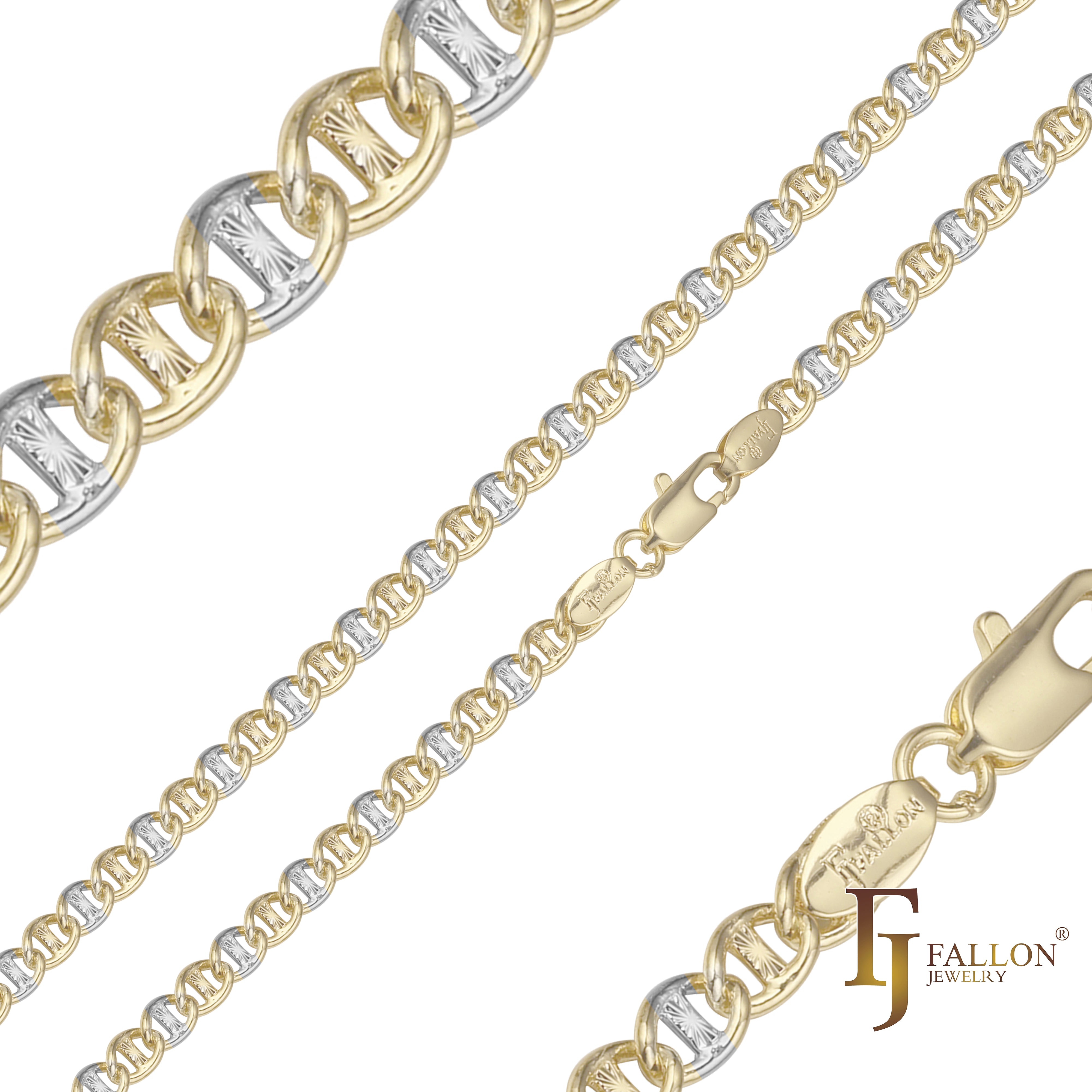 Mariner link Chains plated in 14K Gold, two tone