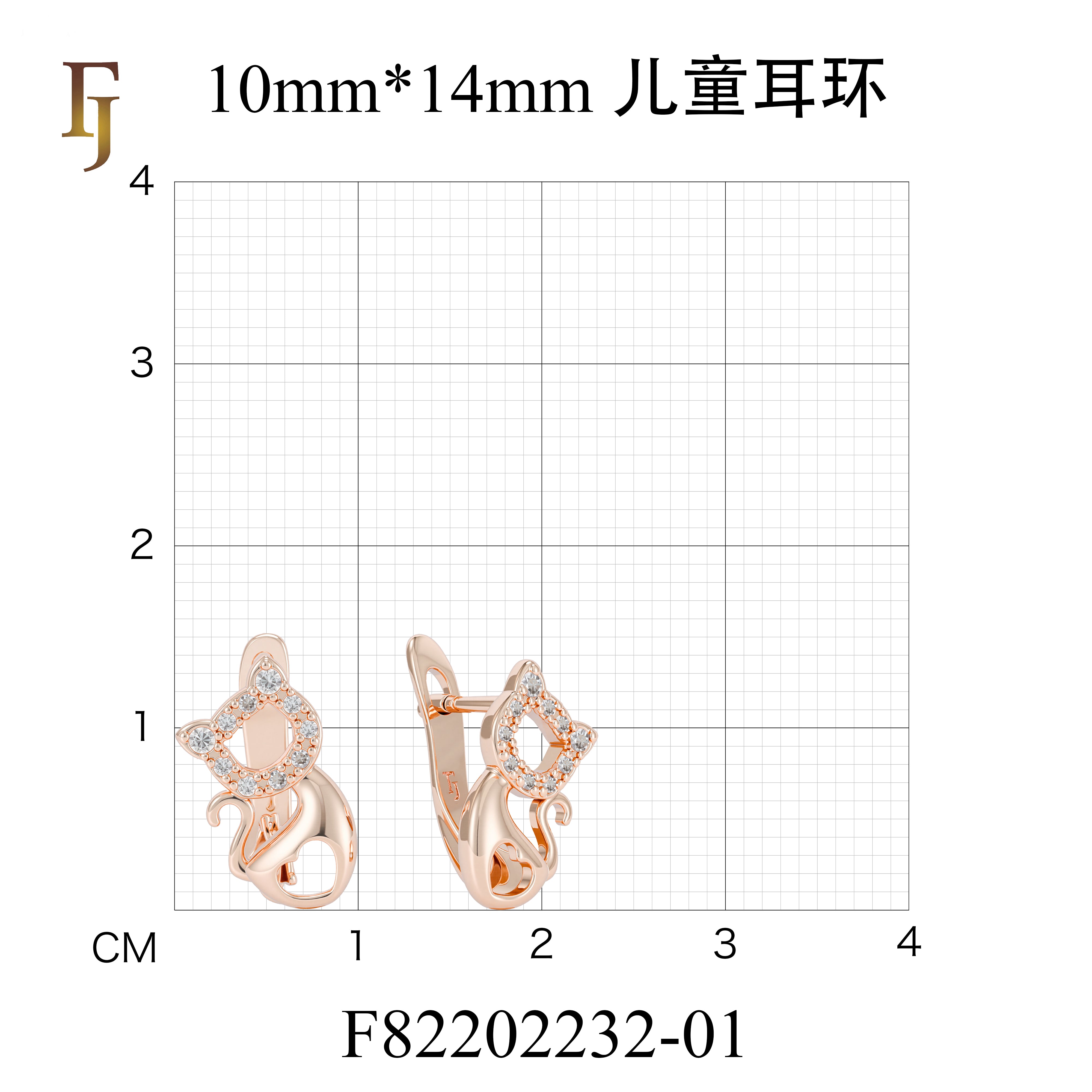Gold Child Earrings – Cute Cat Wire Hook with CZ Ears | Non-Tarnish Pierced Jewelry by FJ