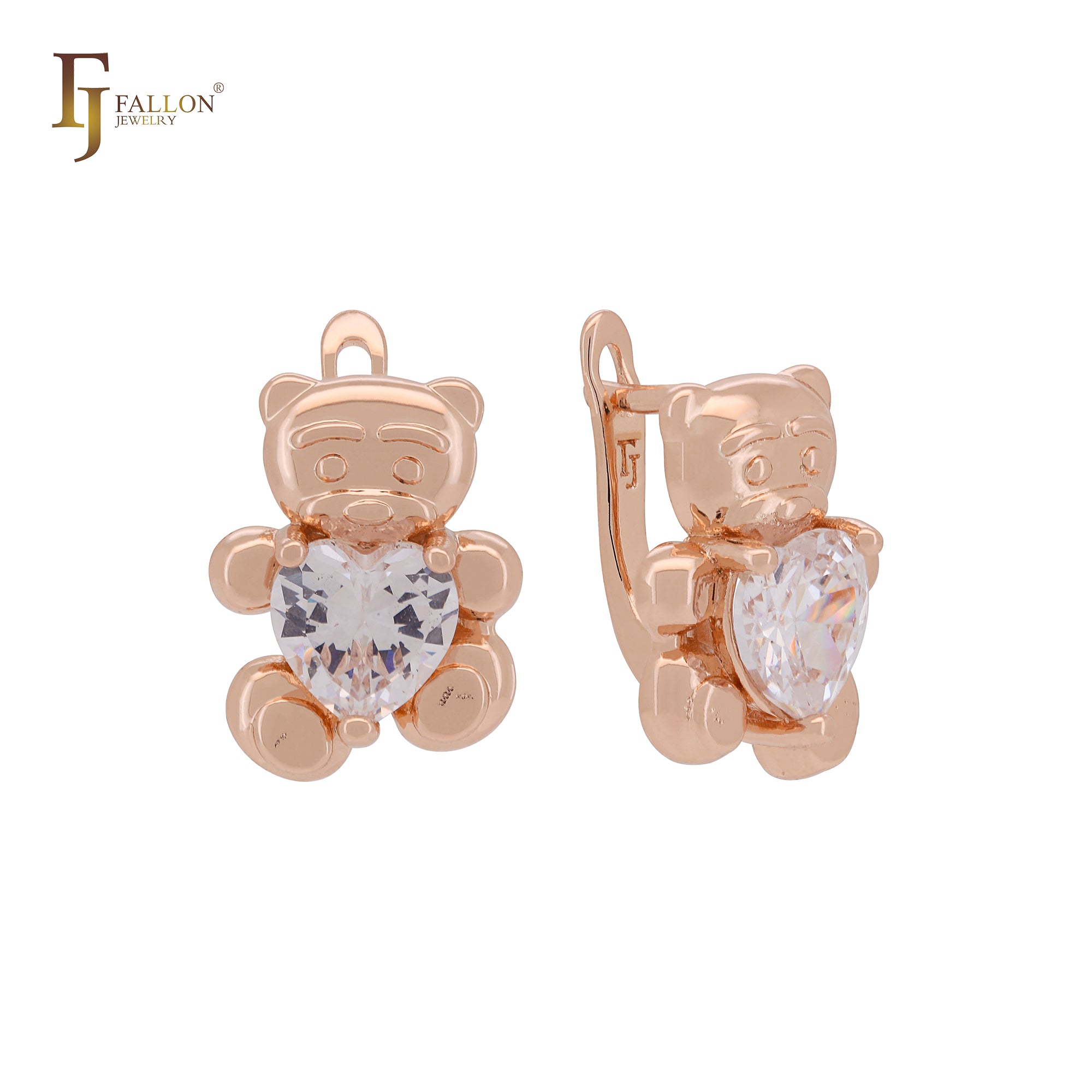 Baby Bear Child 14K Gold, Rose Gold two tone, White Gold Child earrings