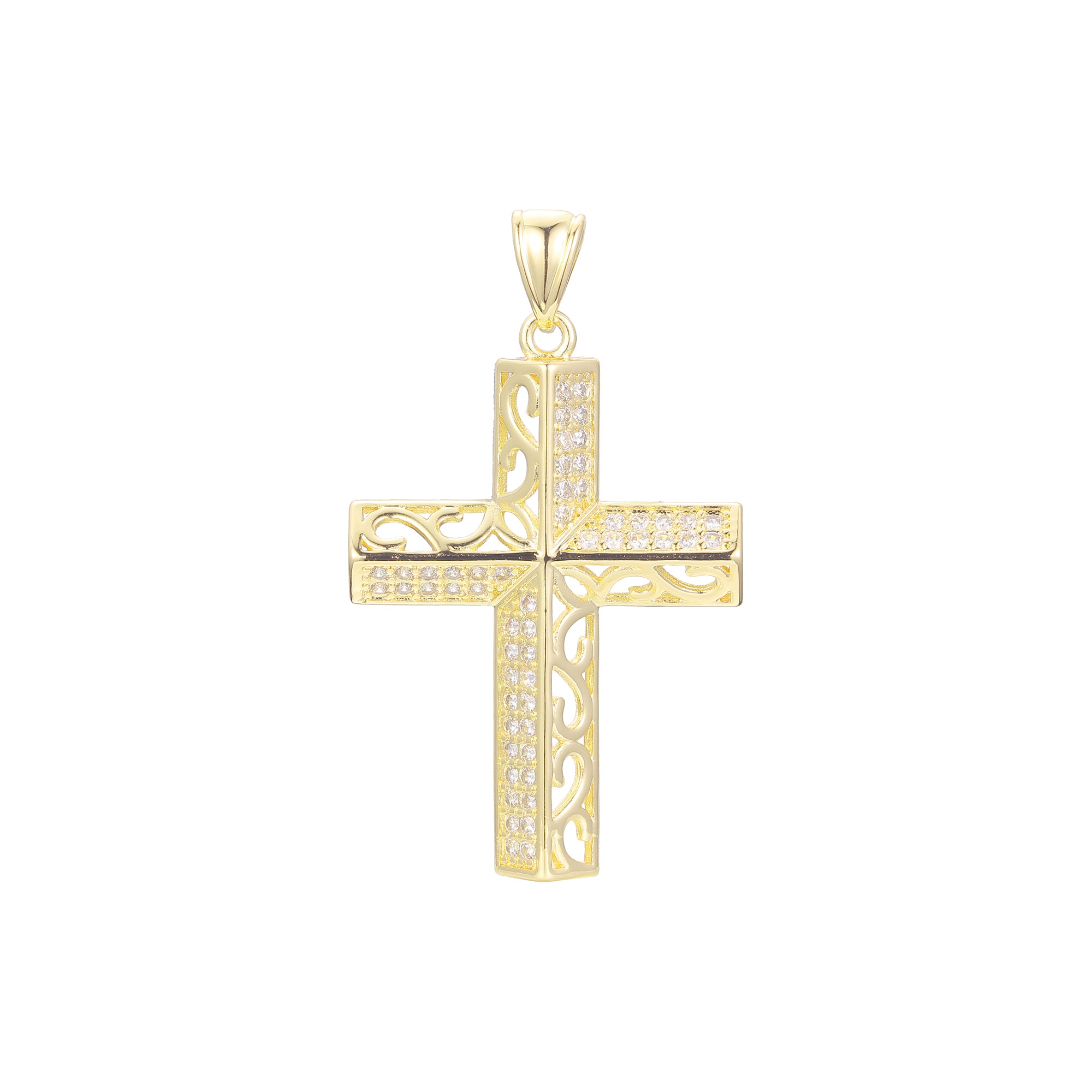 Filigree paved White CZ Rose Gold cross pendant