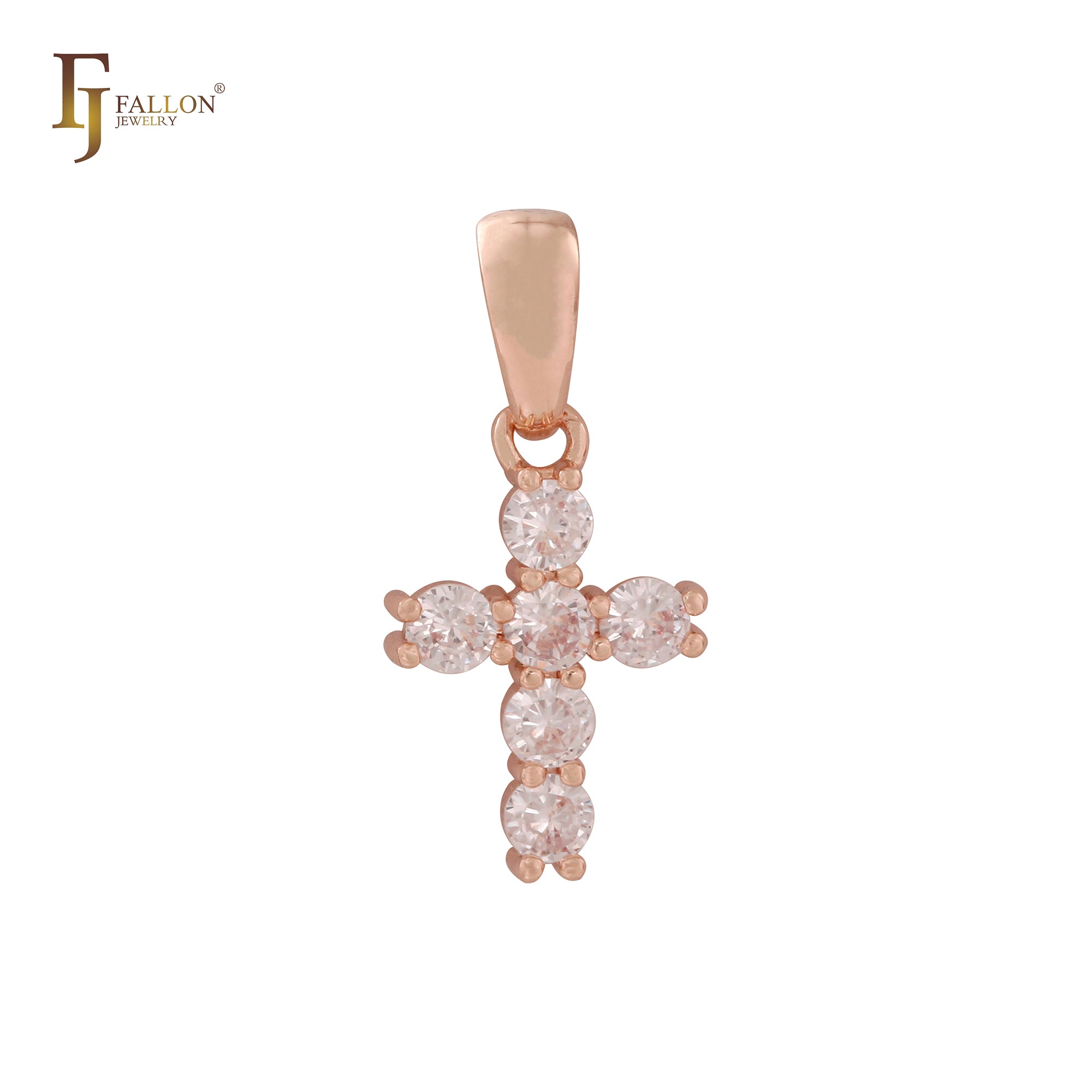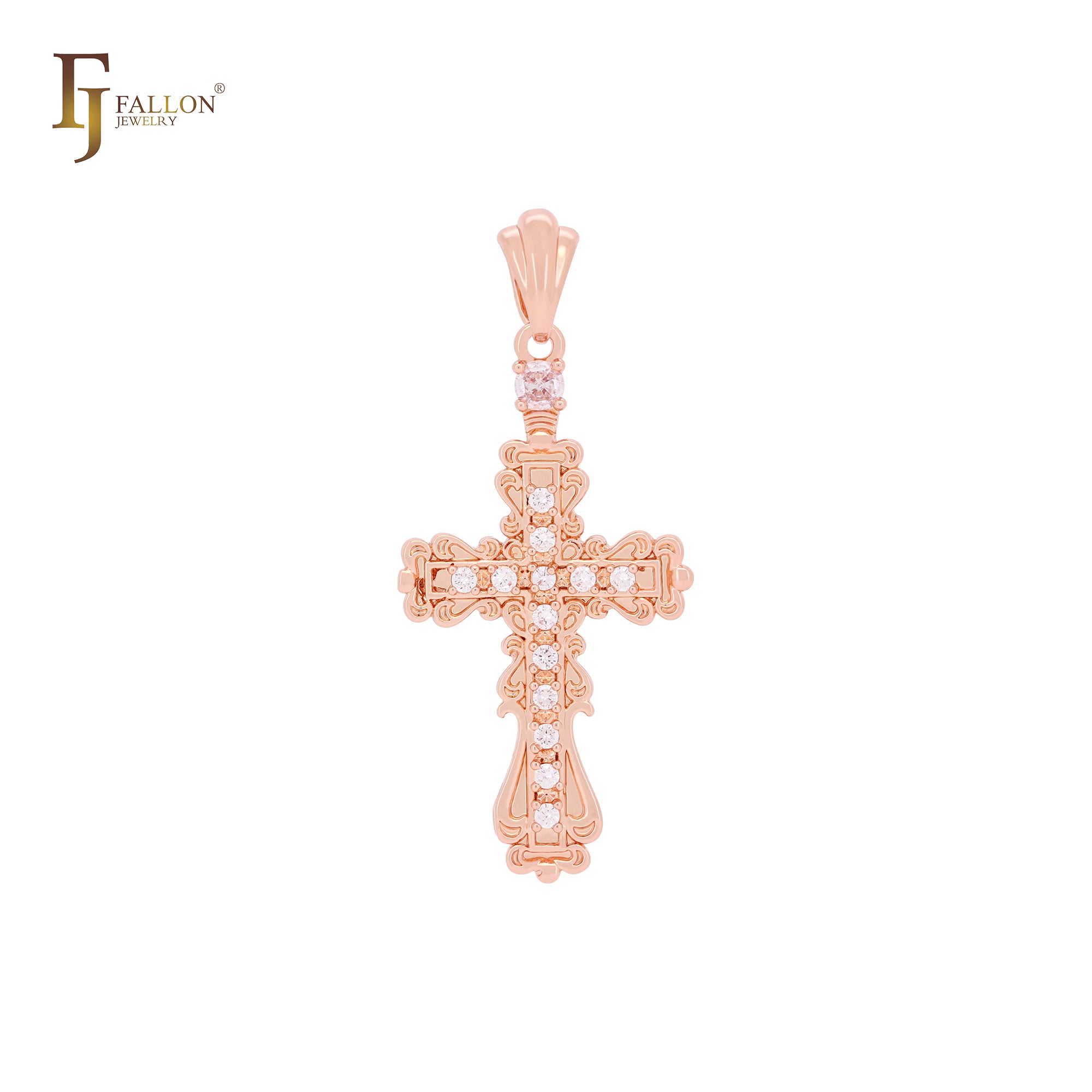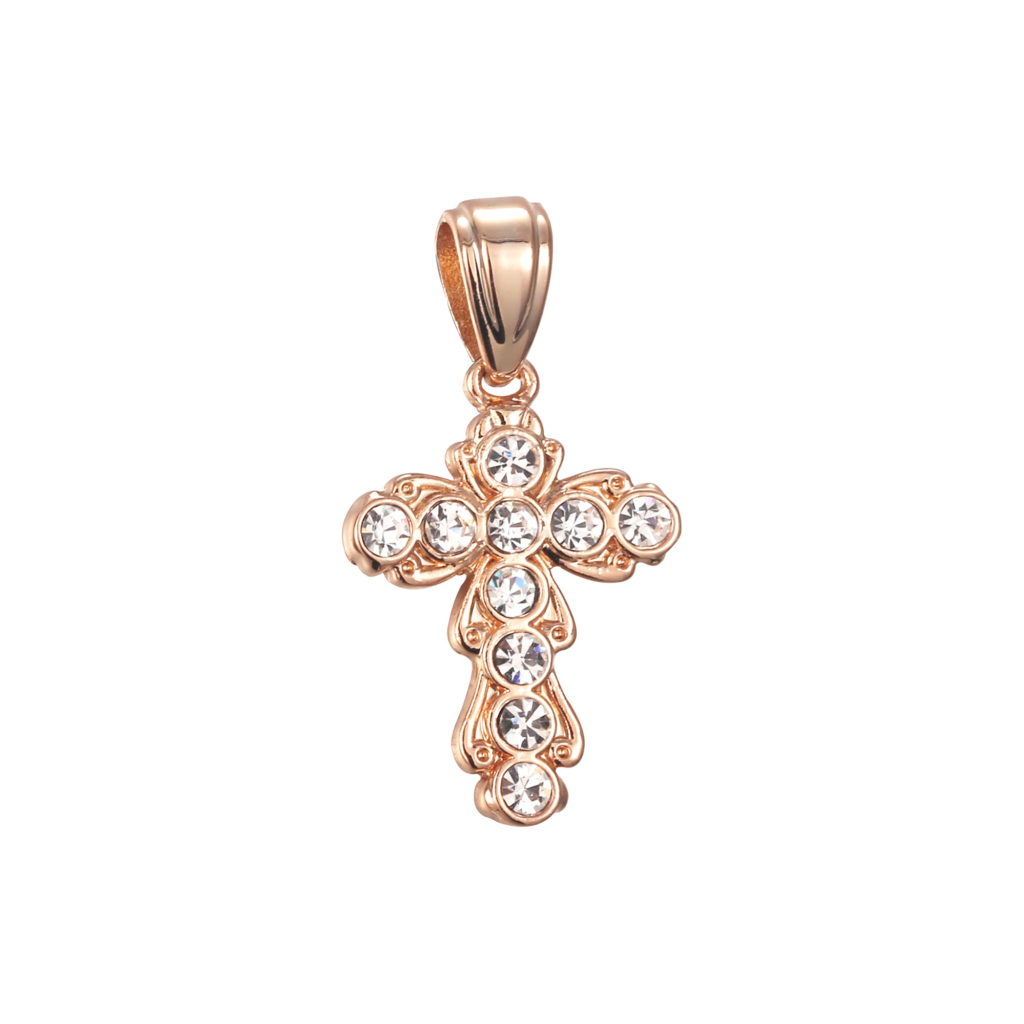 Latin Cross white CZs Rose Gold Cross pendant