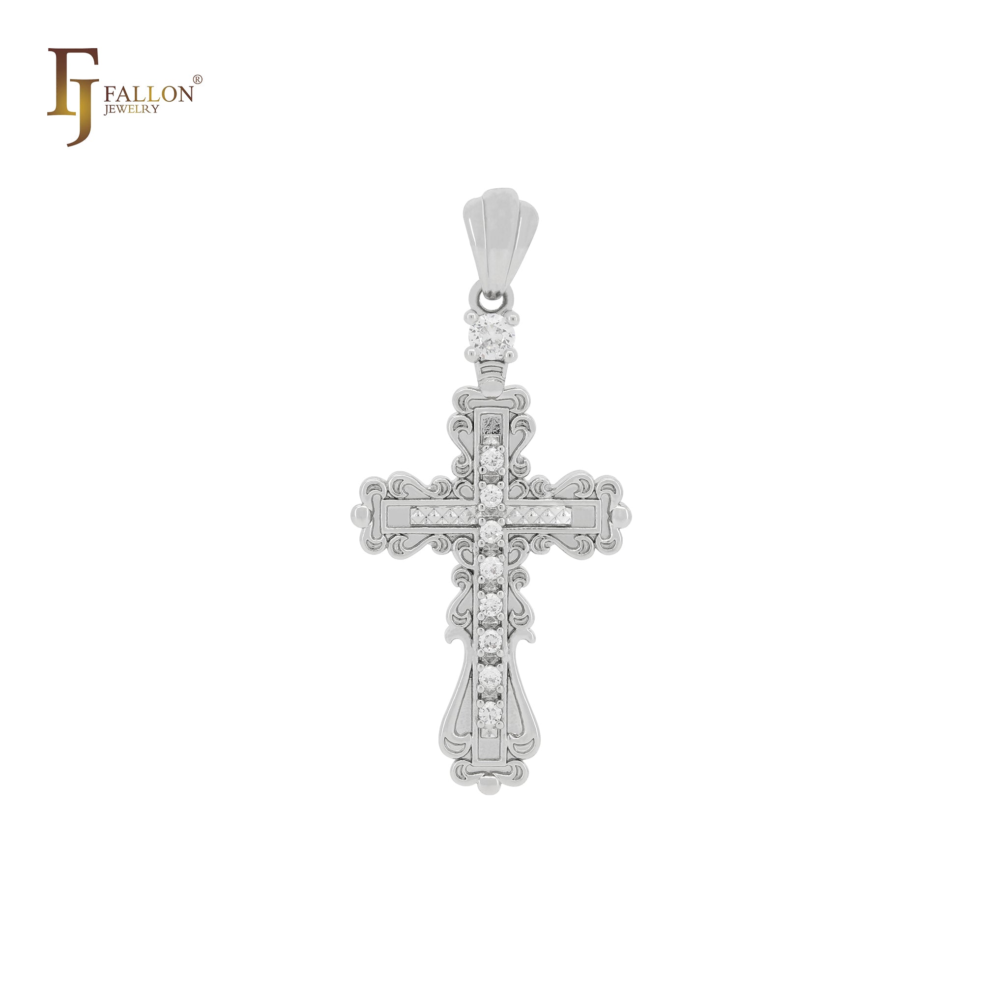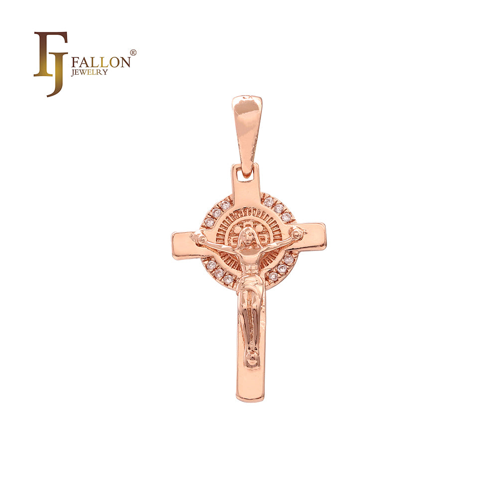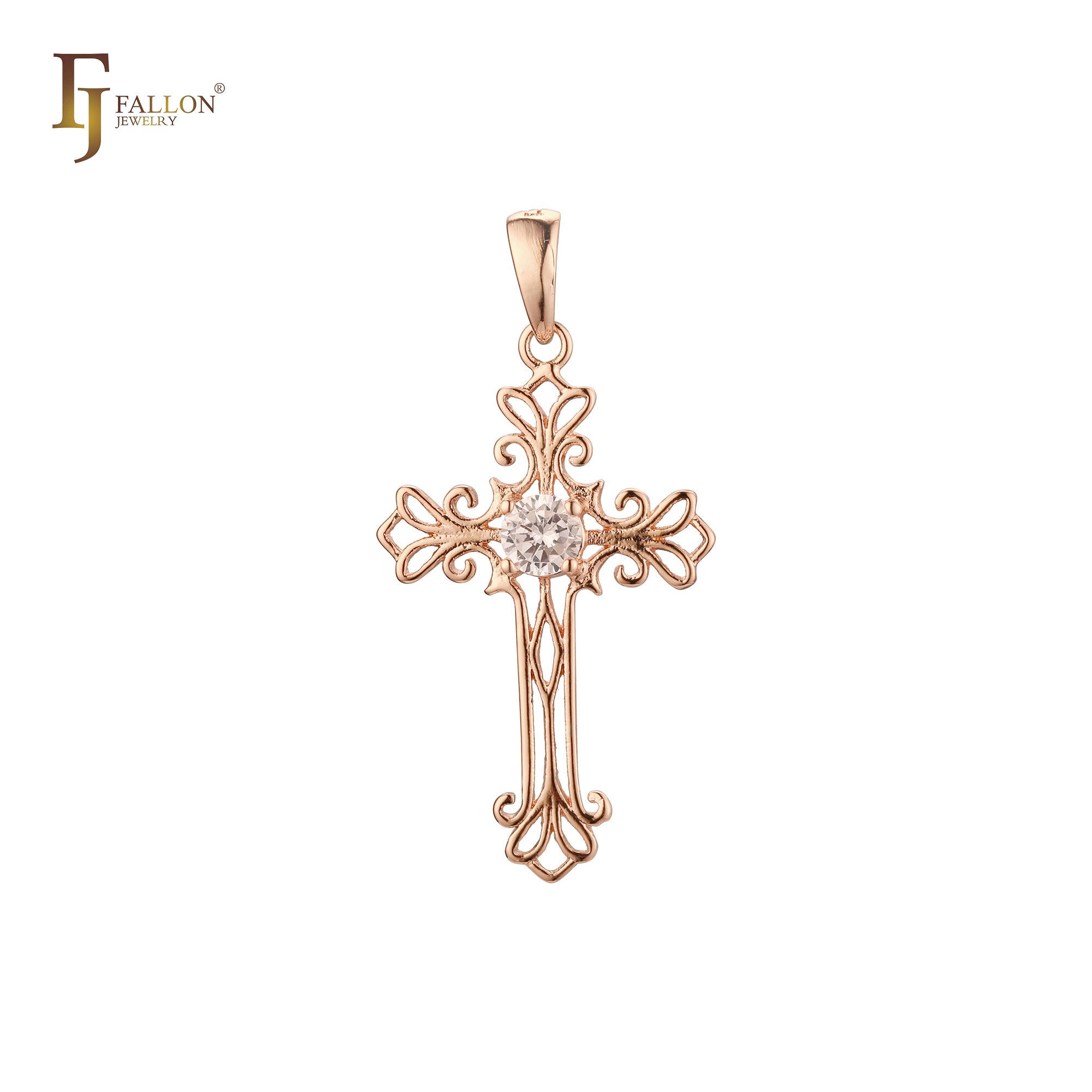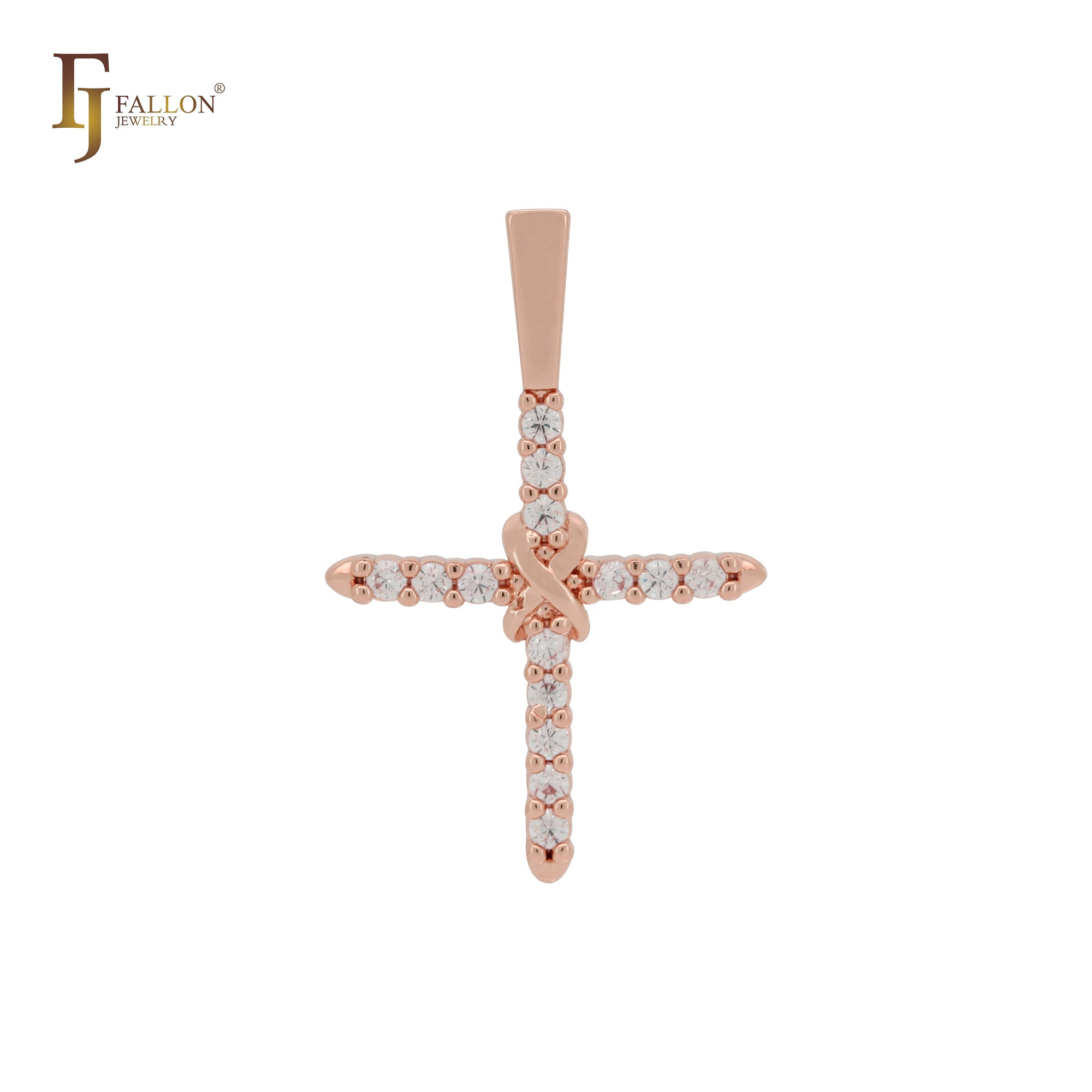 Latin Cross white CZs Rose Gold Cross pendant