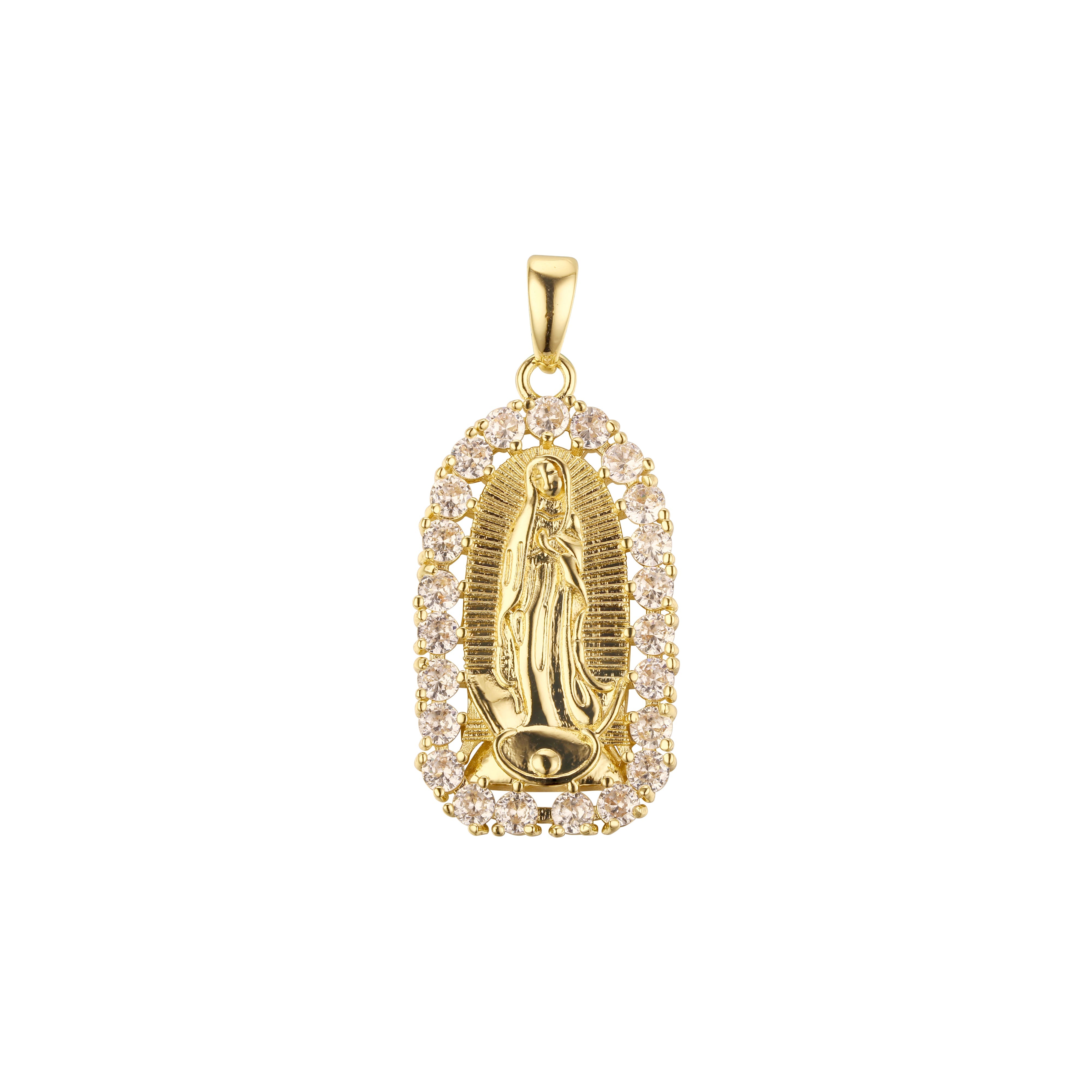 Virgin Mary of Guadalupe Mary pendant plated in 14K Gold colors