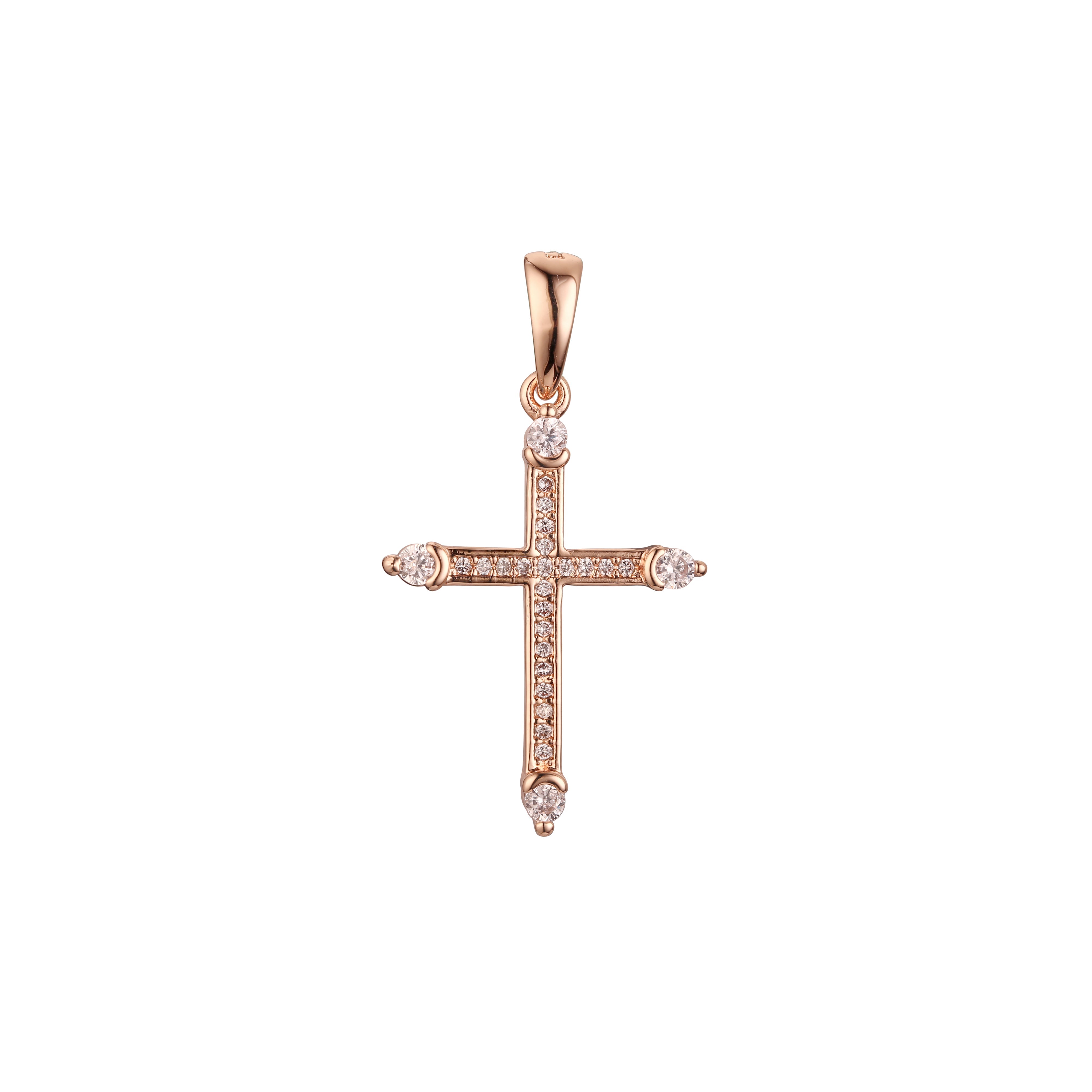 Latin Cluster white CZs Rose Gold Latin cross pendant