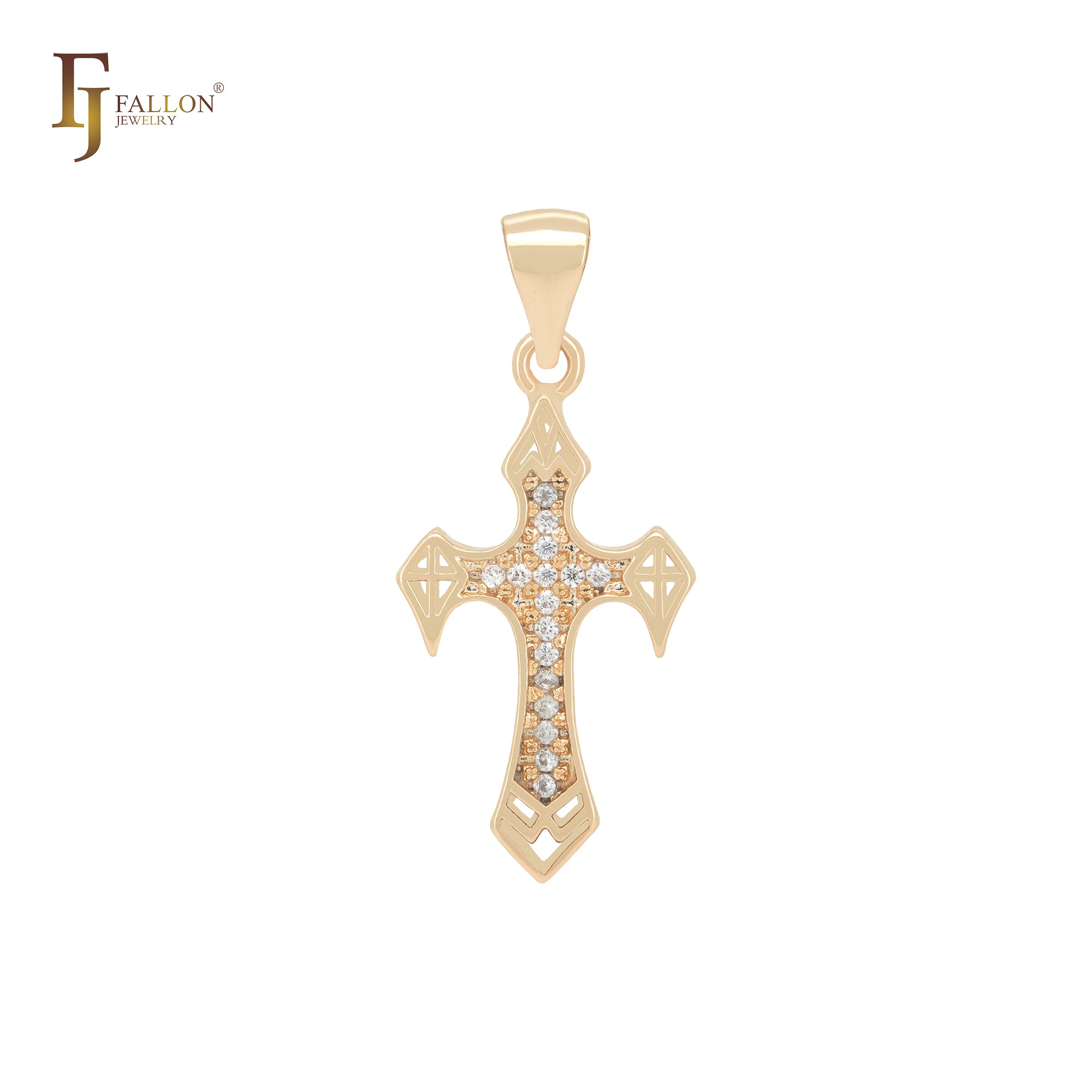 Fancy white CZs cluster 14k Gold Latin Style Cross Pendant
