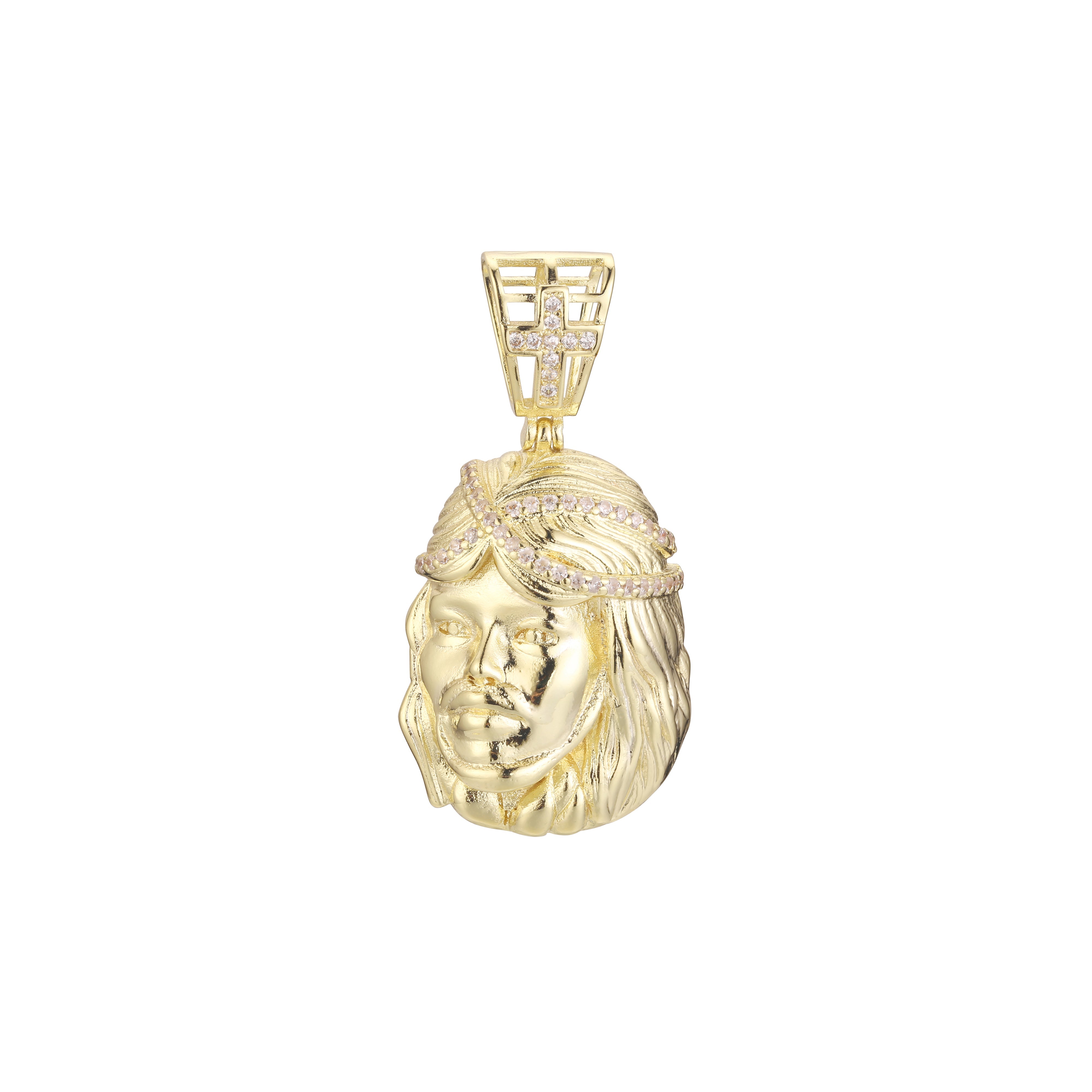 White CZ Face of Jesus Religious Pendant Plated in 14K Gold colors