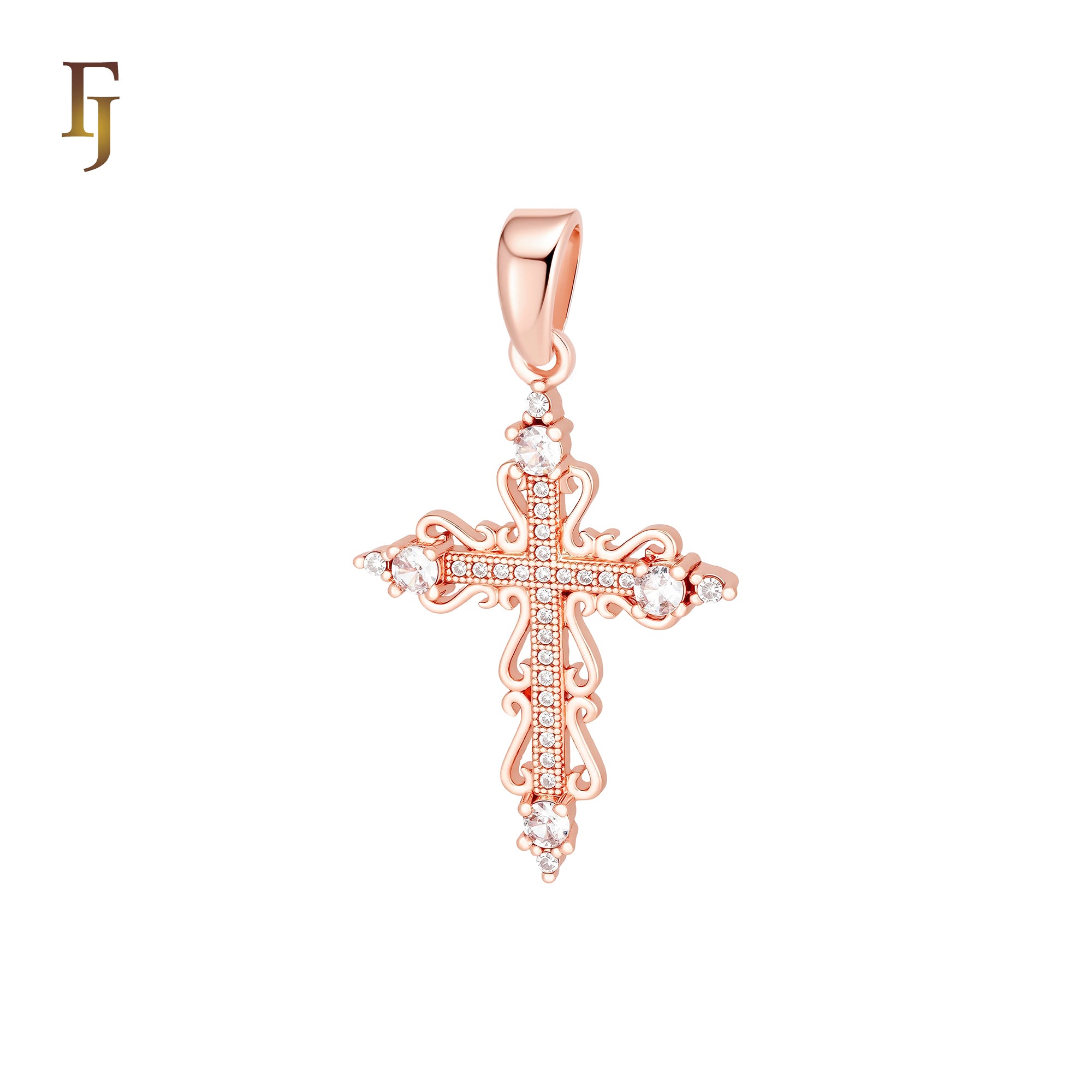 Latin Style Filigree white CZs paved Religious Rose Gold Christian Cross Pendant