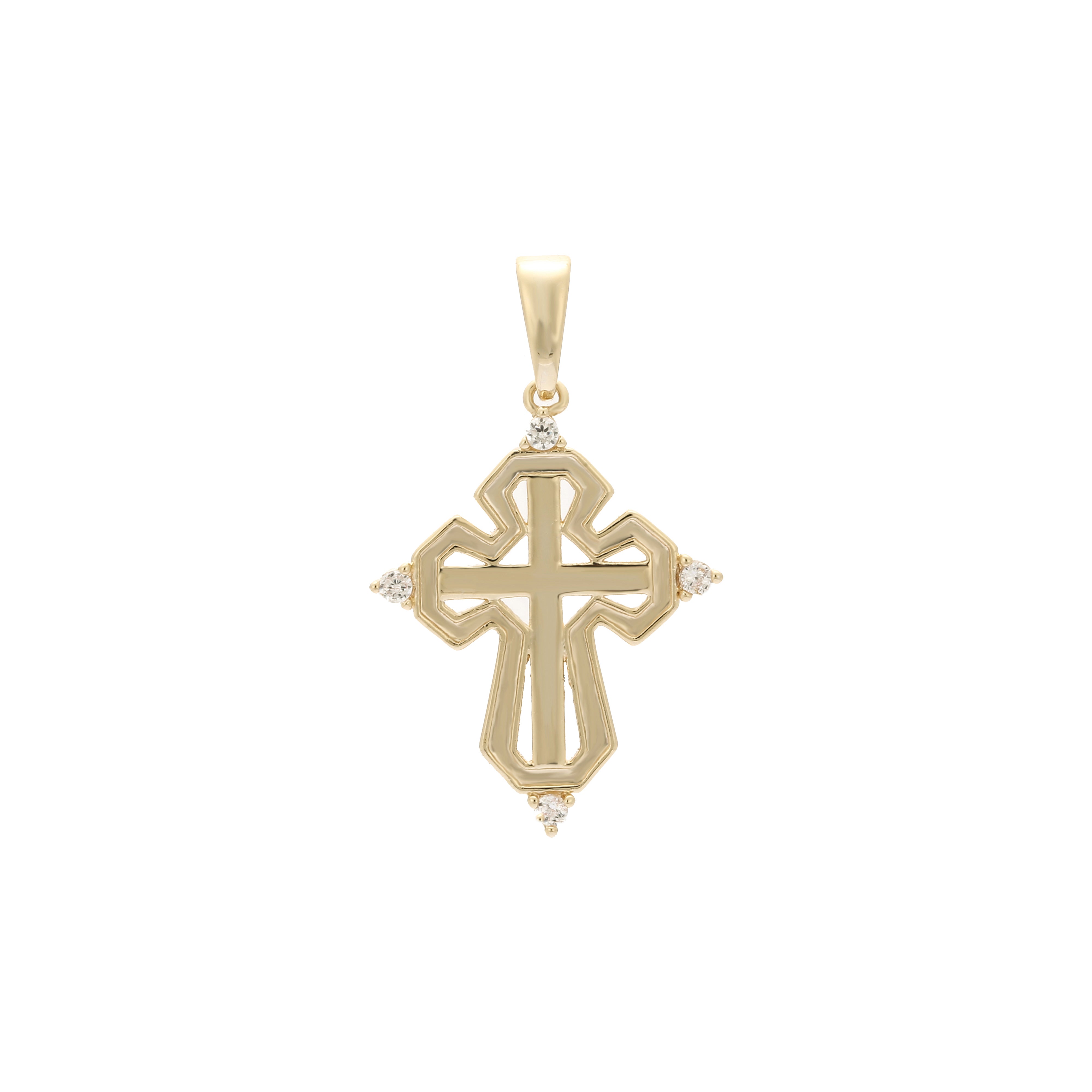 Cluster white CZs 14K Gold Latin Cross Pendant