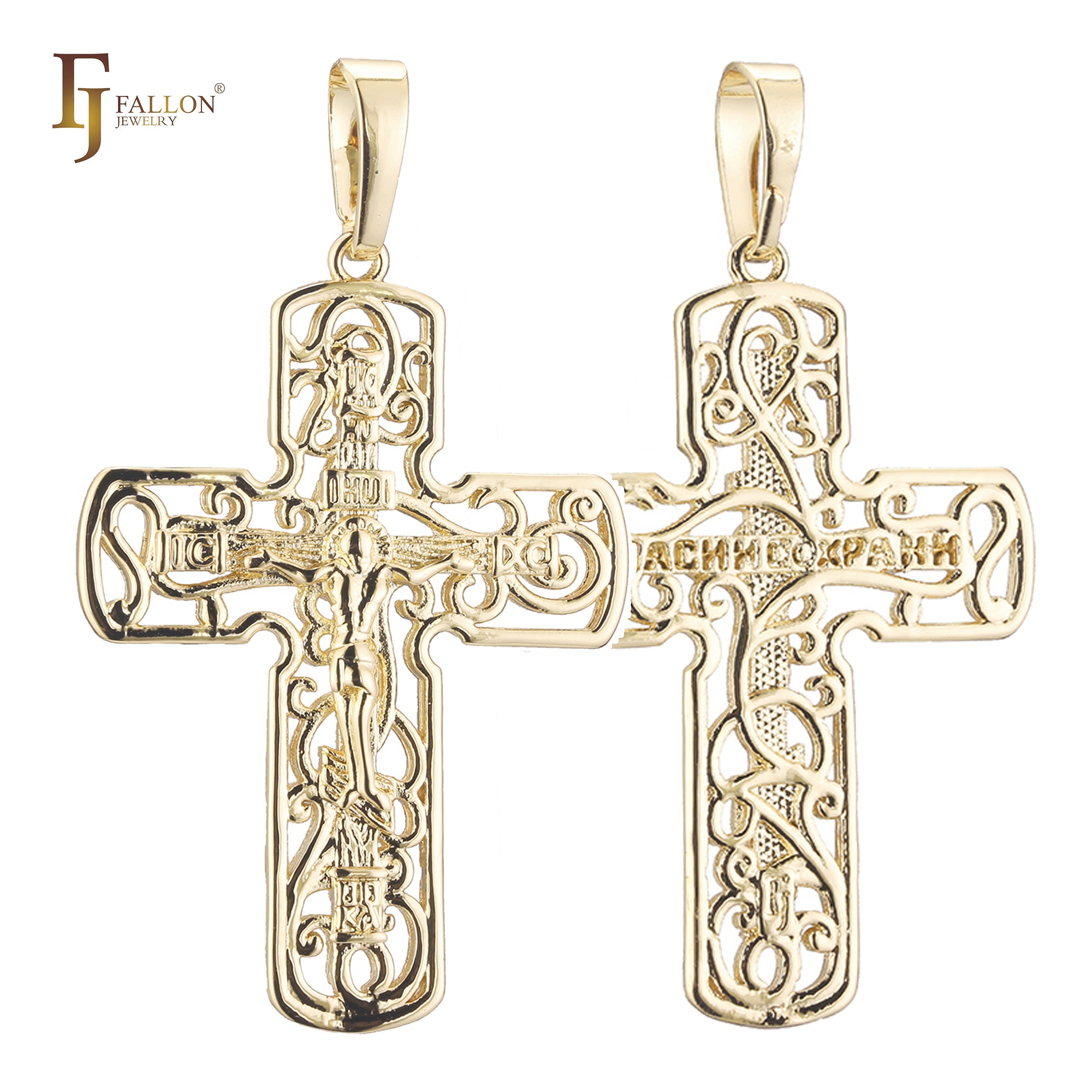 🔥 Russian Orthodox cross pendant in 14K Gold, Rose Gold two tone, White Gold plating colors