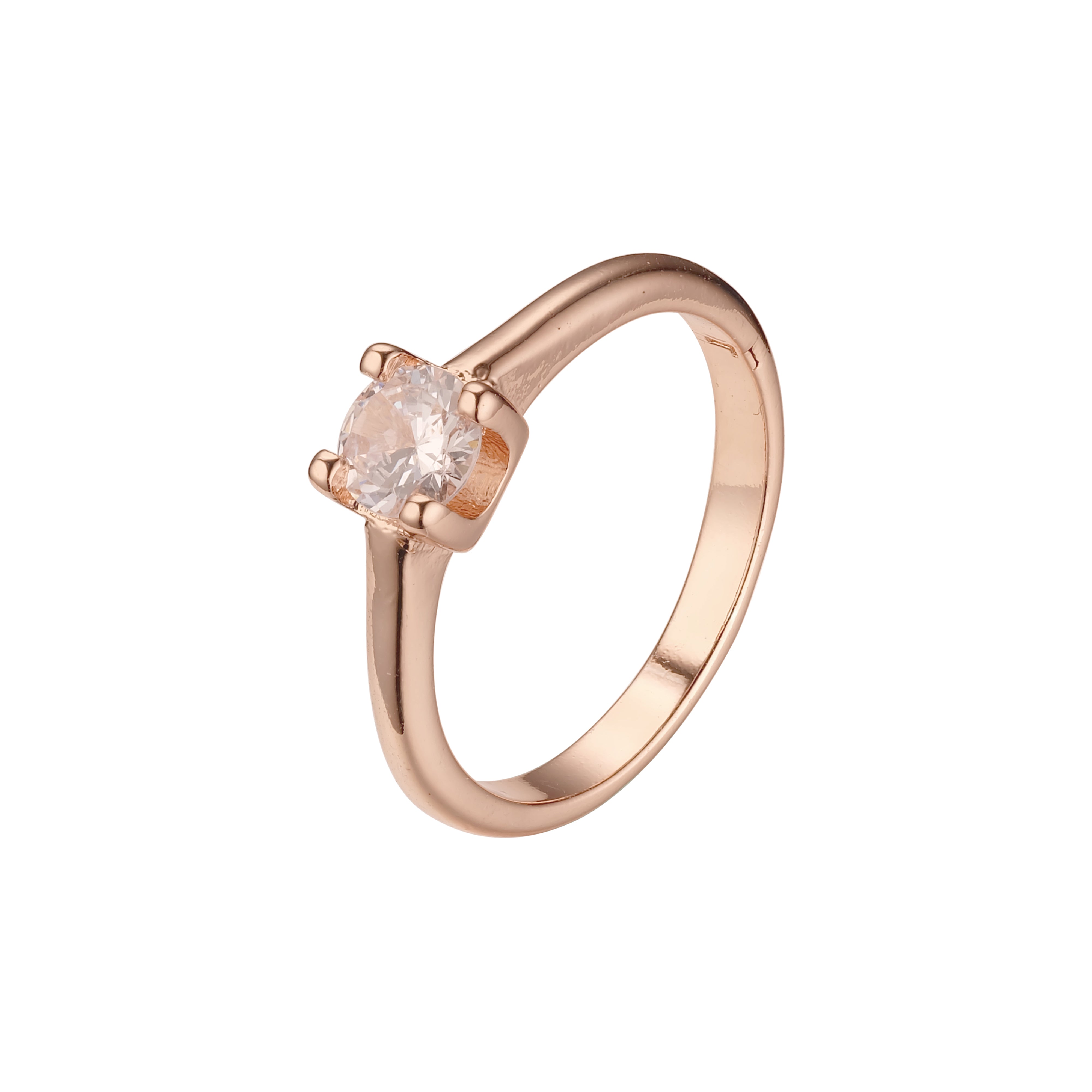Solitaire round stone rings in 18K Gold, White Gold, 14K Gold, Rose Gold plating colors