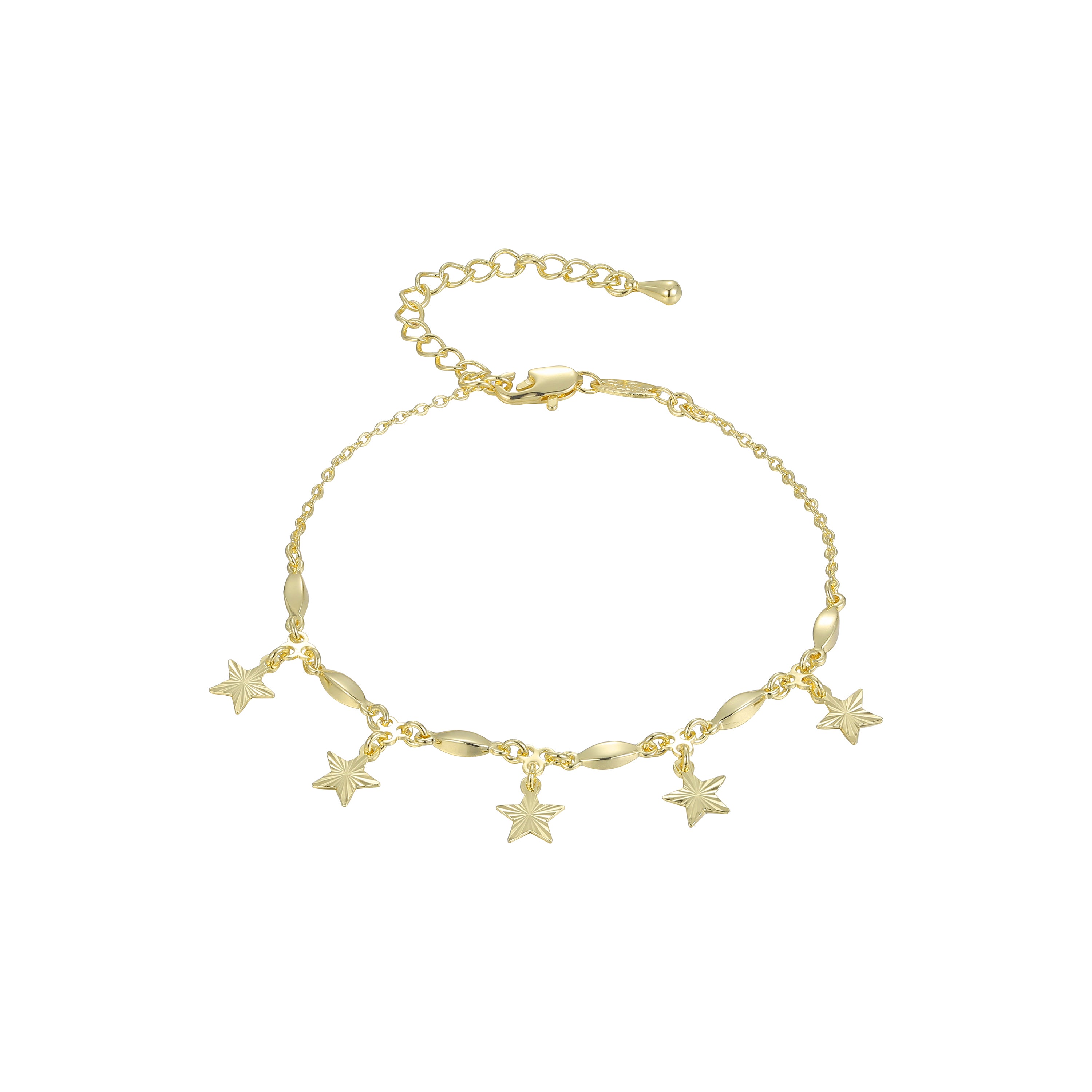 Fancy great flower and beads link bracelets chains plated in 14K Gold