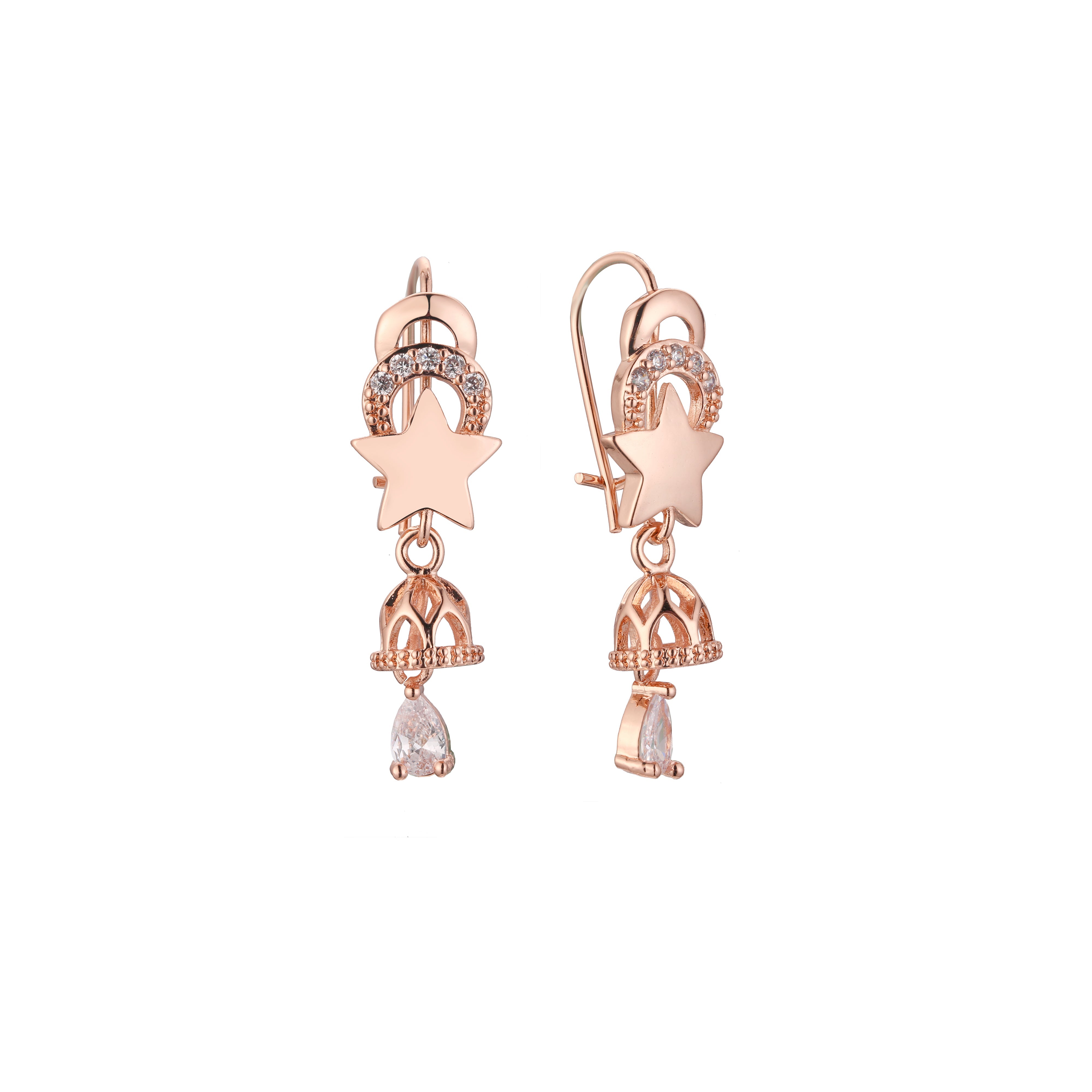 Wire hook Stars cluster chandelier drop earrings in 14K Gold, Rose Gold plating colors