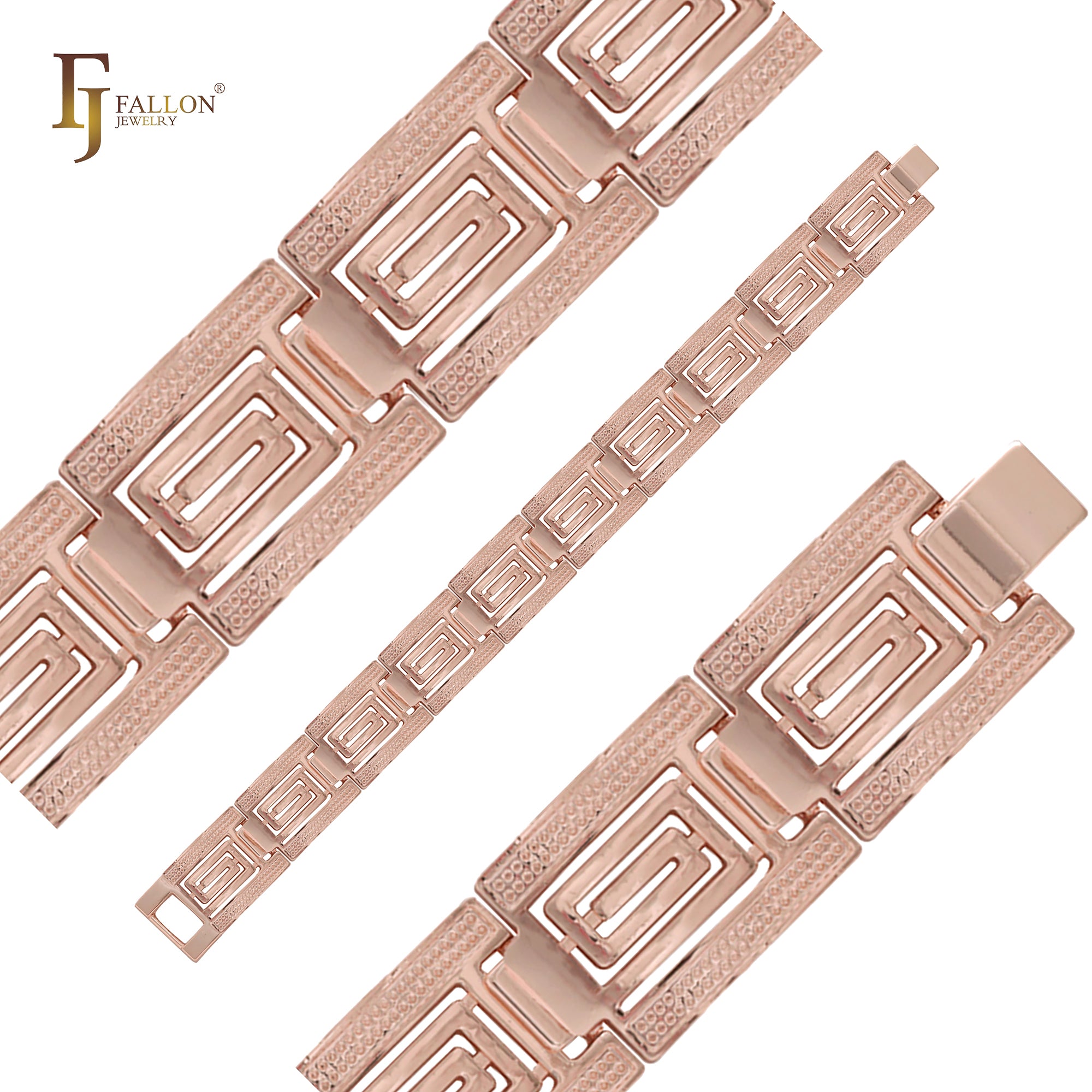 Luxurious fancy link bracelets plated in 14K Gold, Rose Gold colors