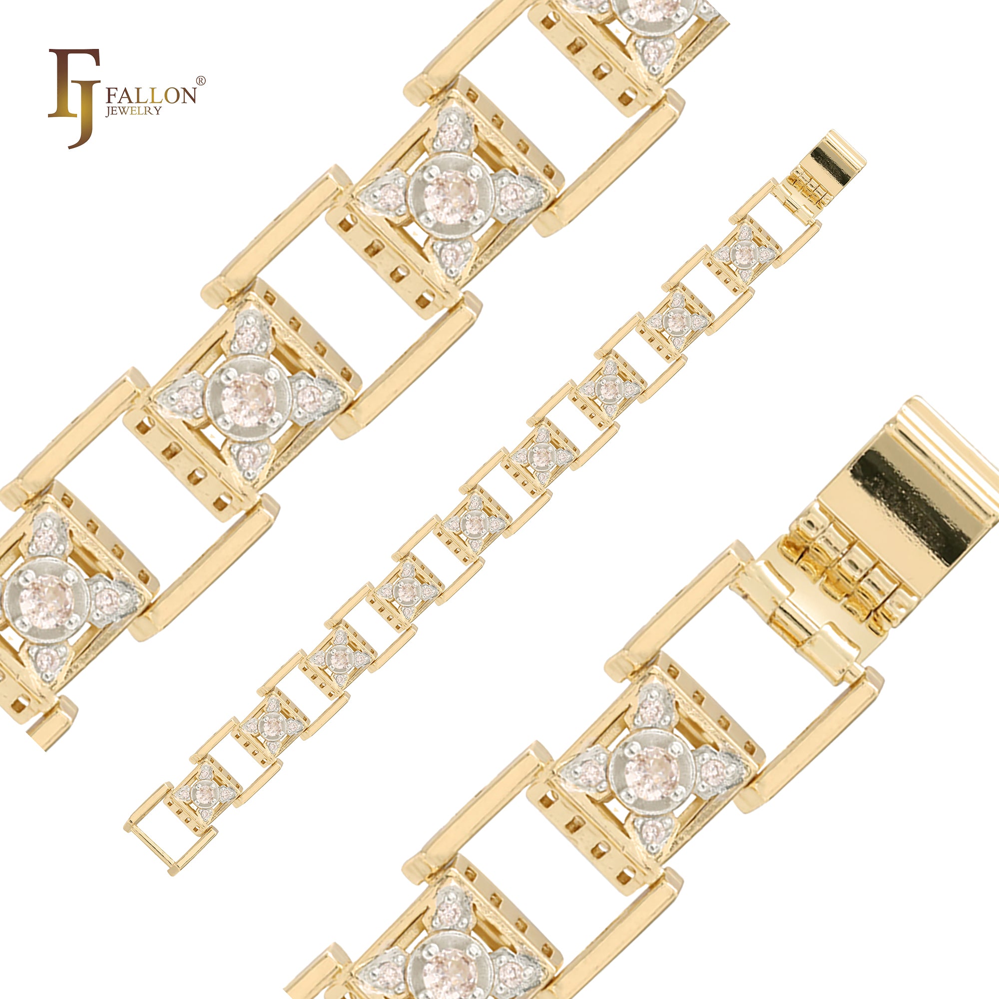 Fancy link bracelets plated in 14K Gold, Rose Gold two tone colors