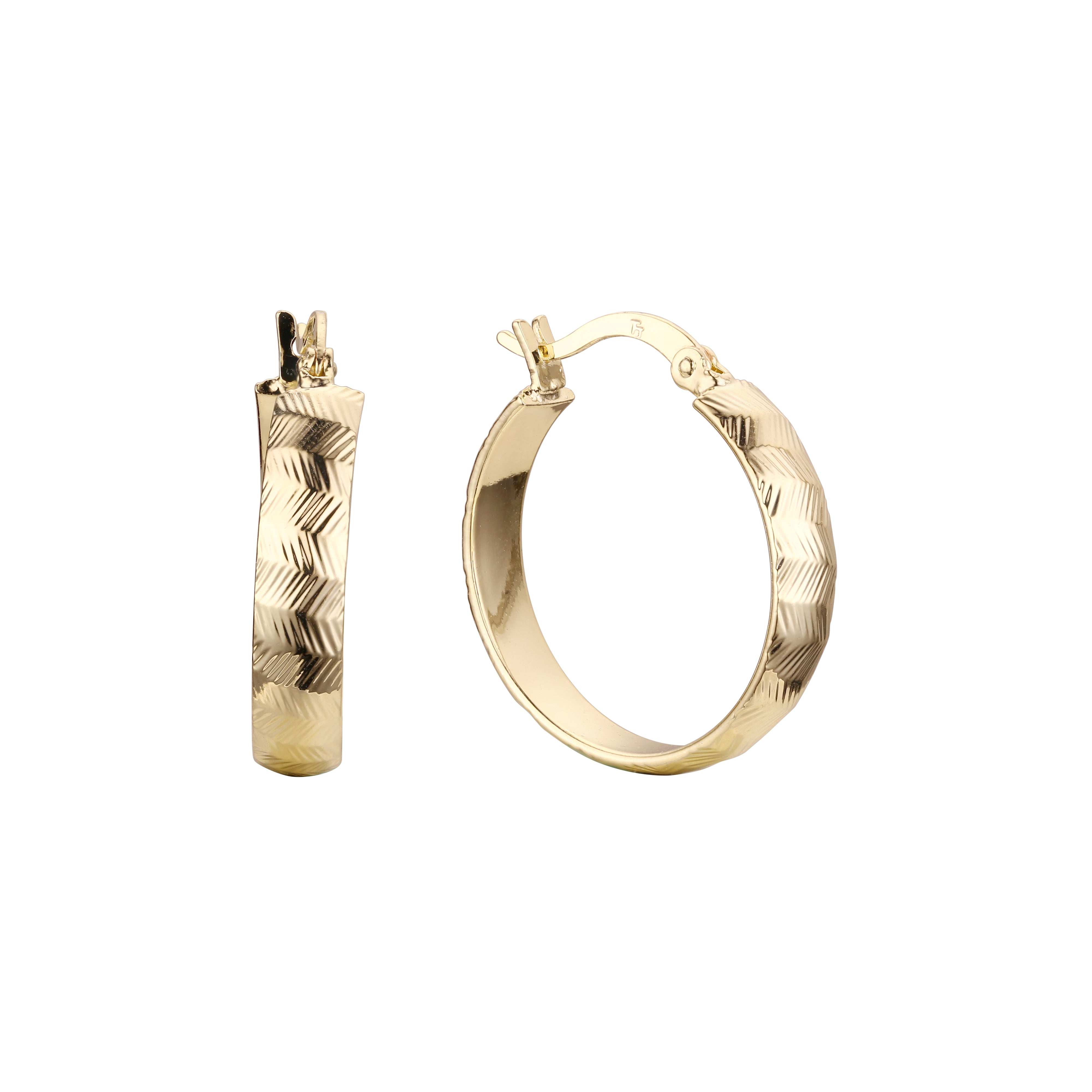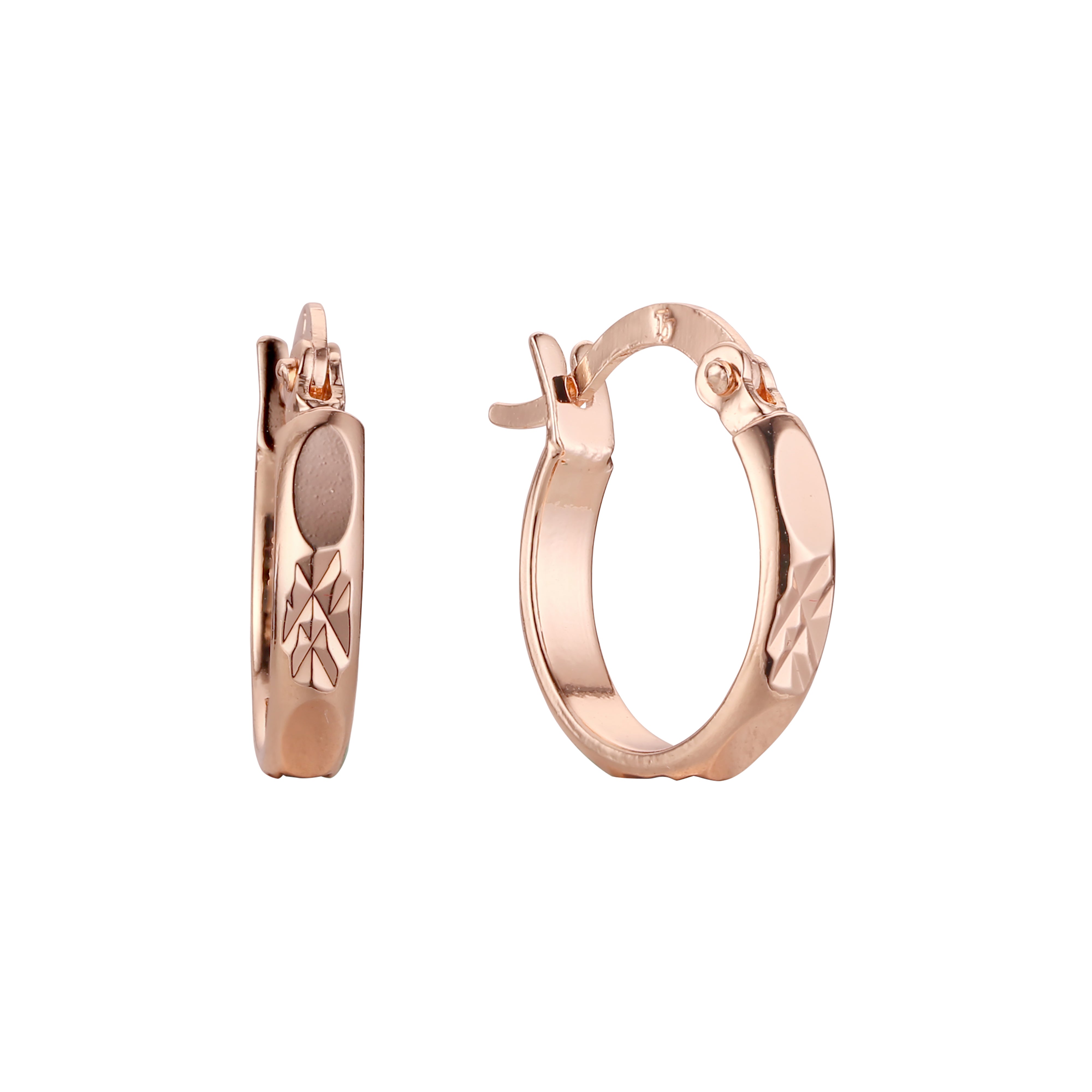 Rhombus Textured Hoop earring in 14K Gold, Rose Gold