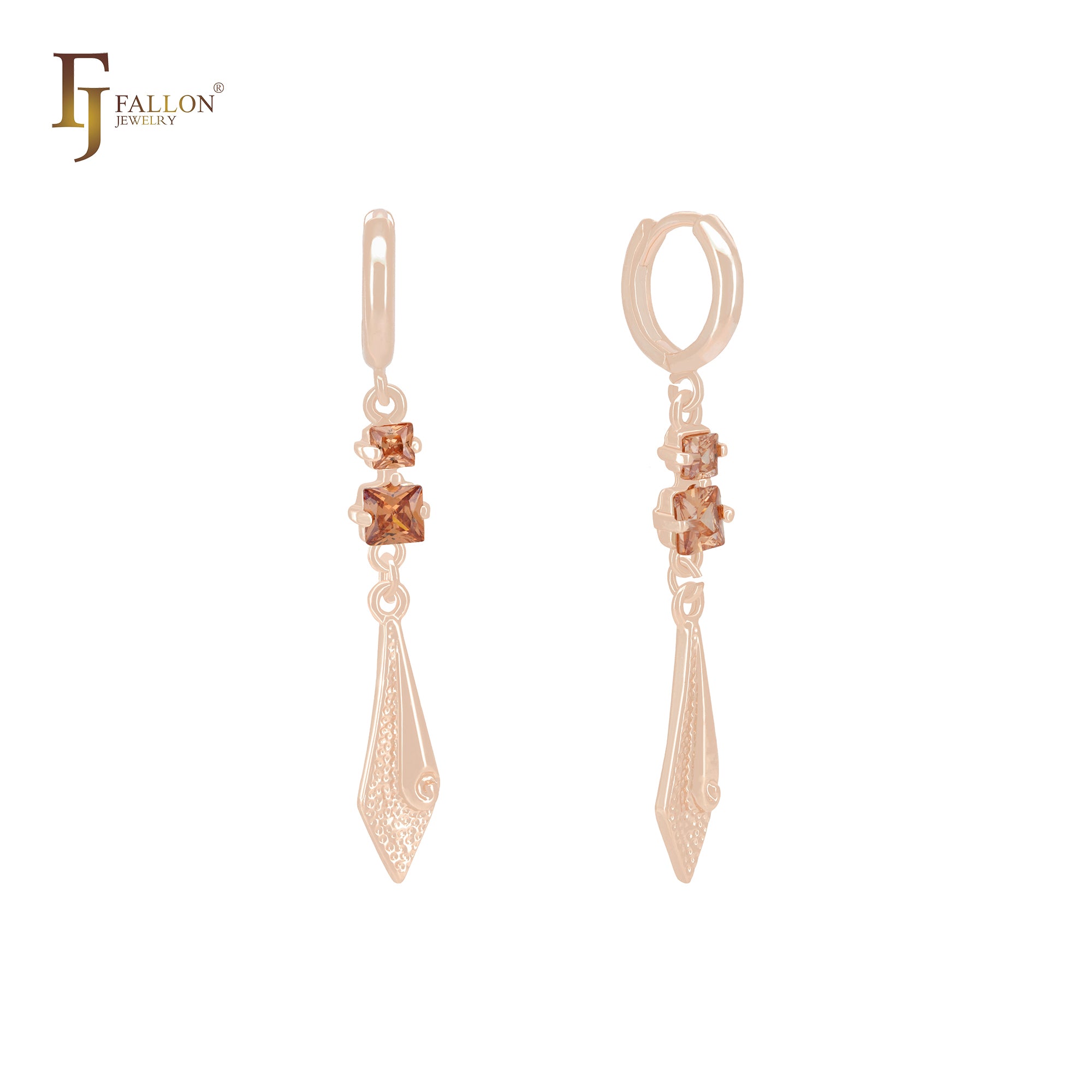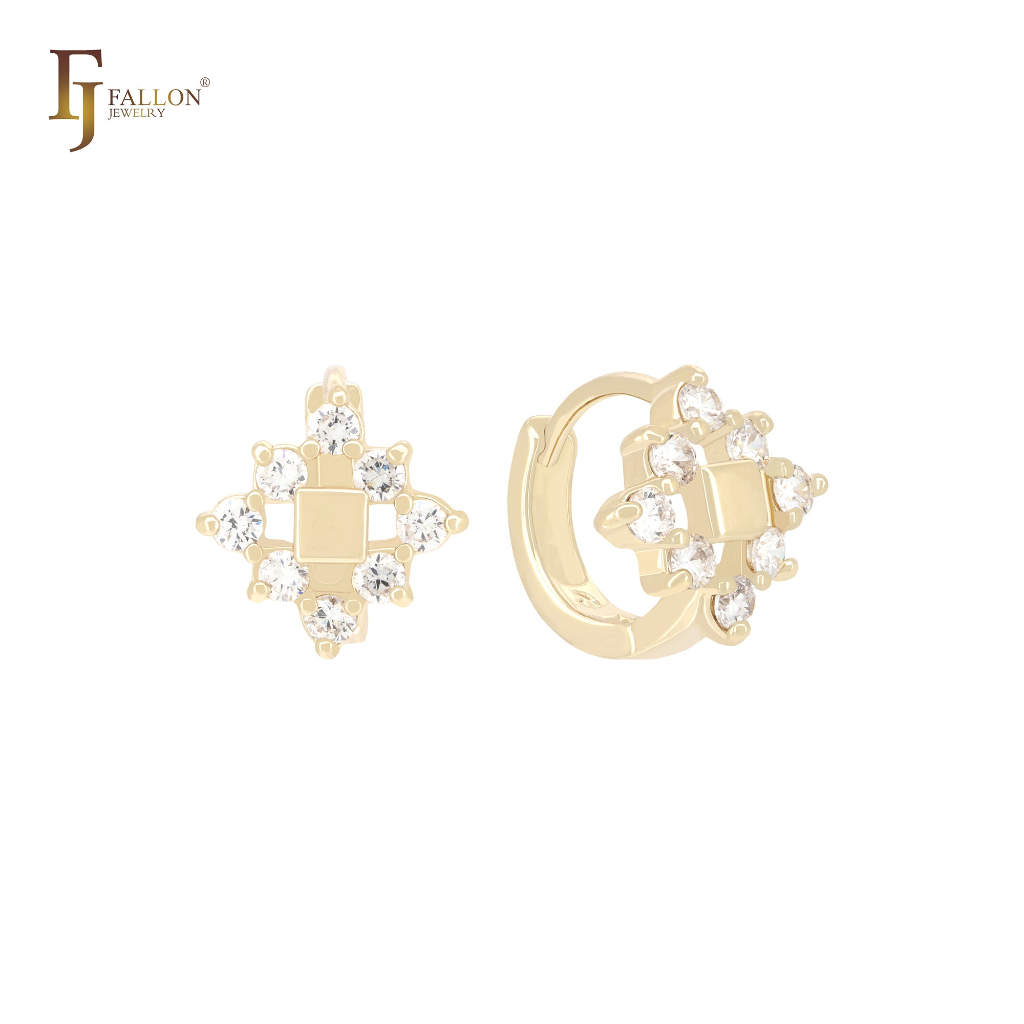Elegant Spining snowflake white CZs Maple 14K Gold drop Huggie Earrings