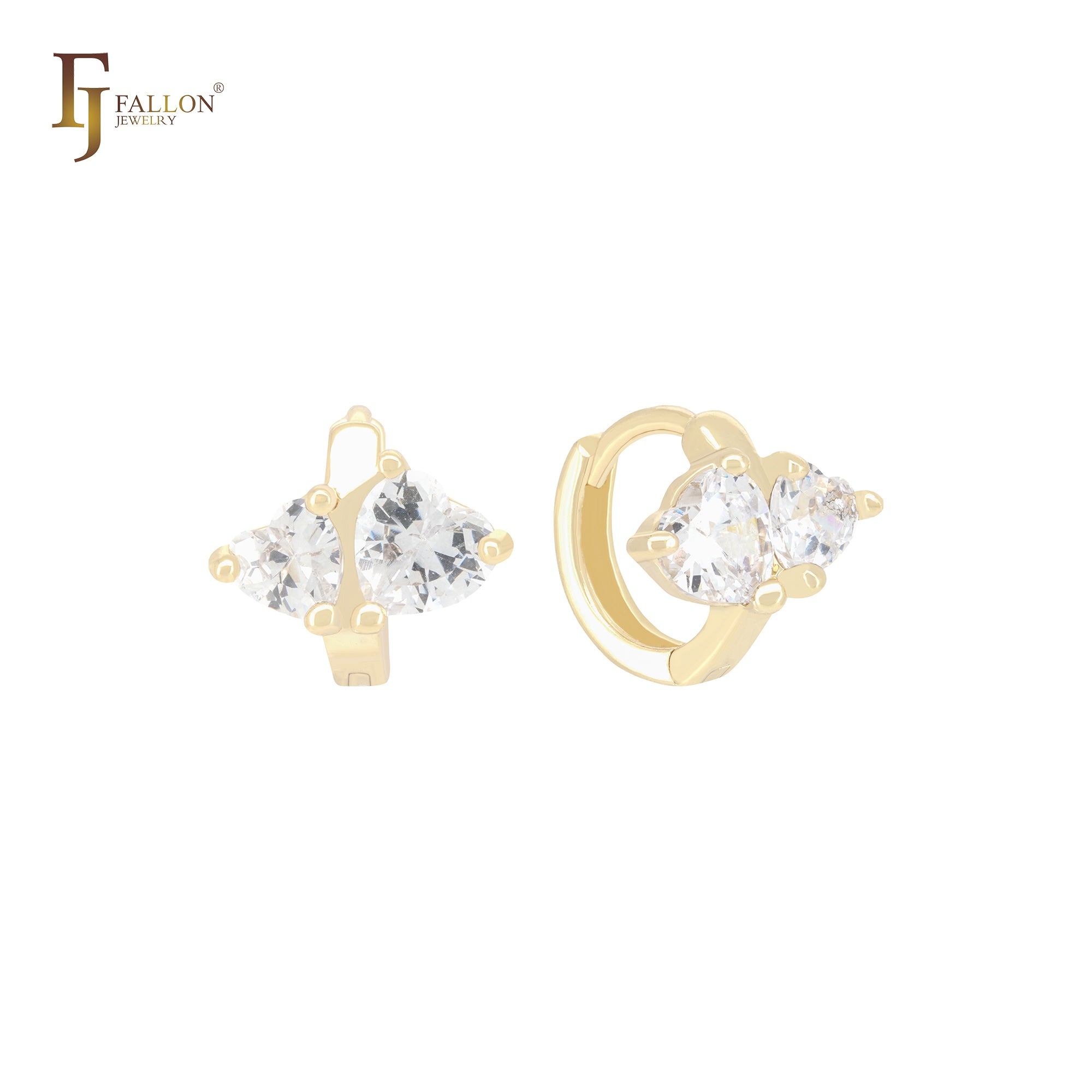 Double Heart white CZs 14K Gold Huggie Earrings Huggies