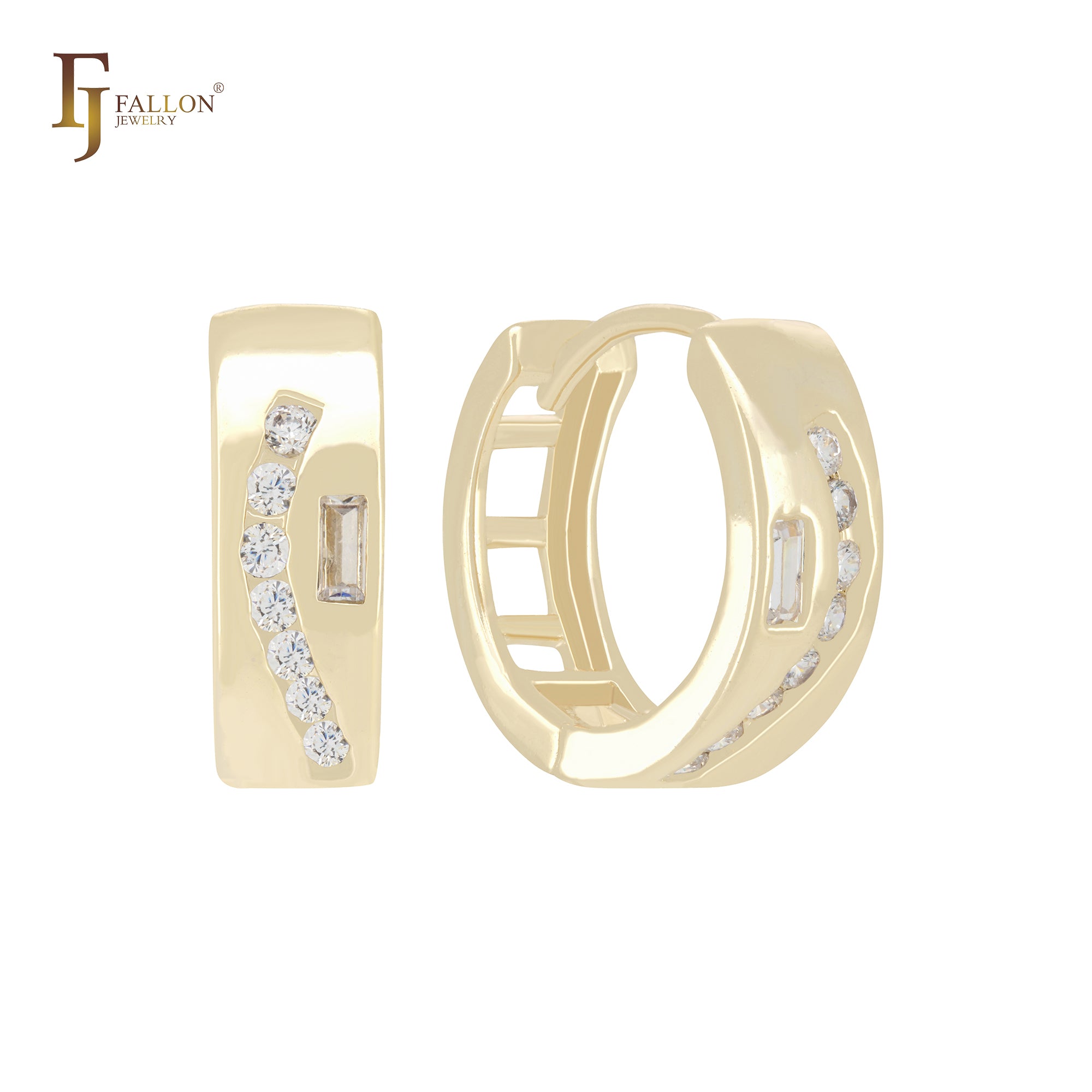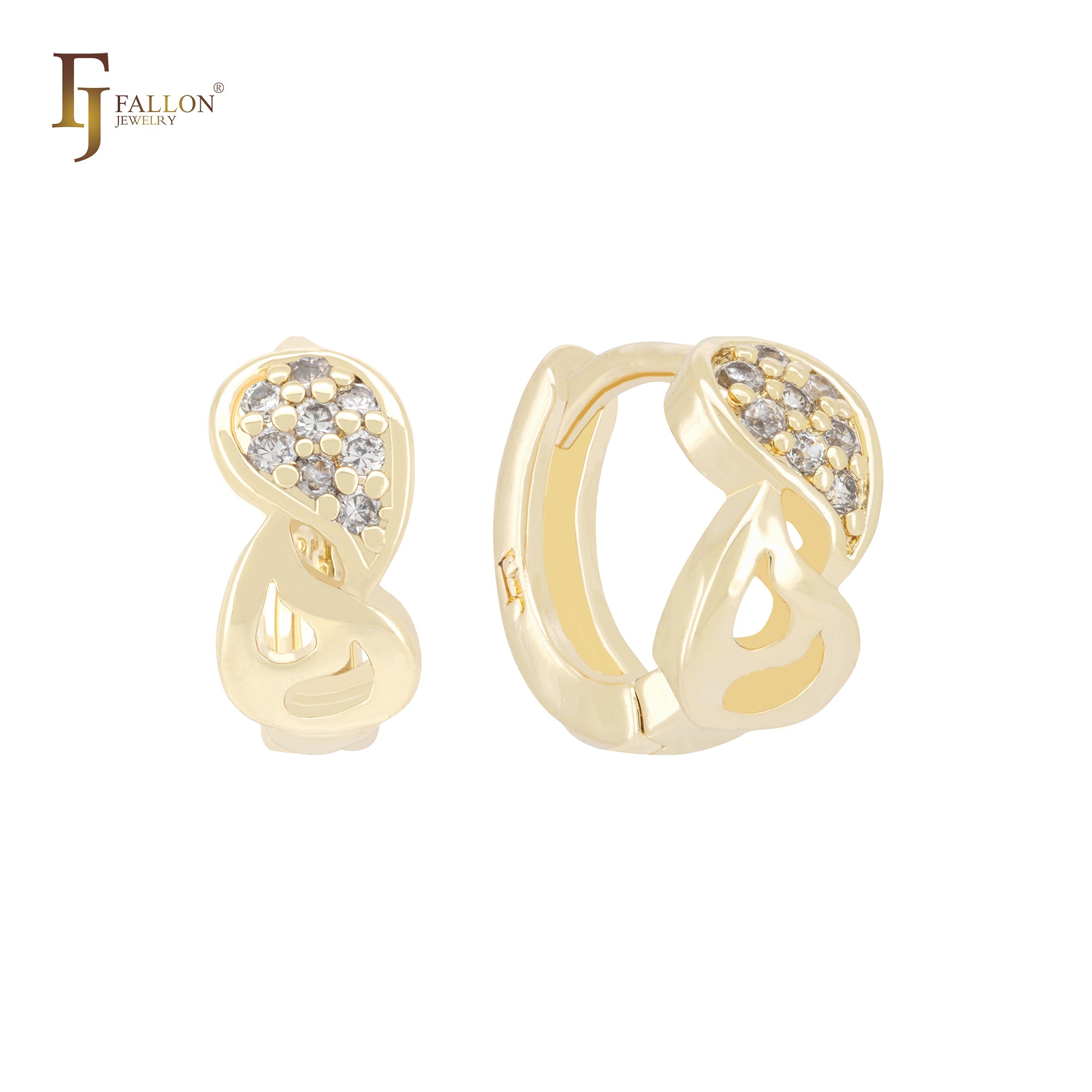 Ribbon buckled up white CZs 14K Gold Huggie Earrings
