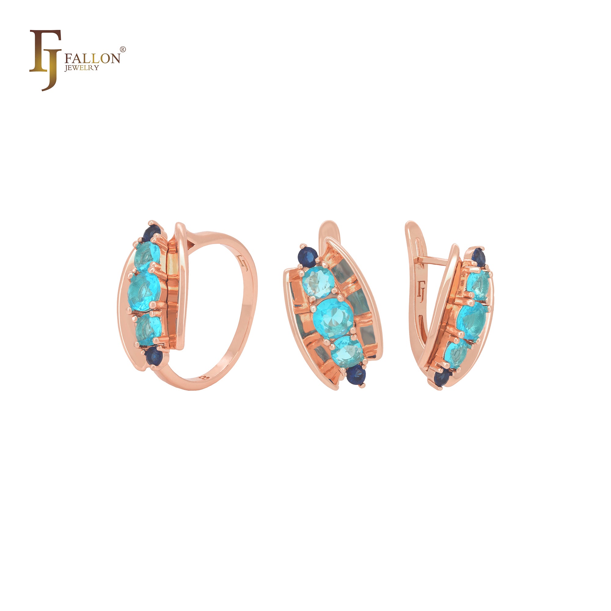 Open shell including five mixed blue CZs Rose Gold Jewelry Set with Rings
