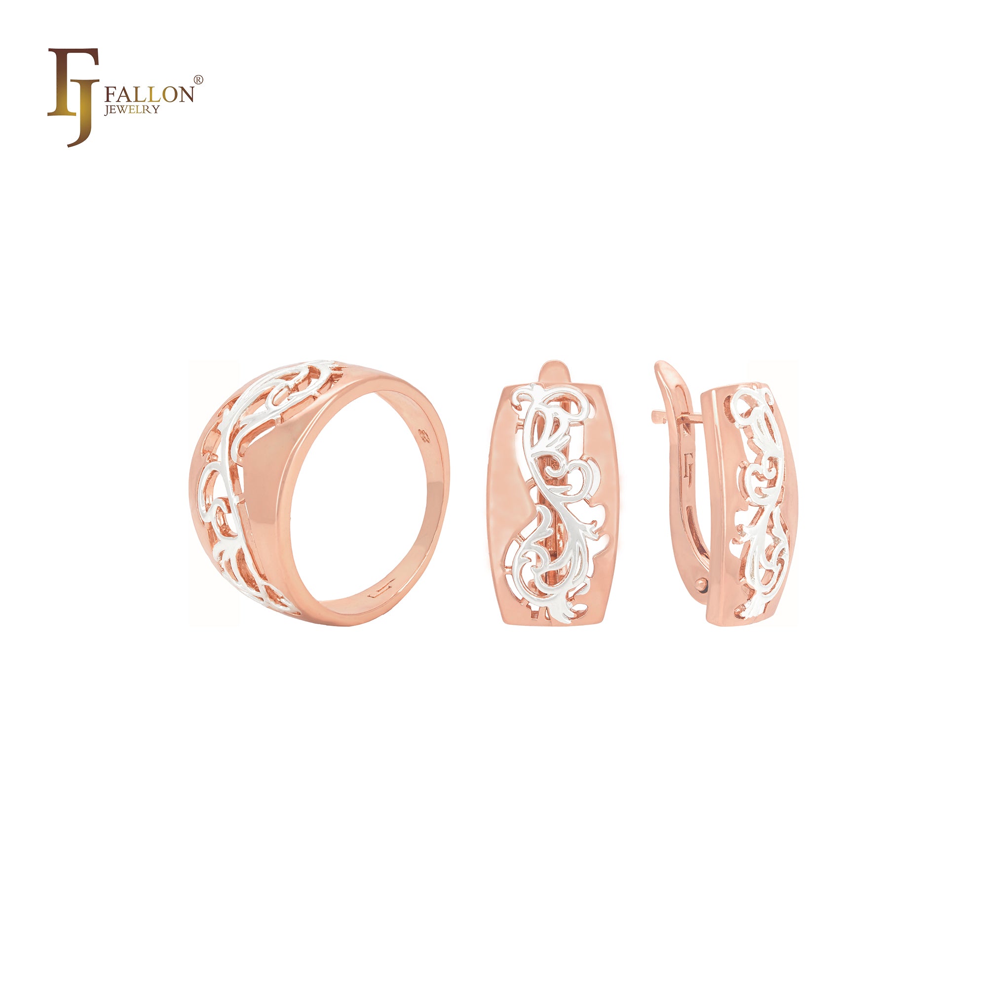 Phoenix feather filigree Rose Gold two tone Jewelry Set with Rings