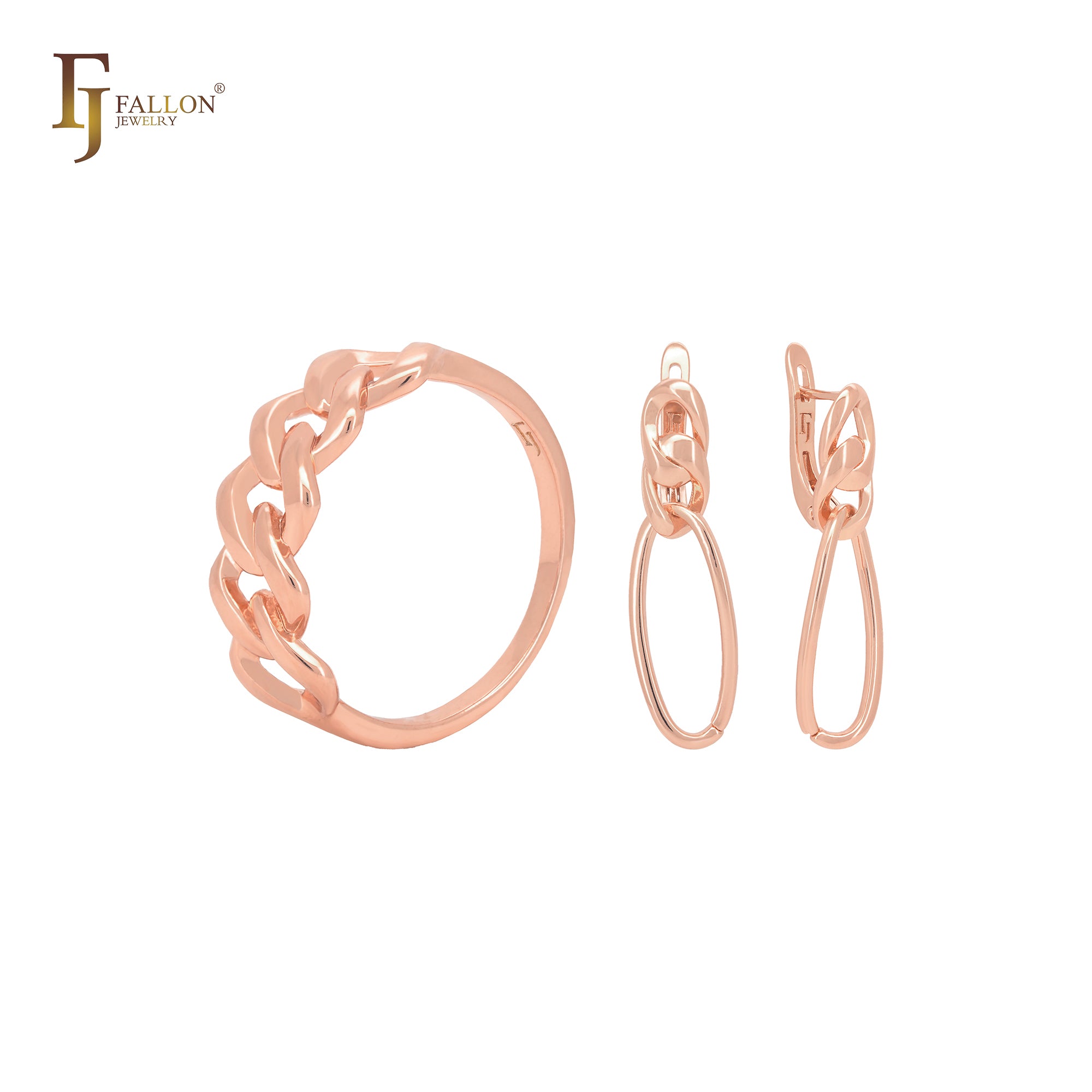 Cuban Chain link design Rose Gold Jewelry Set with Rings