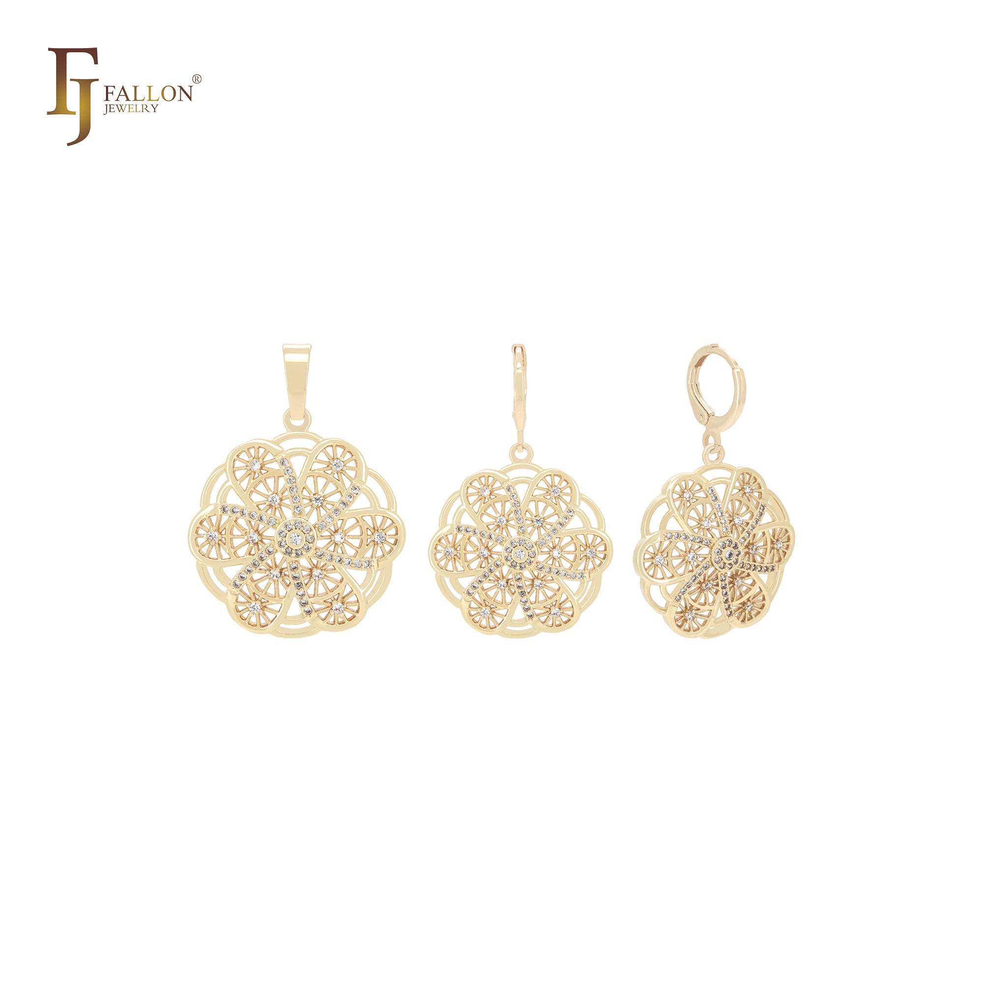 Hexagon wind mill flower shaped 14K Gold Jewelry Set with Pendant