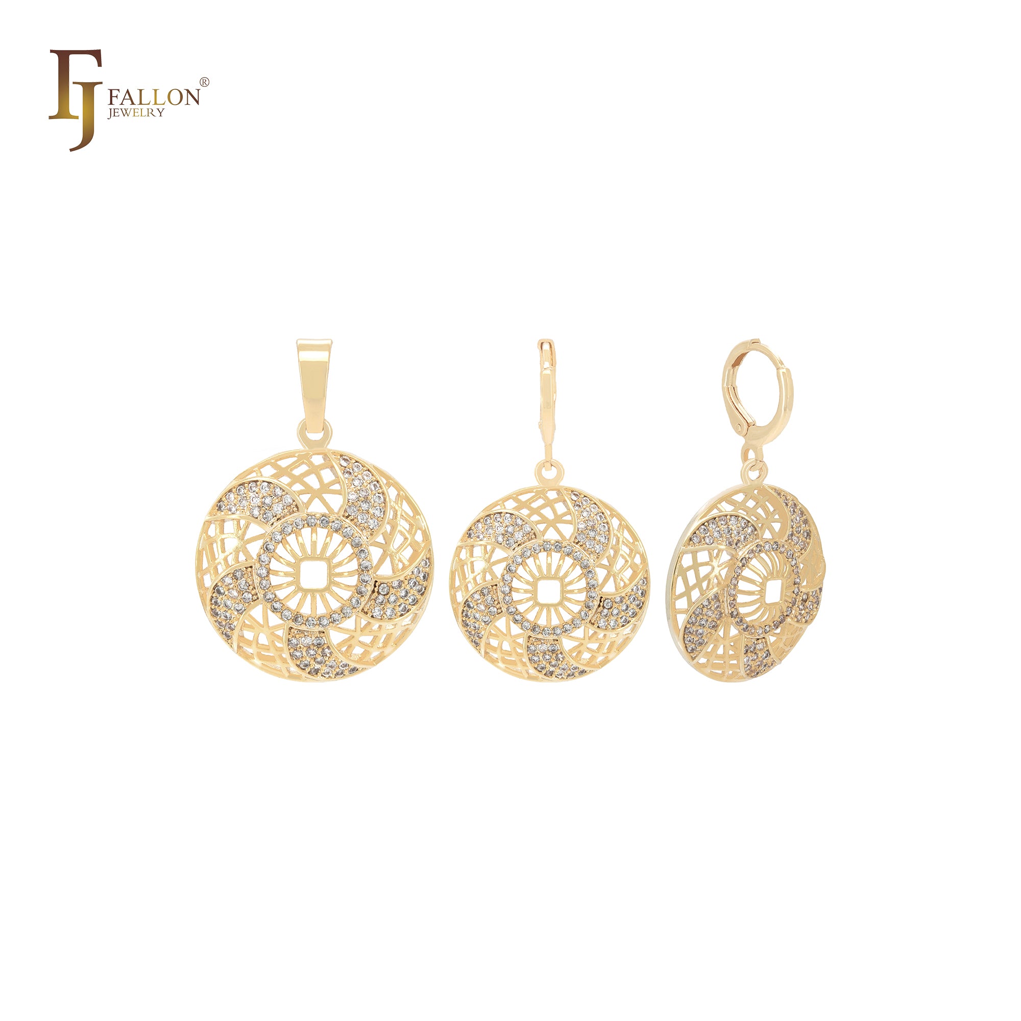 Windy fan filigree rounded circle 14K Gold Jewelry Set with Pendant