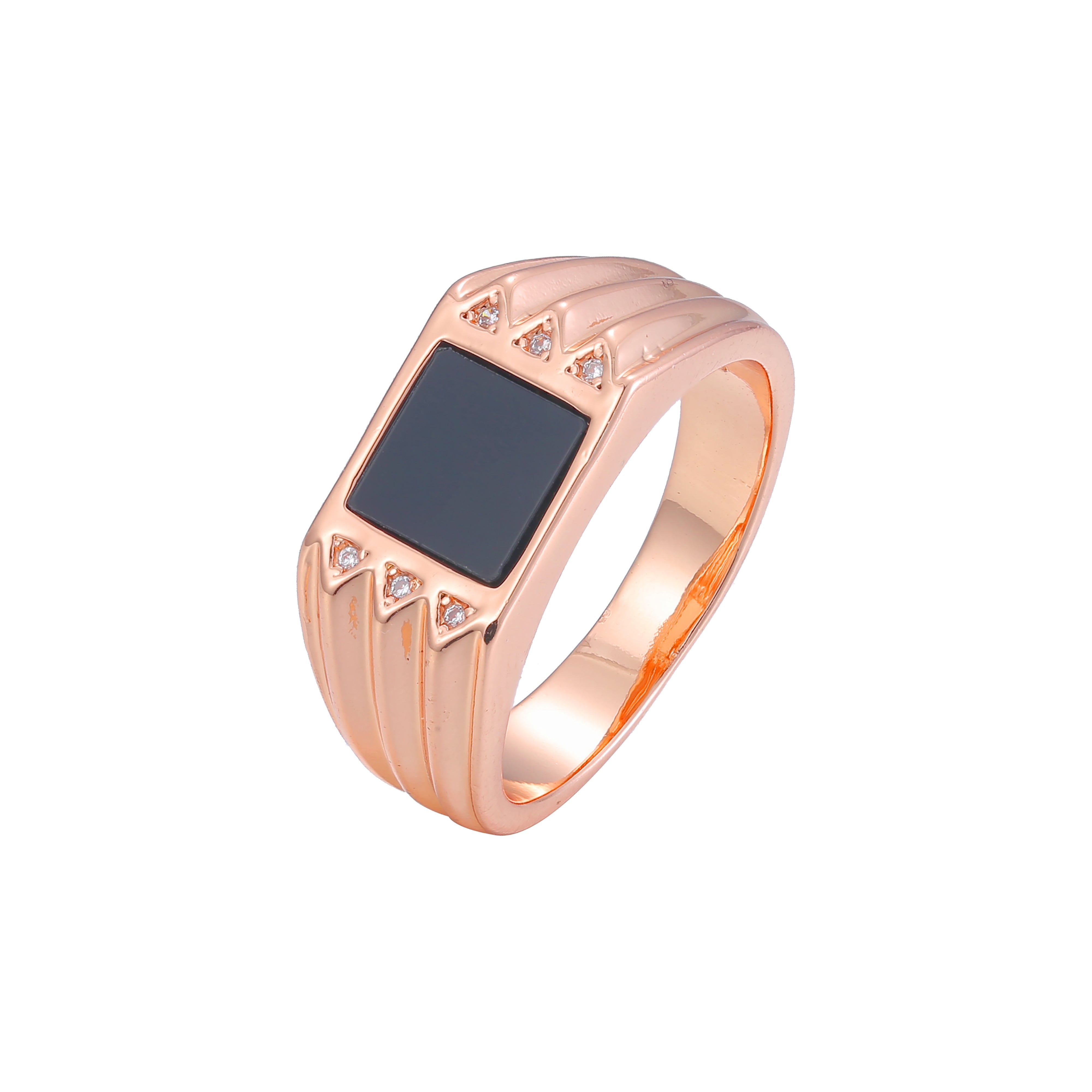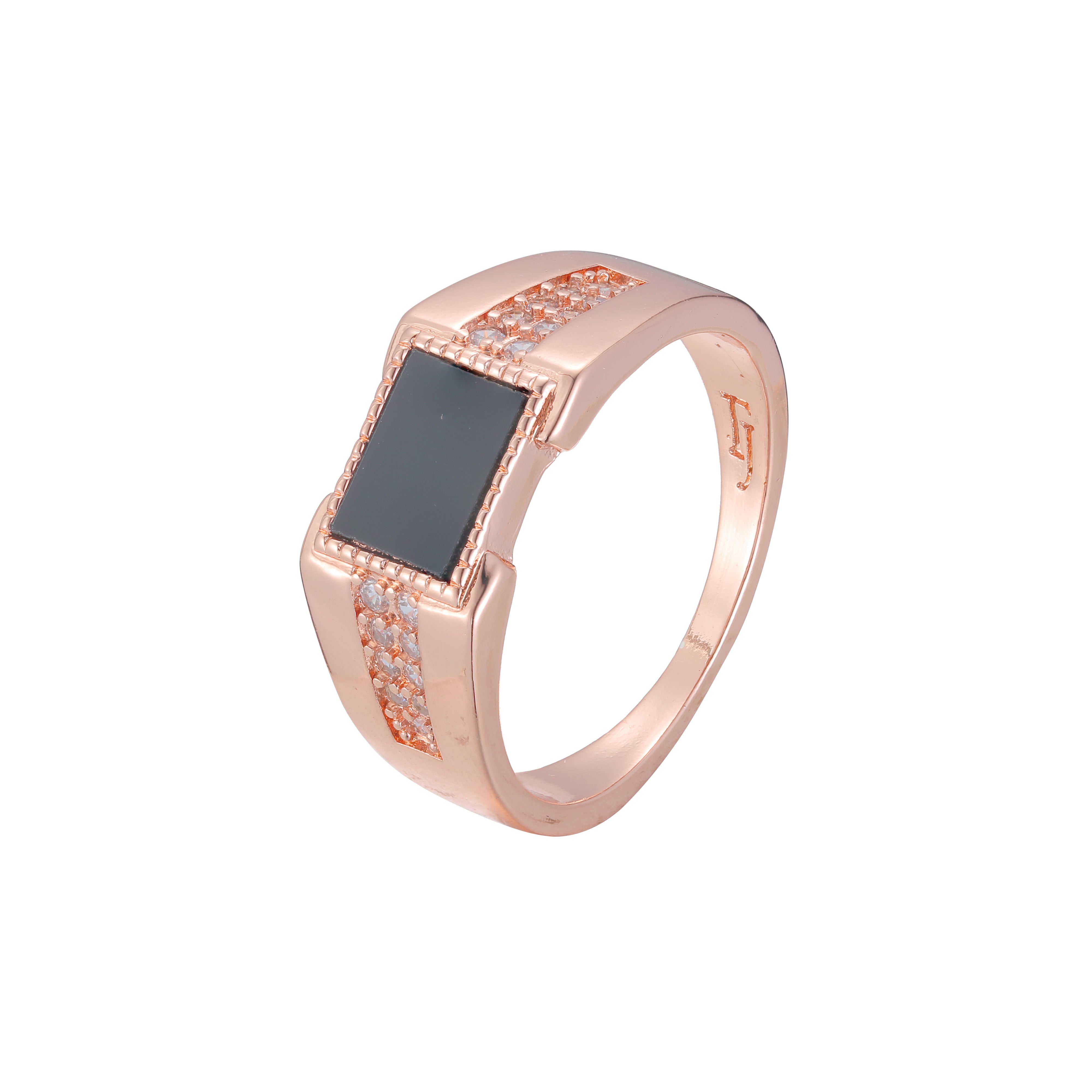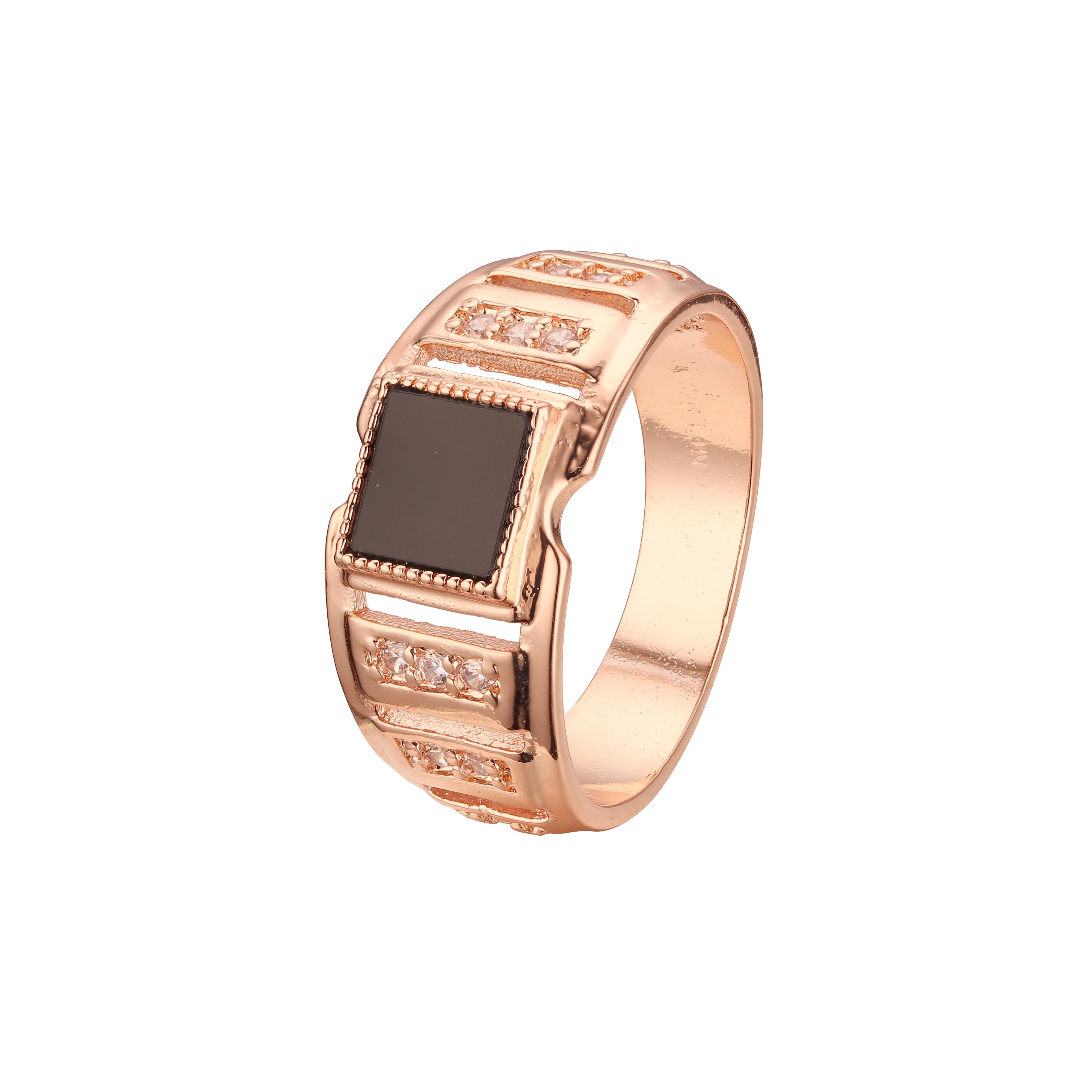 Fashion Men's classic black square oil rings plated in Rose Gold