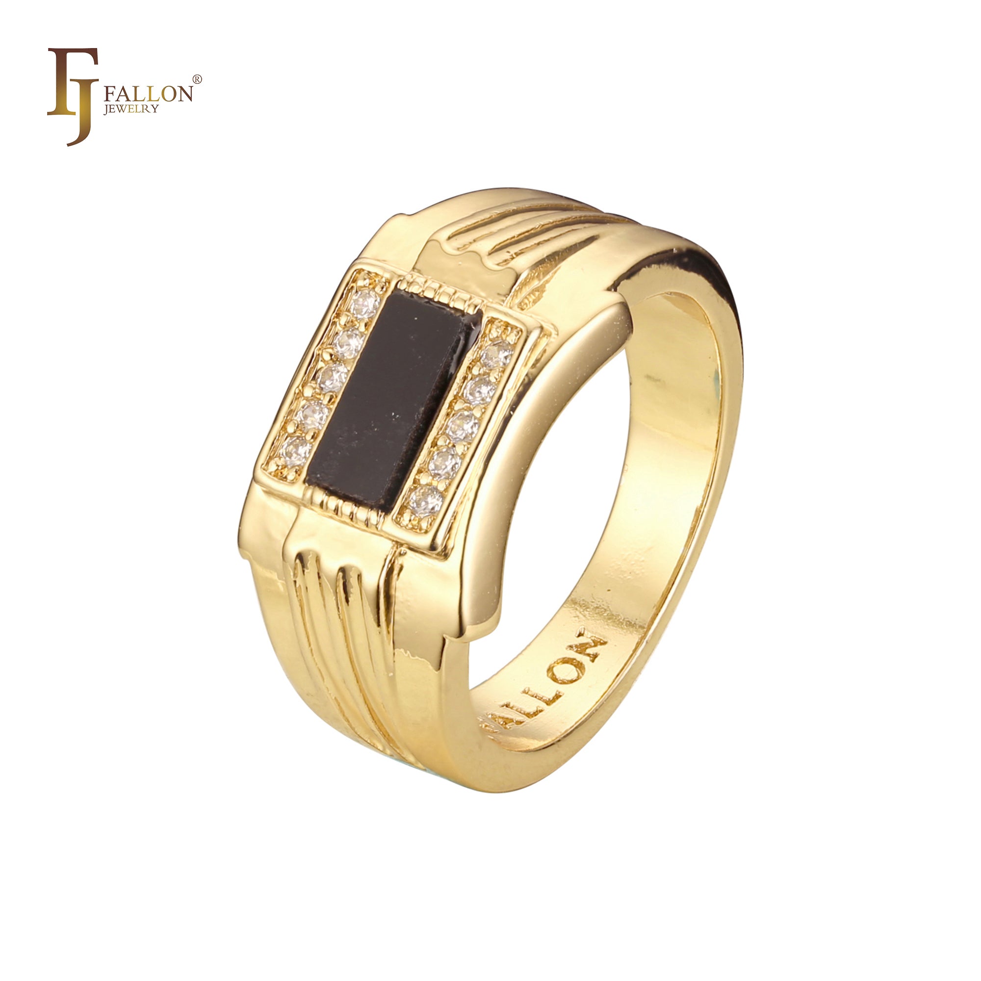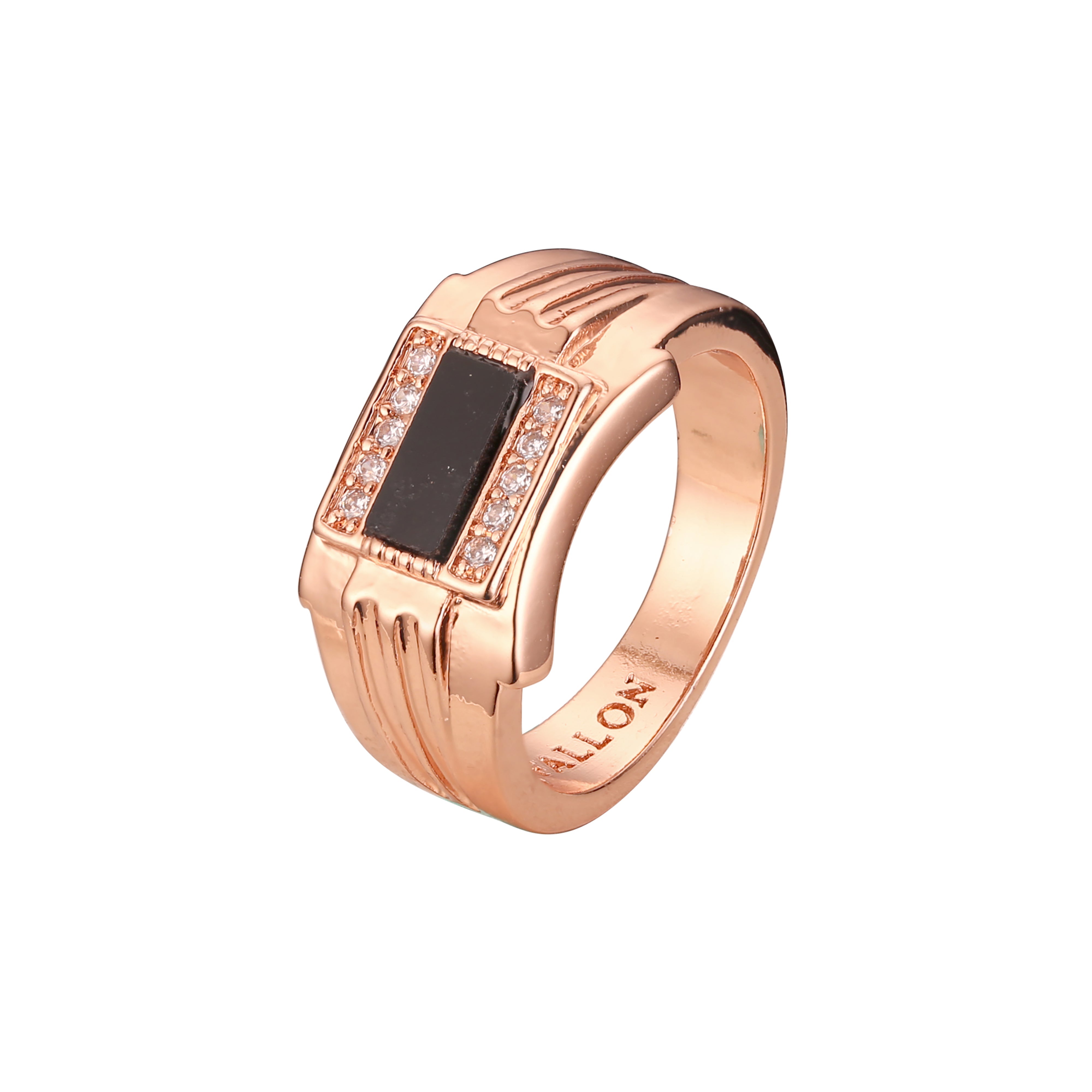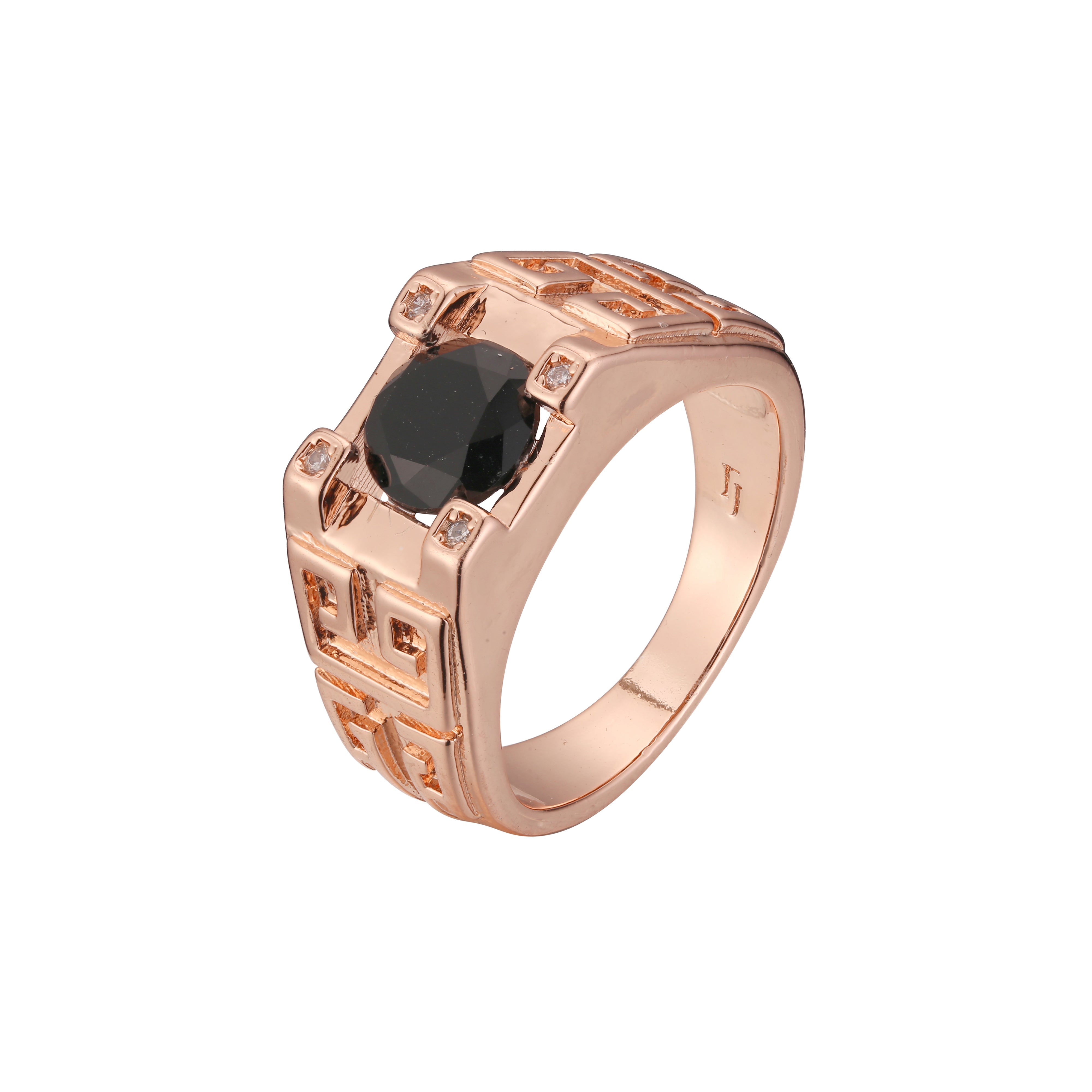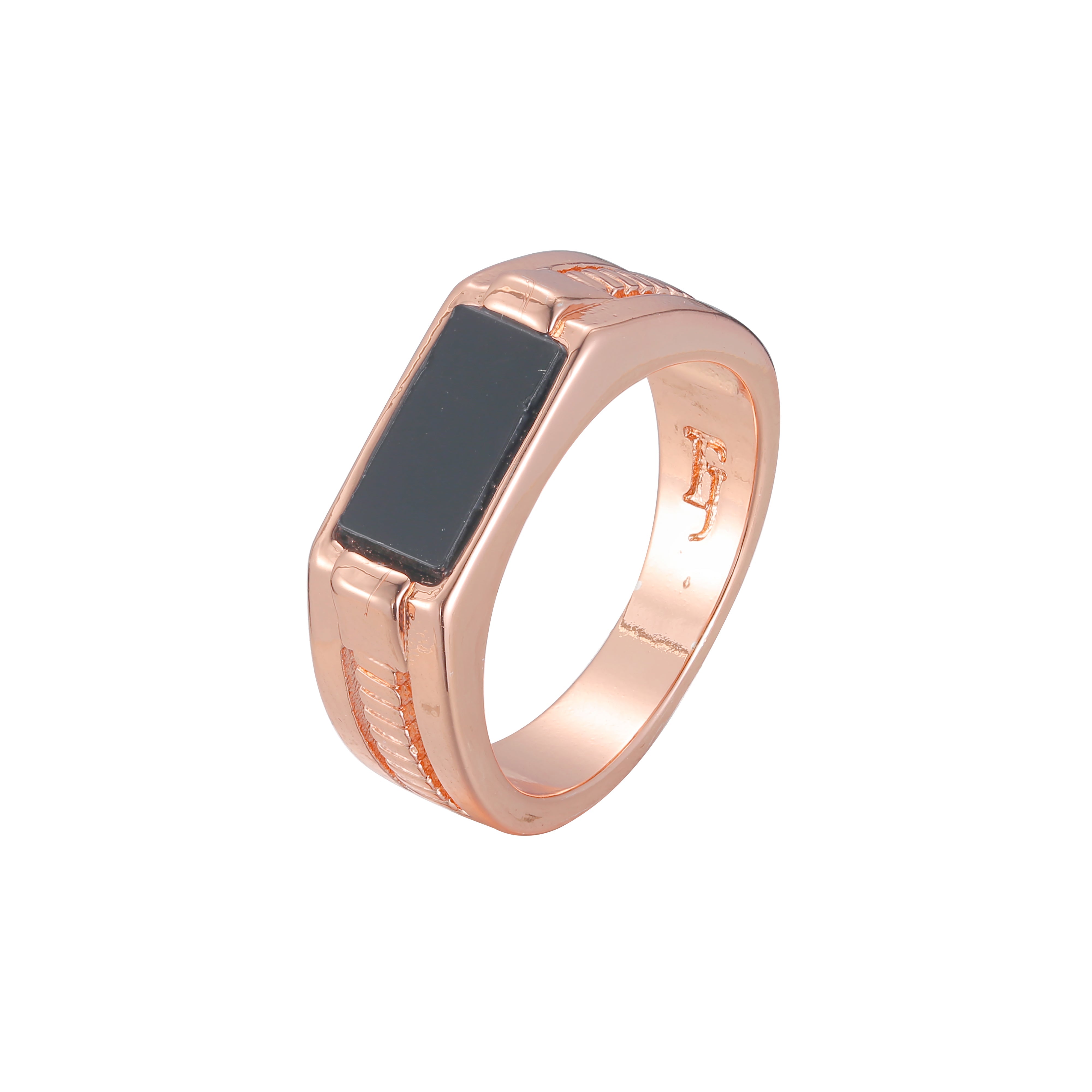 Fashion Men's classic black square oil rings plated in Rose Gold