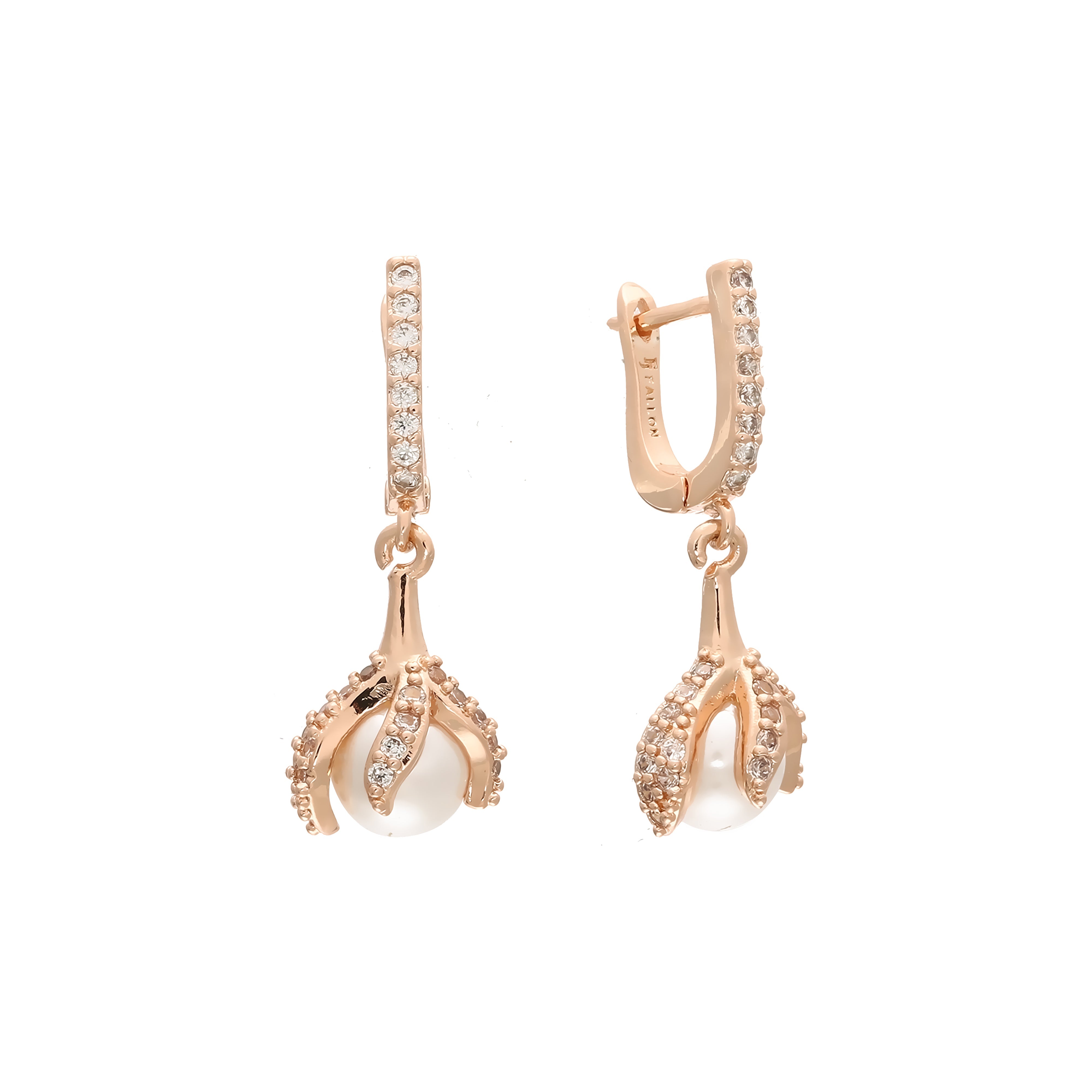 Pearl drop earrings in 14K Gold, Rose Gold plating colors