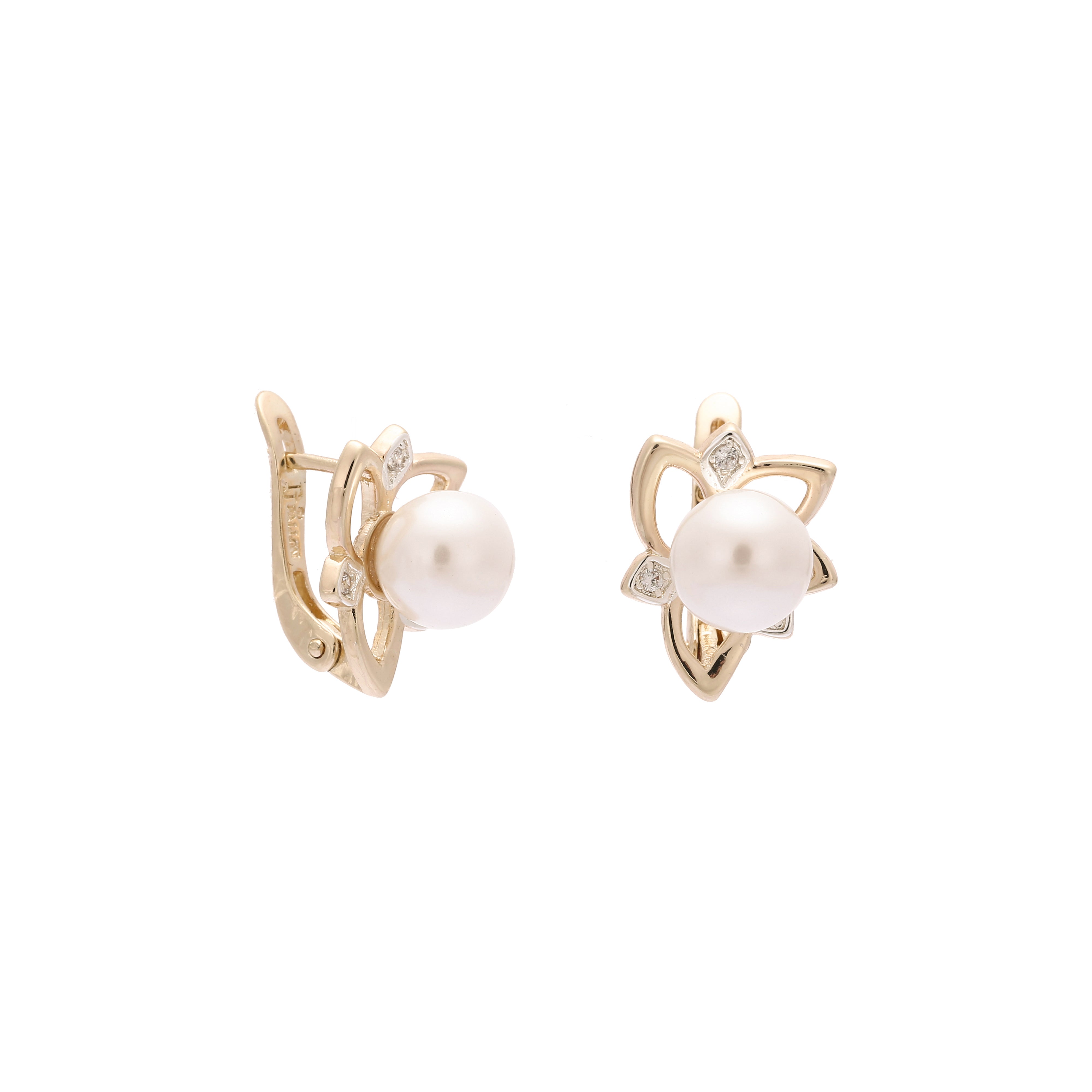 Pearl earrings in 14K Gold, Rose Gold two tone plating colors