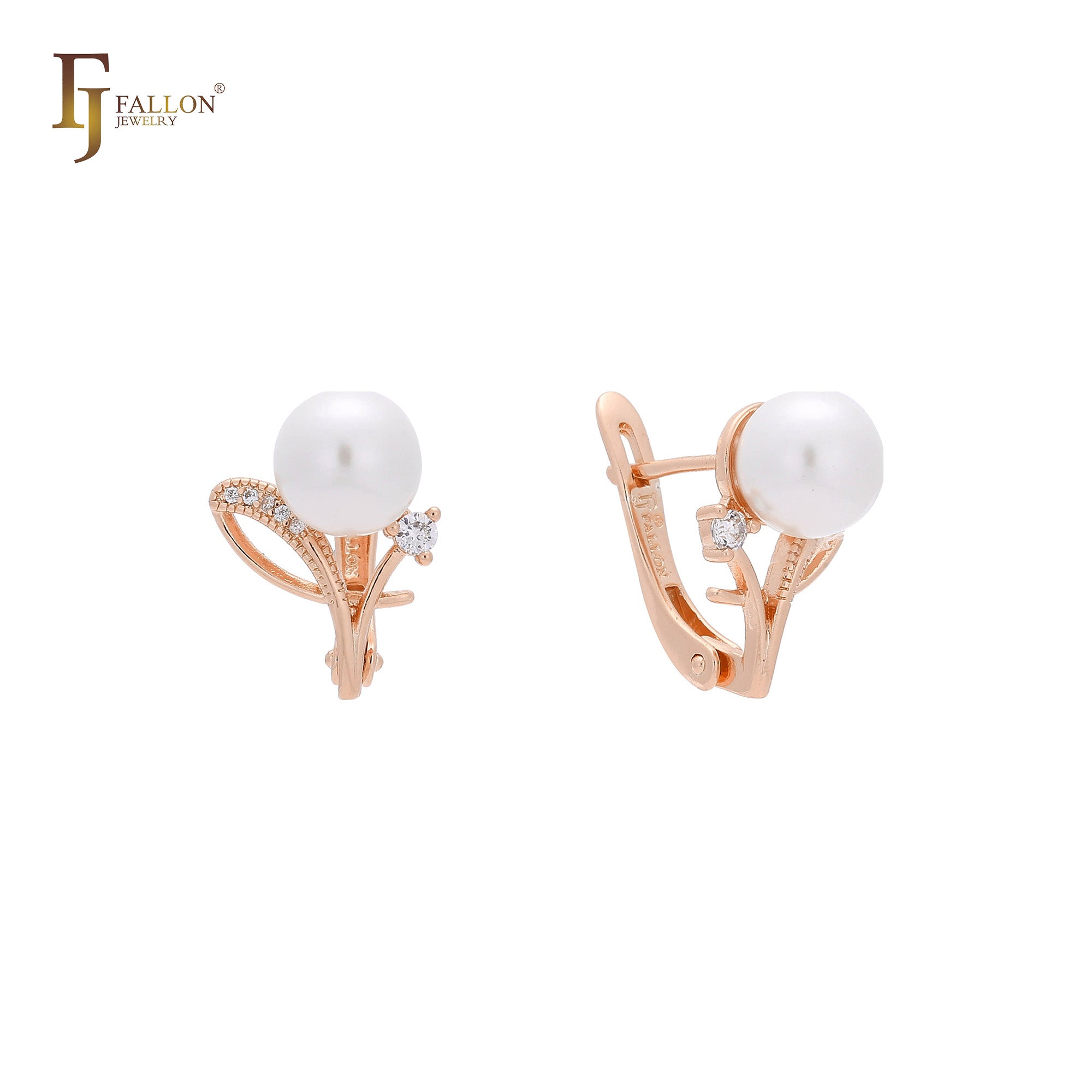 Pearl earrings in 14K Gold, Rose Gold plating colors