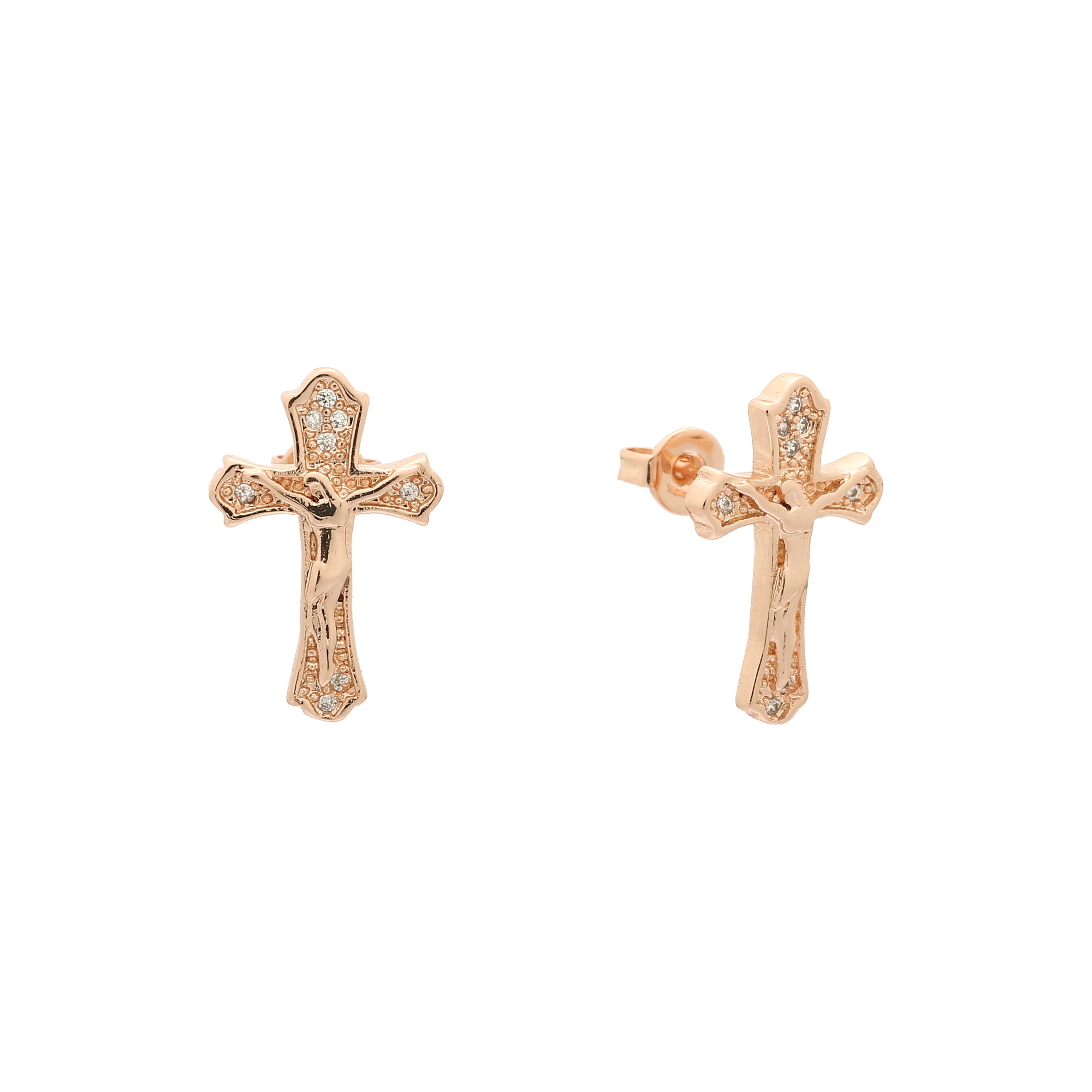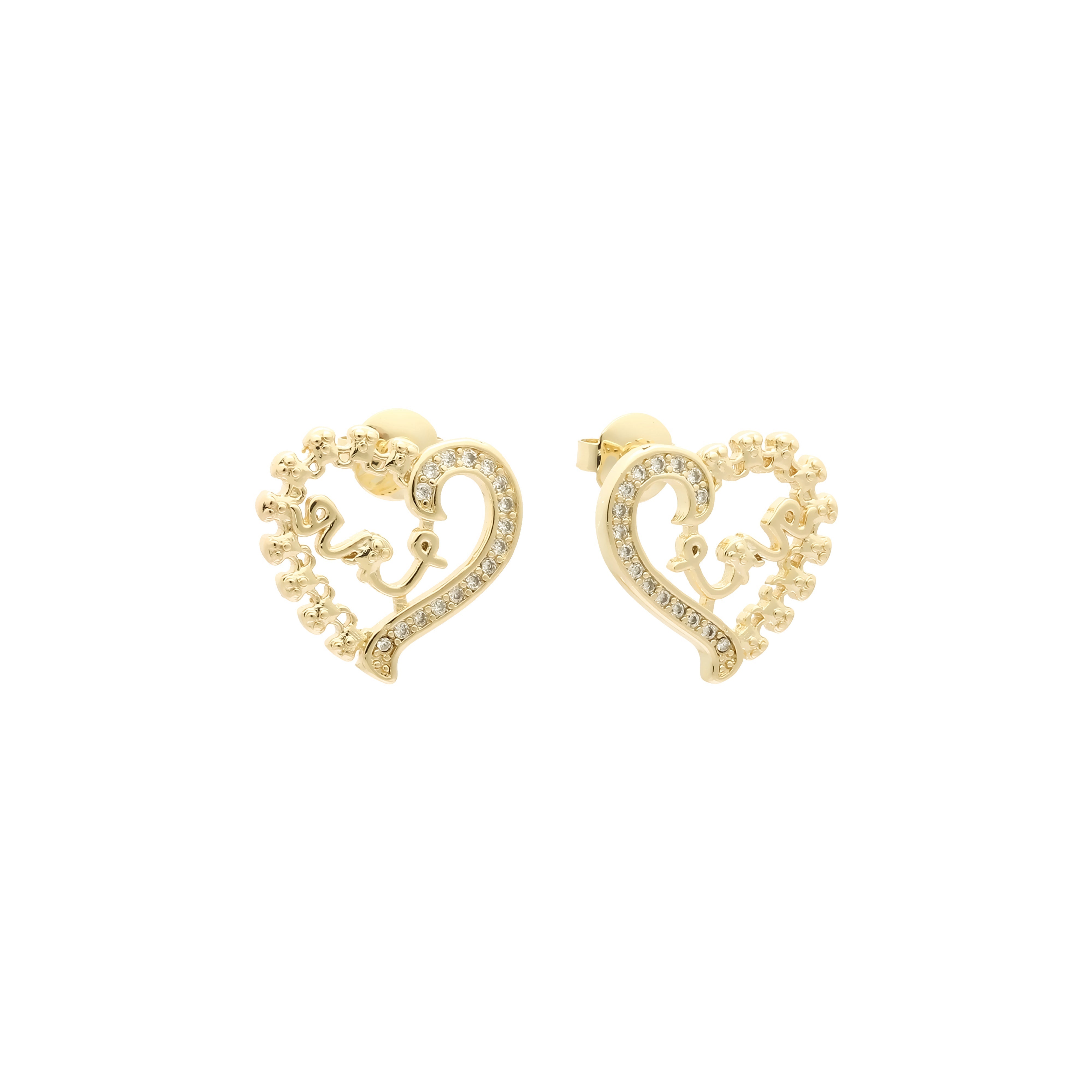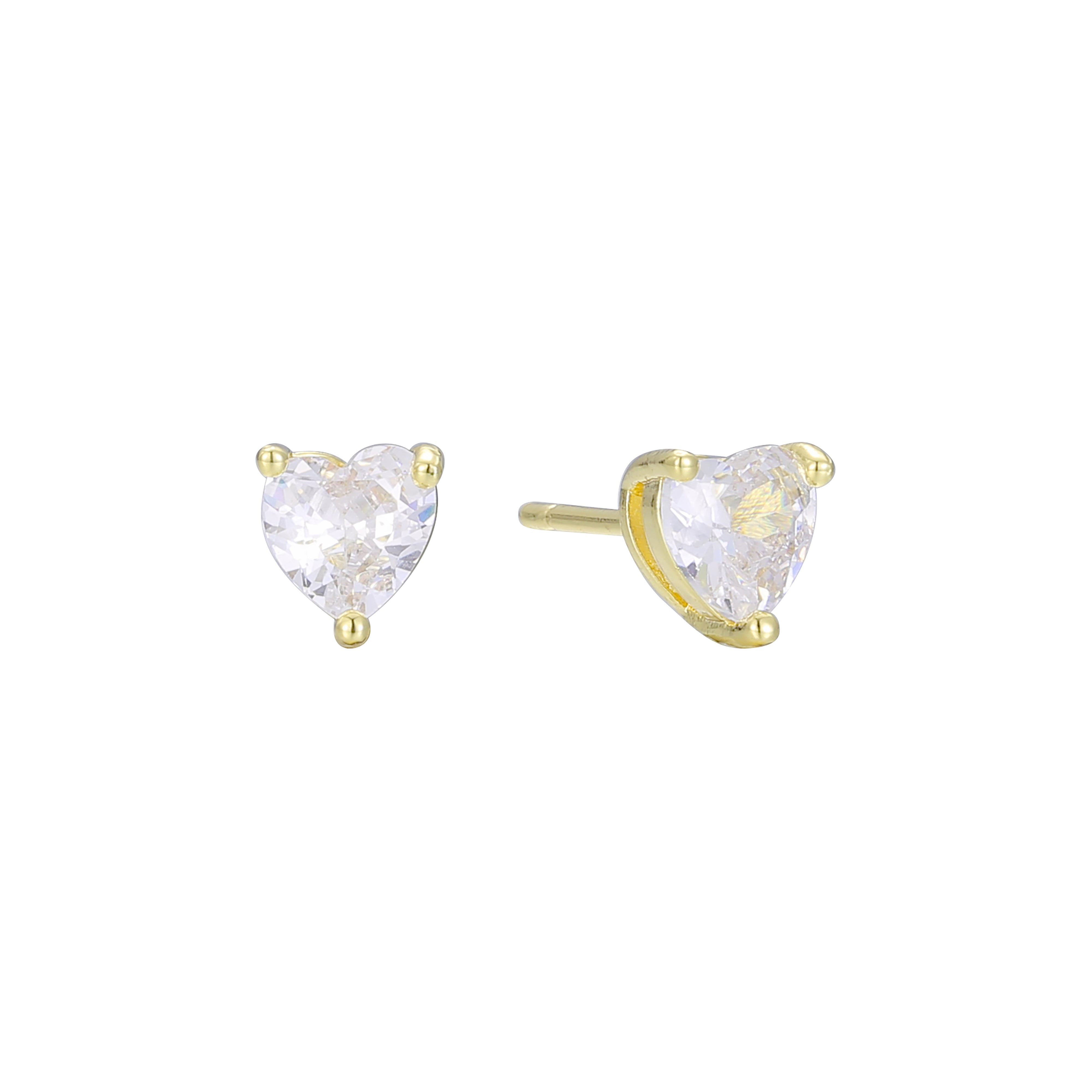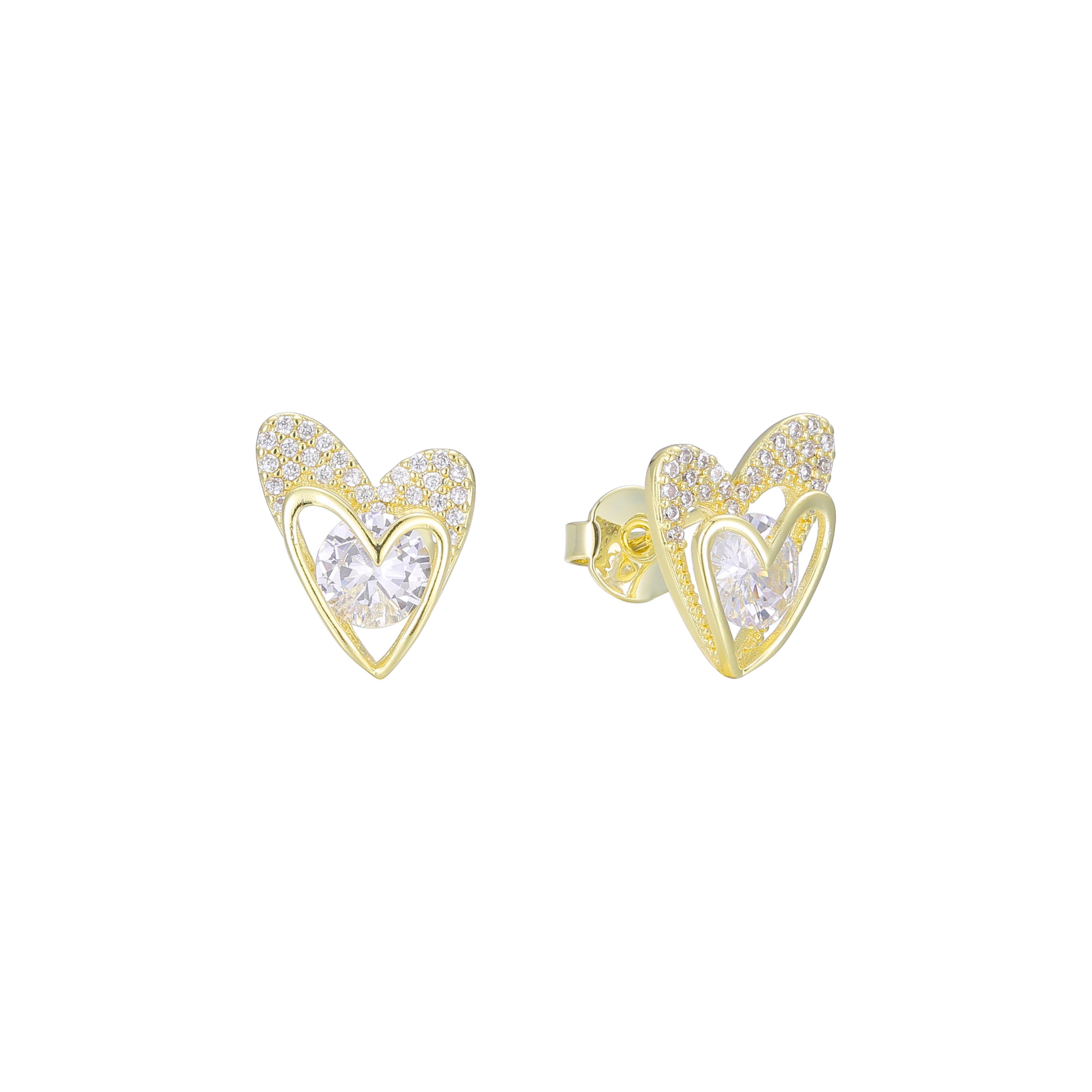 Heart paved white Czs 14K Gold, Rose Gold stud earrings