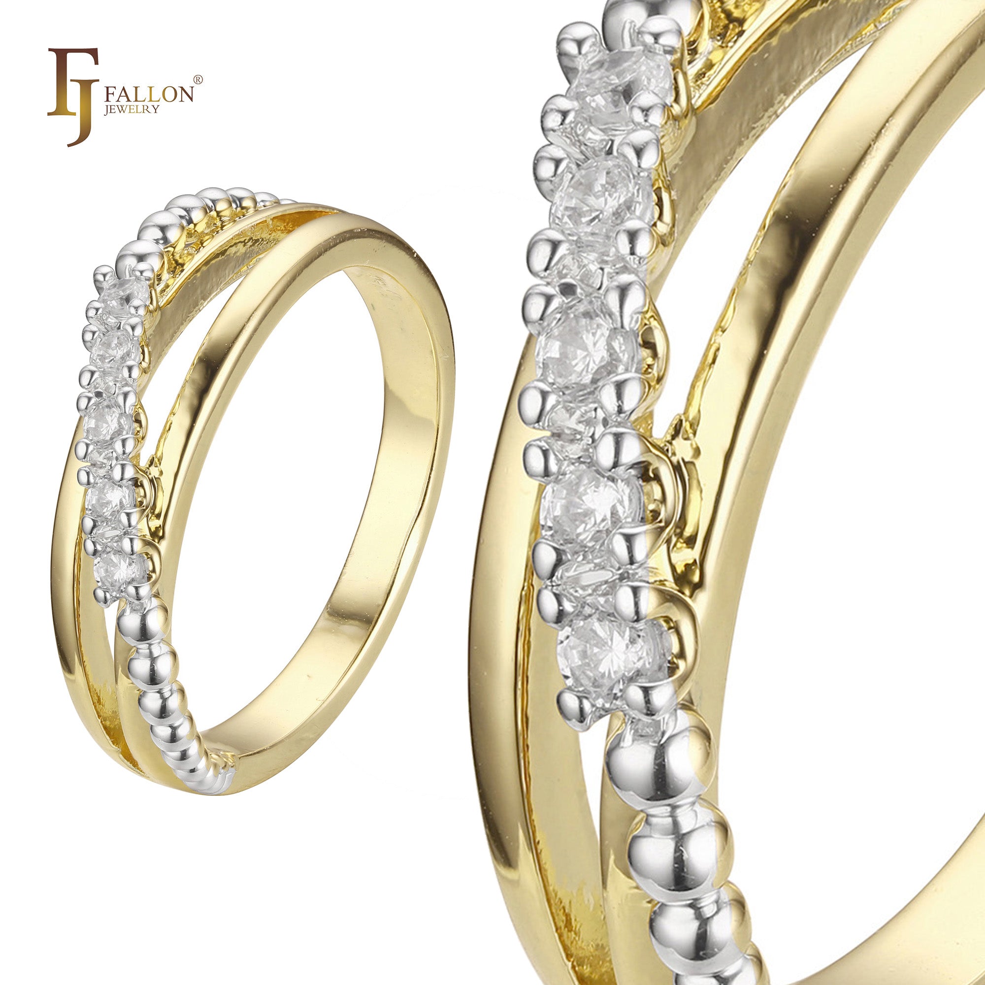 Minimalist Two-Tone Band Ring with Beaded Edge in Rose Gold and Silver Plating – FJ Jewelry