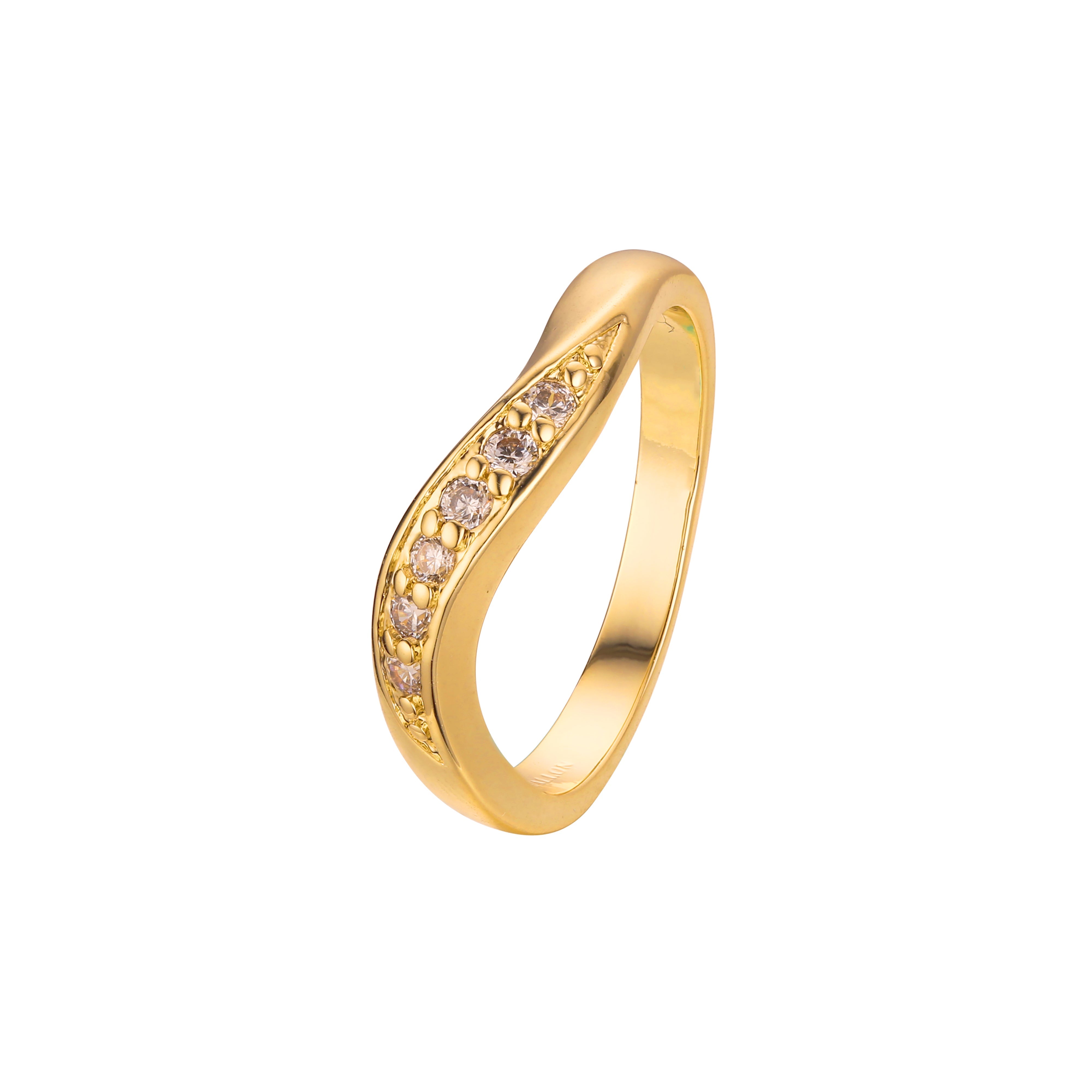 Ribbon band solitaire paved stackable rings plated in 14K Gold