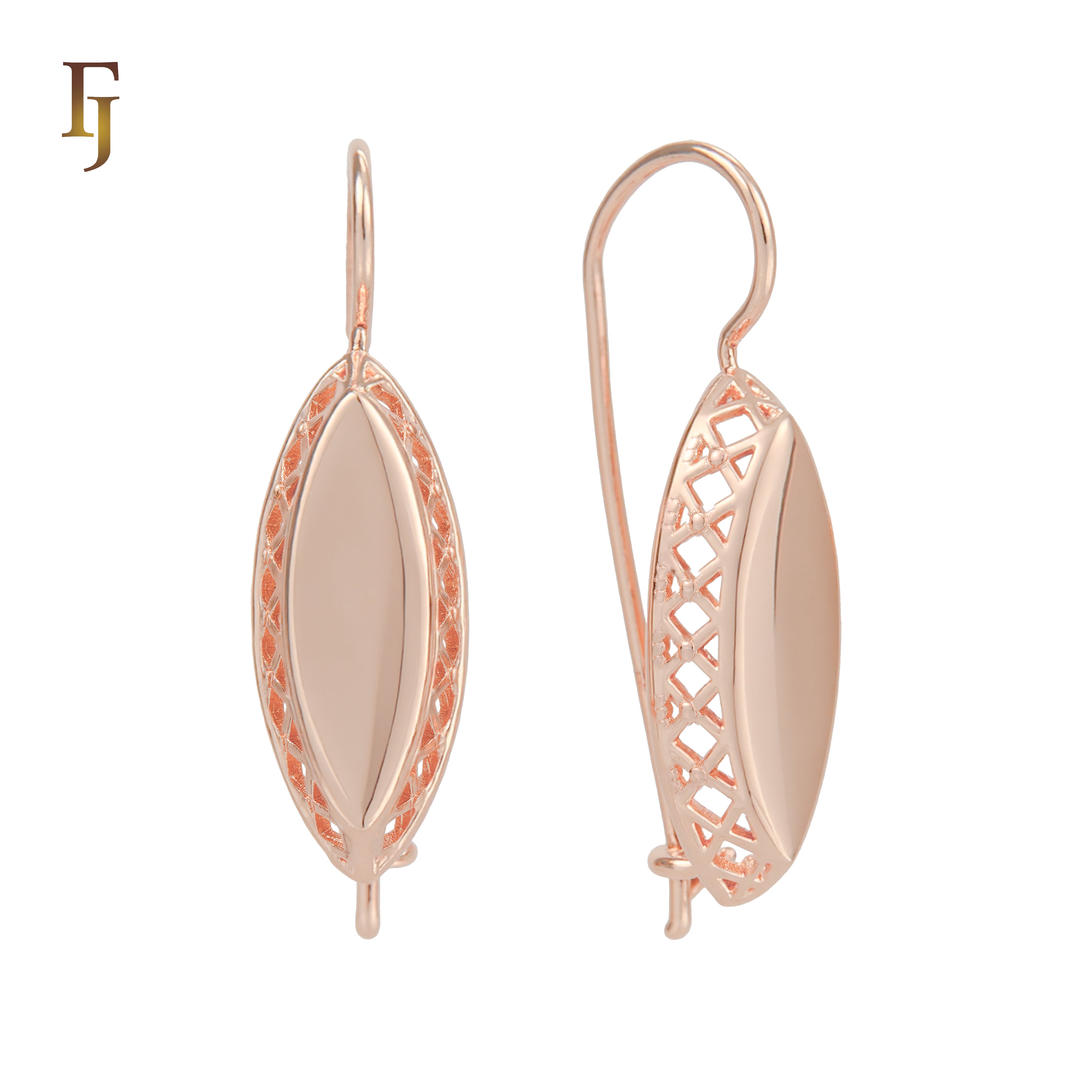 Oval wavy filigree 14K Gold, Rose Gold Wire hook earrings