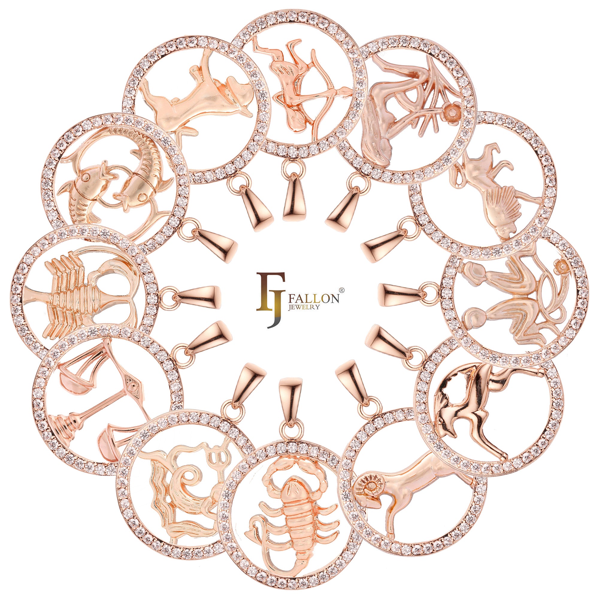 Zodiac pendant of Pisces in Rose Gold two tone, 14K Gold plating colors