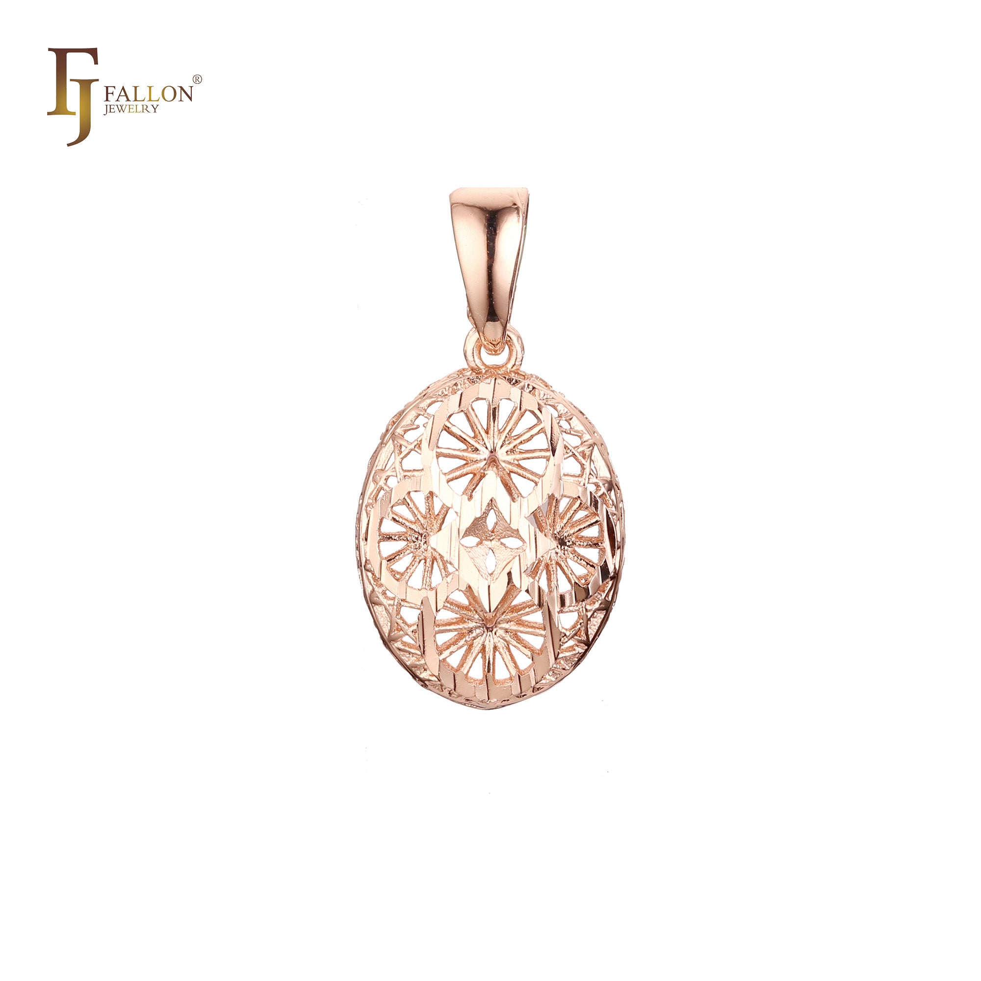 🔥 Rose Gold oval radiant filigree pendant in Rose Gold two tone, 14K Gold plating colors