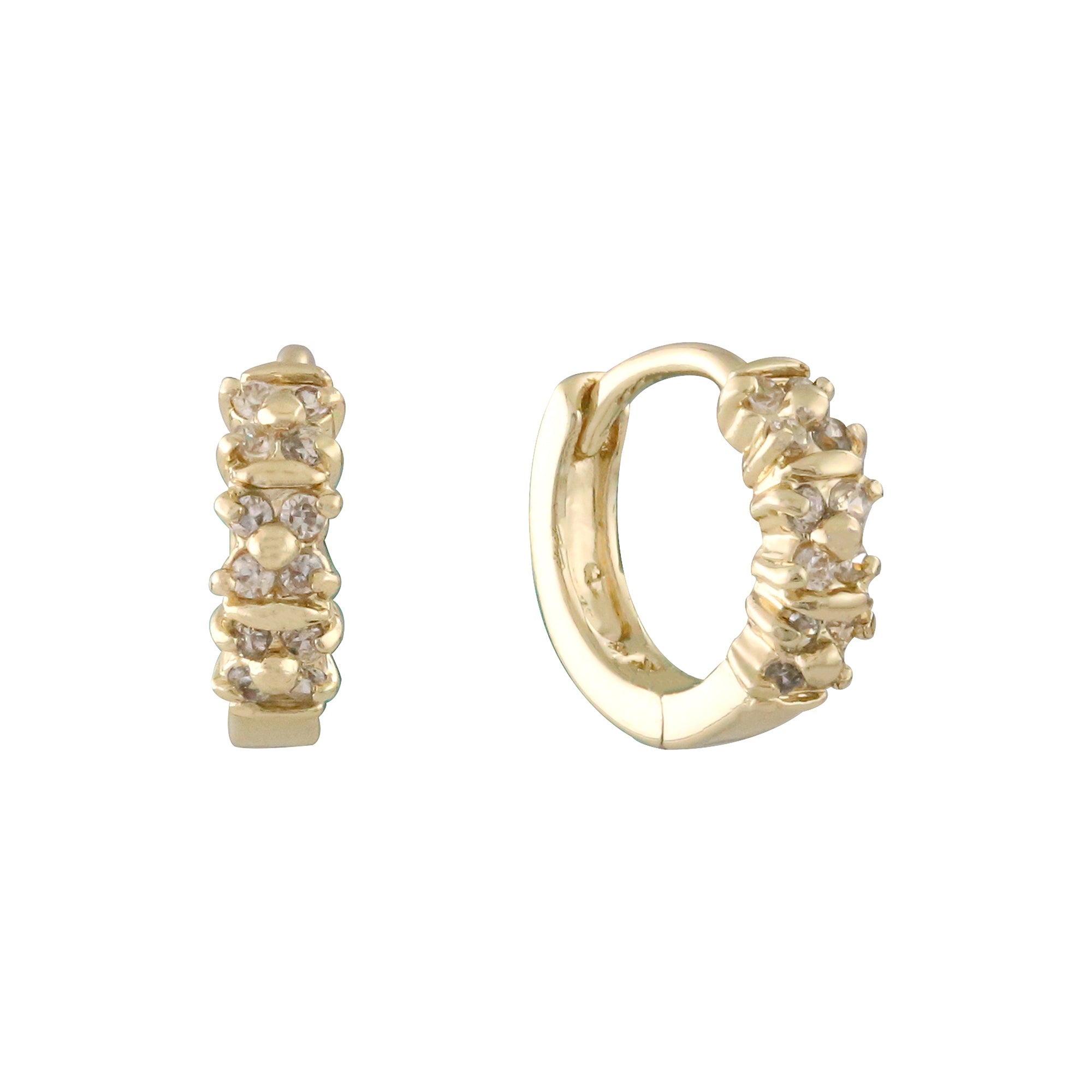Heart shape white CZs 14K Gold Huggie Earrings