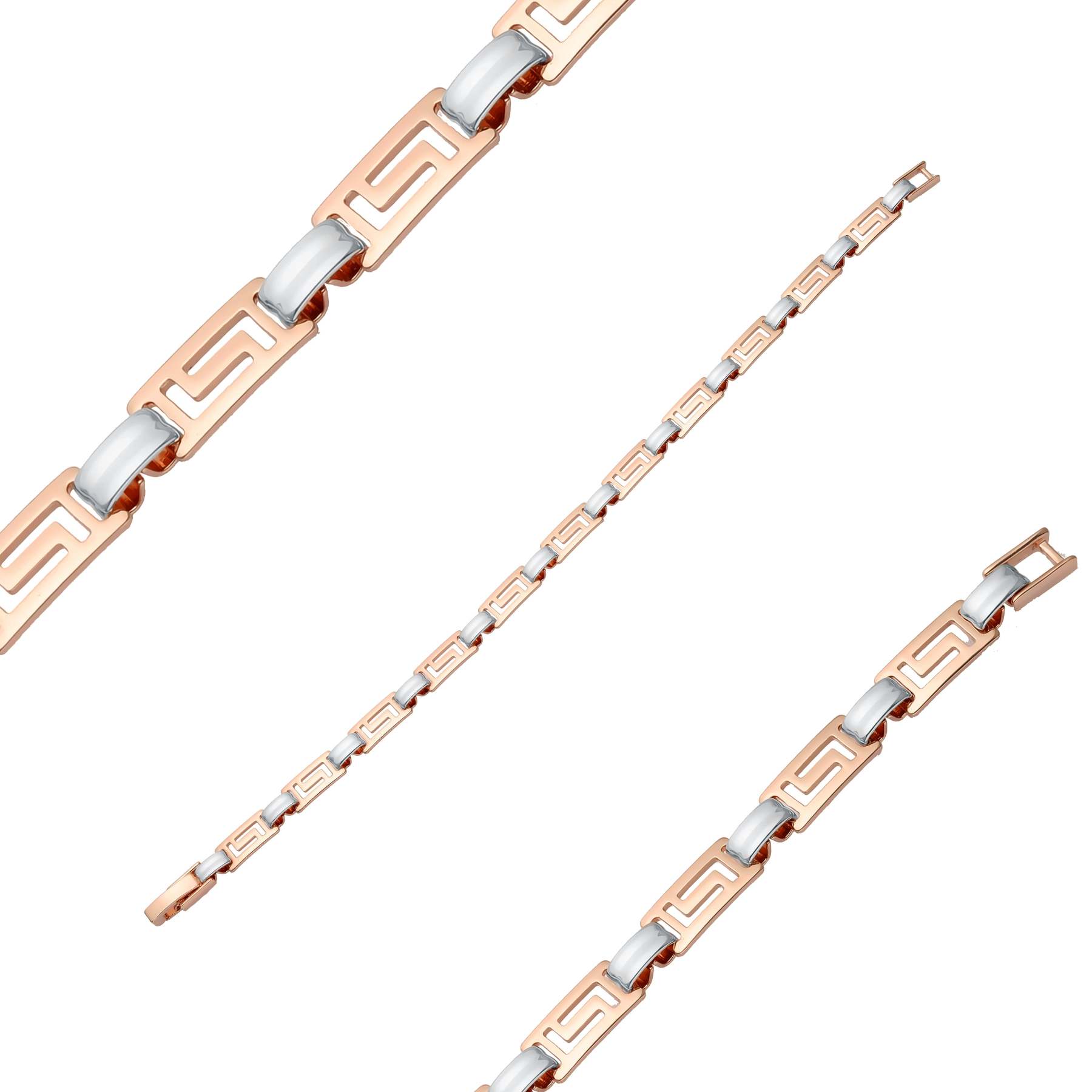 Fancy link bracelets plated in 14K Gold, Rose Gold two tone colors