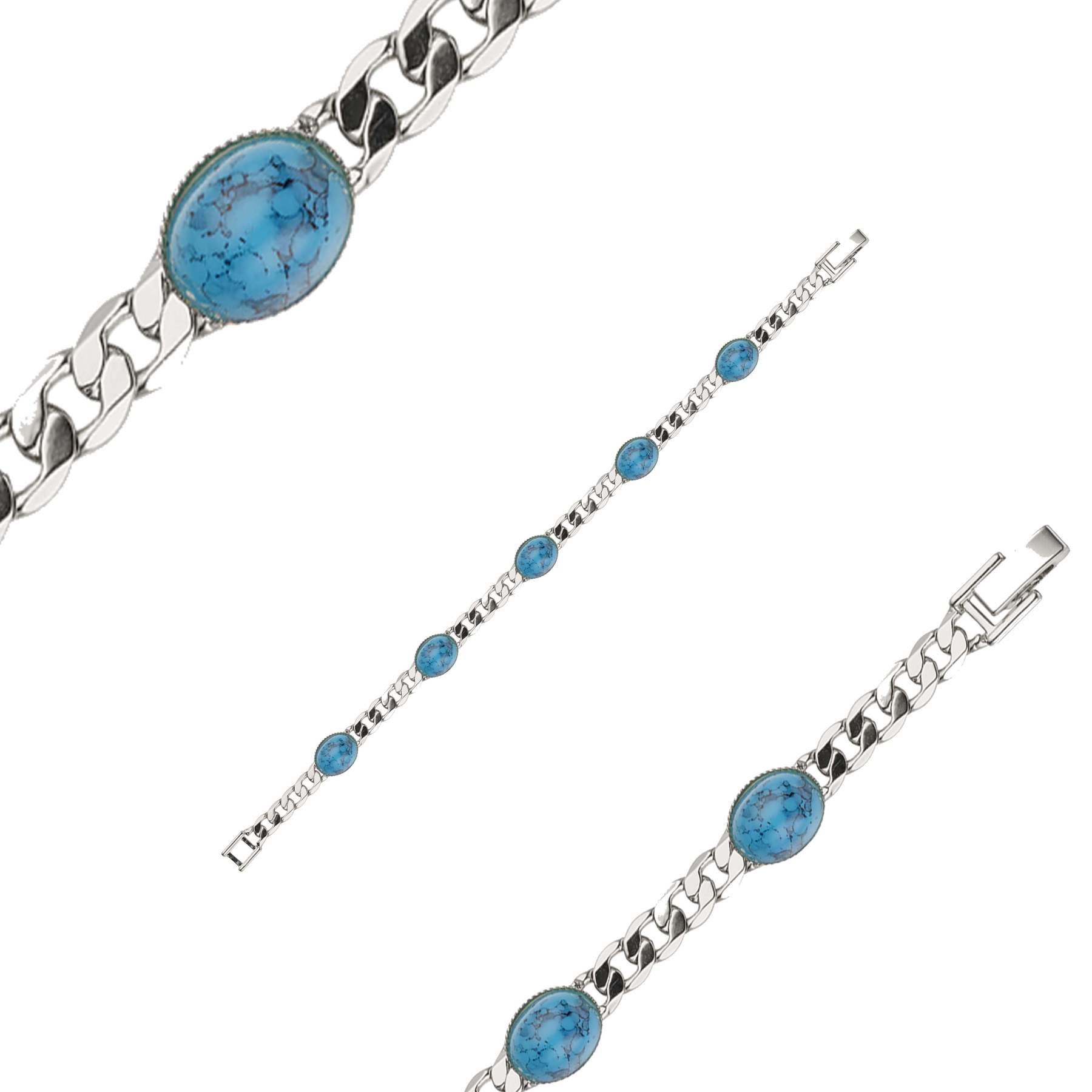 Cuban link turquoise bracelets plated in 14K Gold, 18K Gold colors