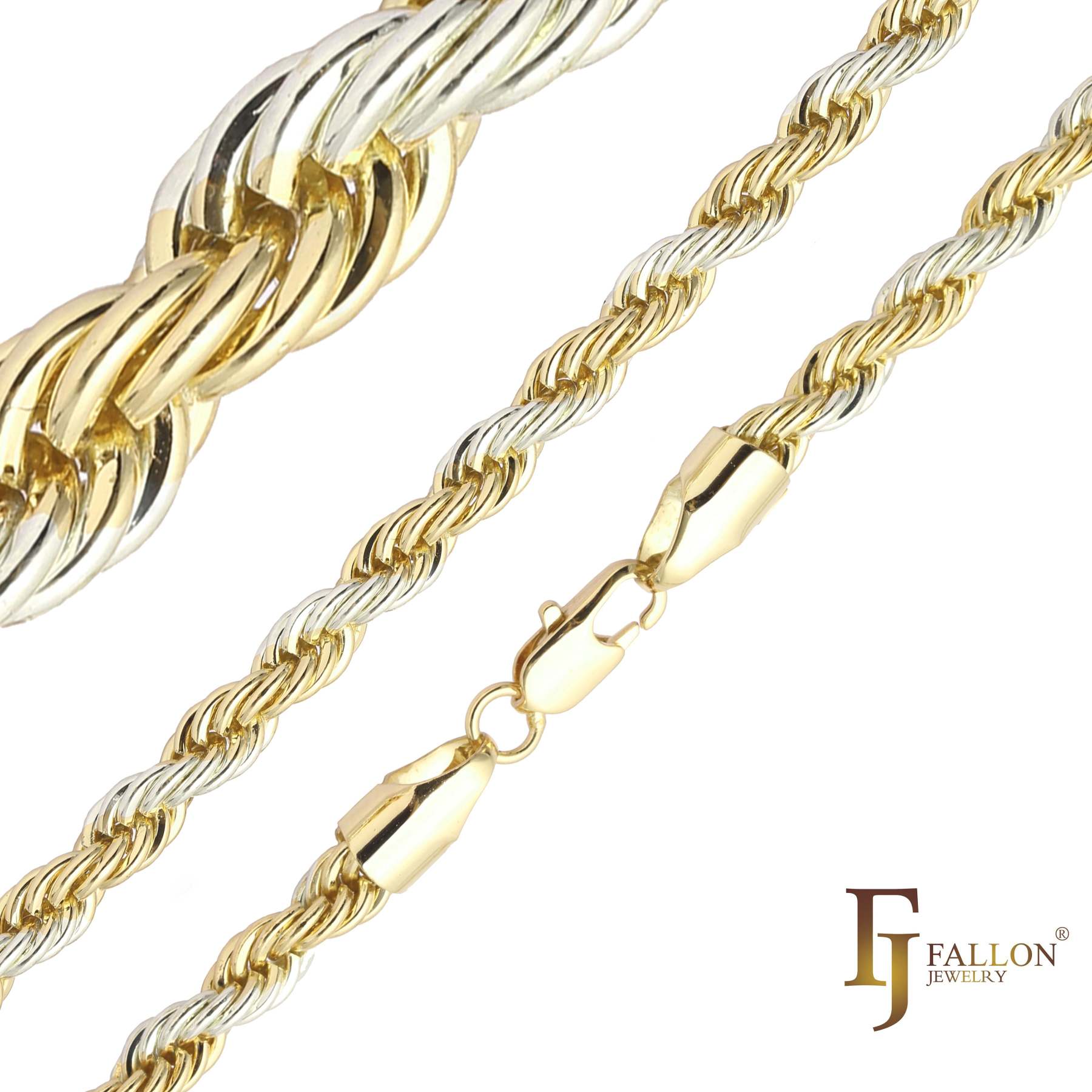 Classic French Rope chains plated in 18K Gold, 14K Gold, two tone, White Gold