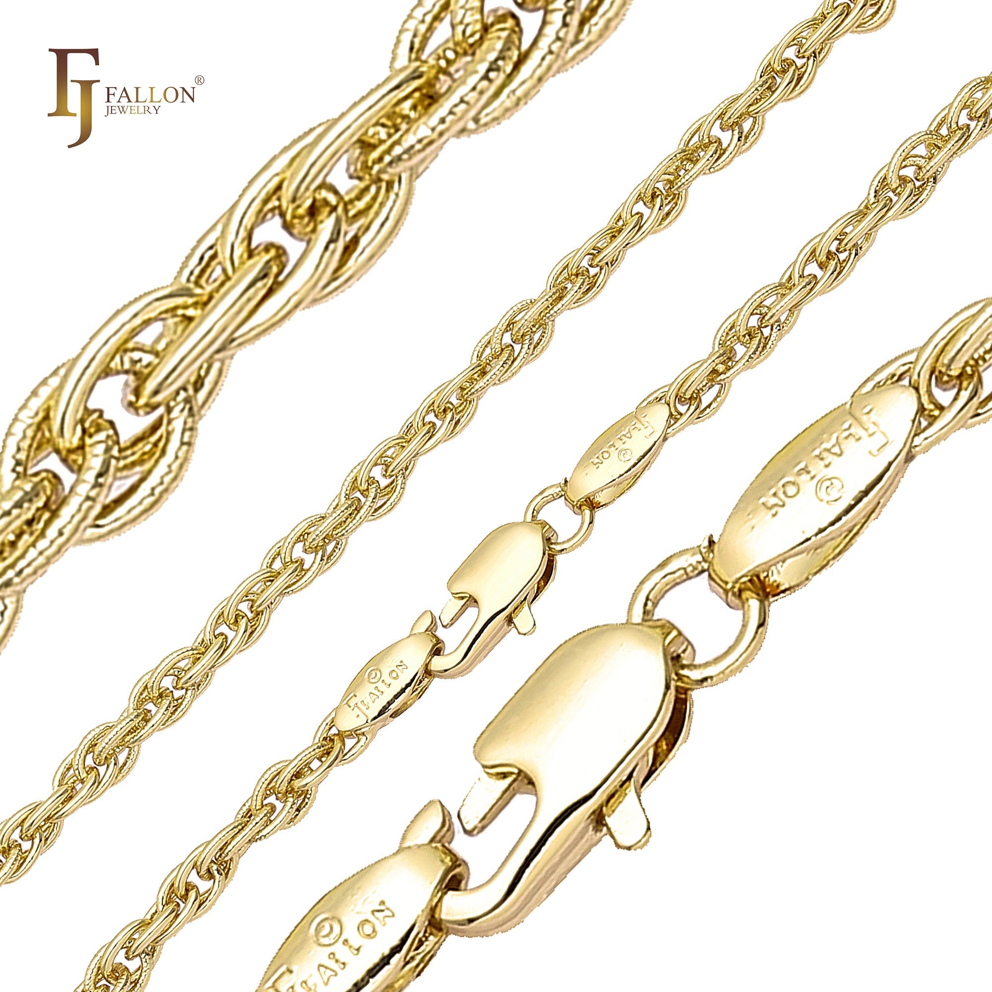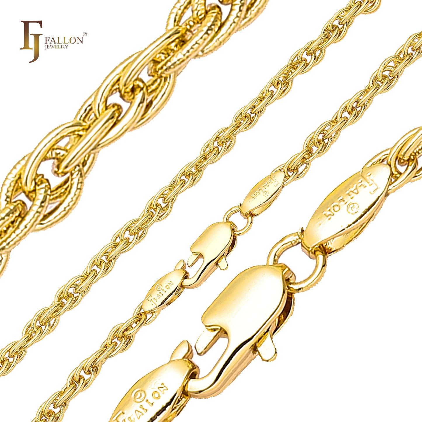 Rope link hammered chains plated in 14K Gold, Rose Gold