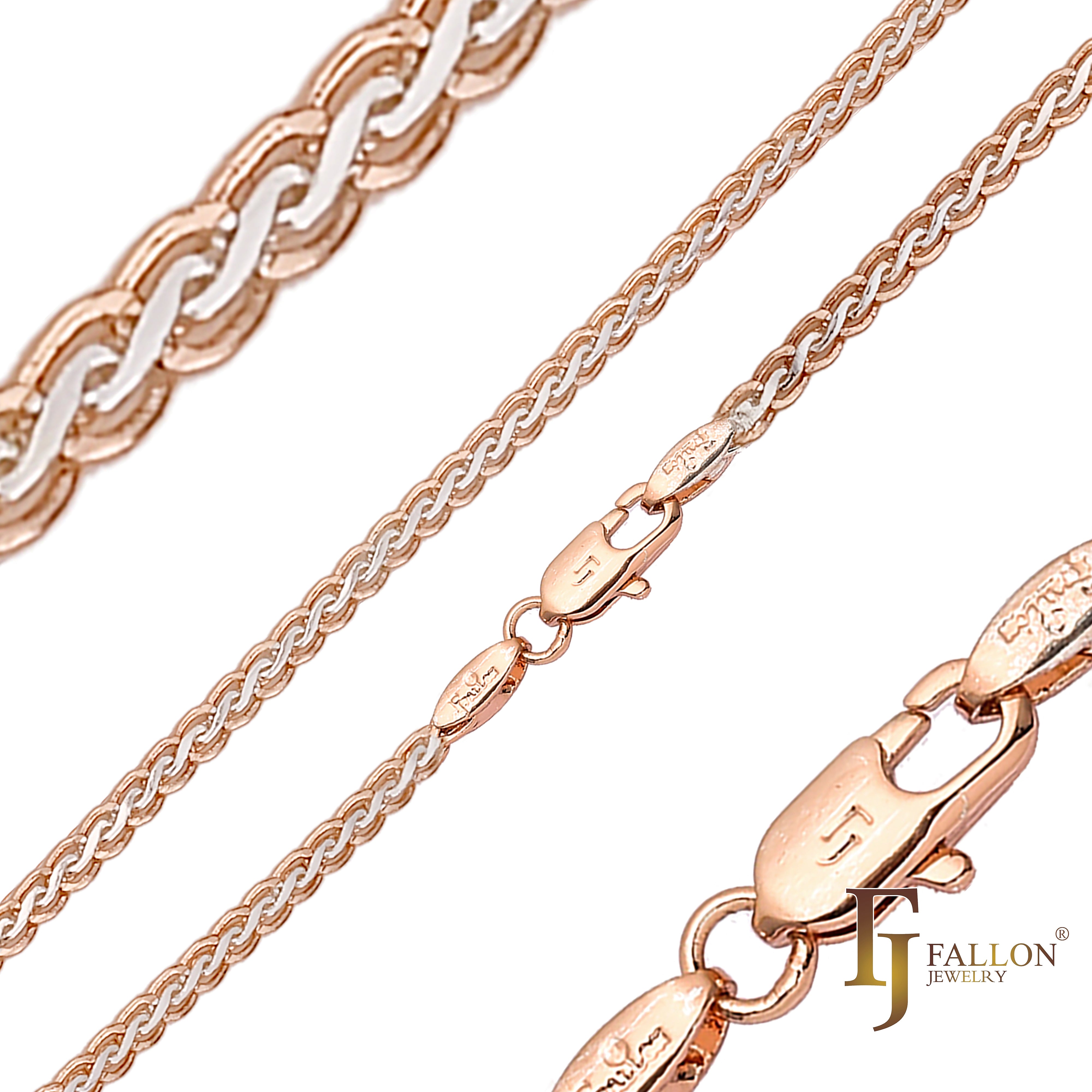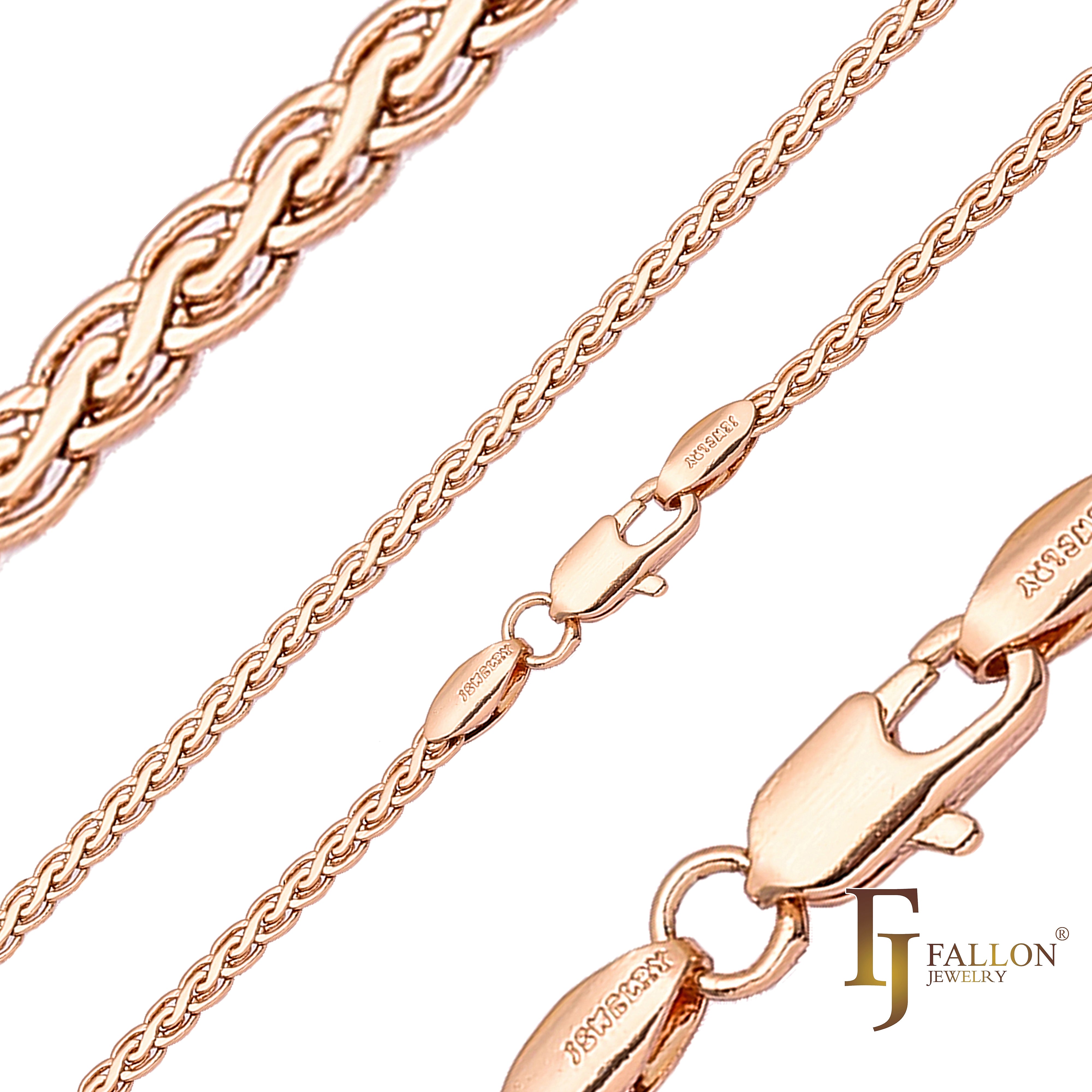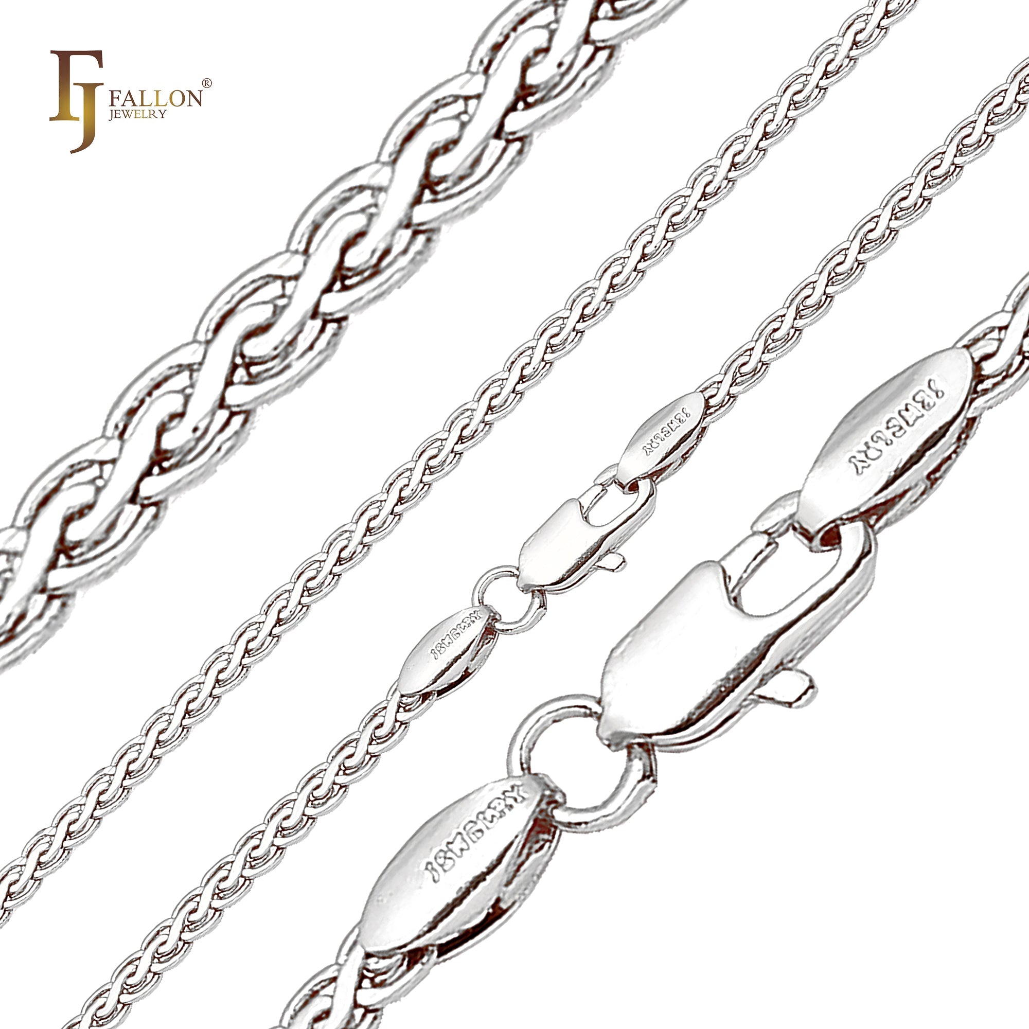 Spiga wheat glossy chains plated in White Gold, 14K Gold, Rose Gold, two tone